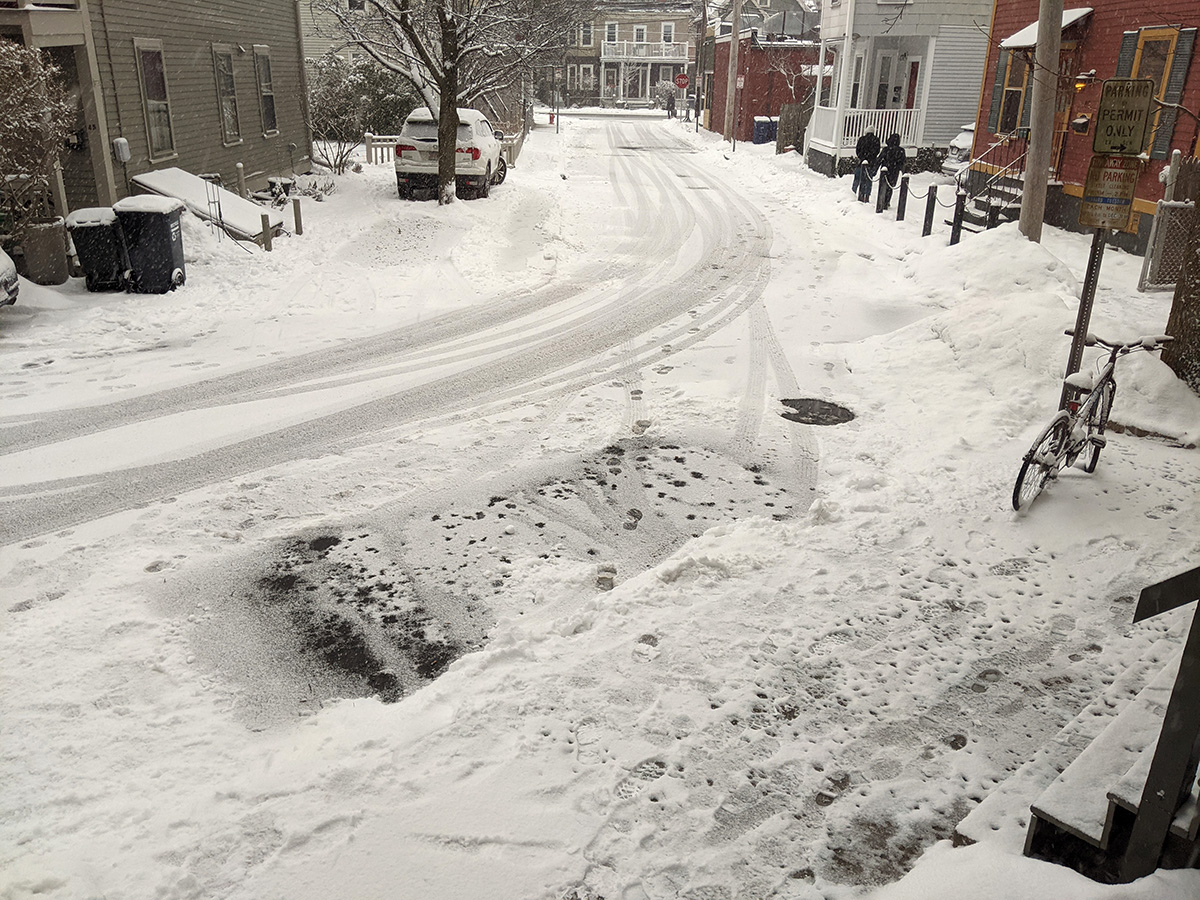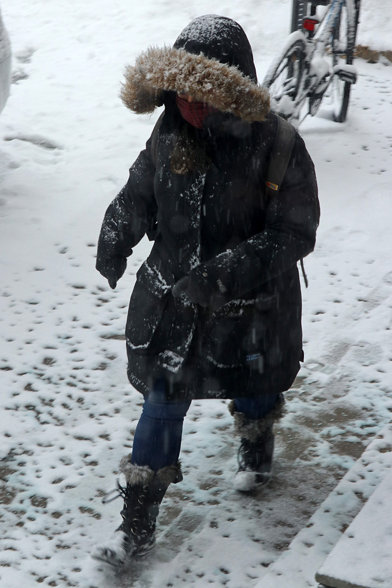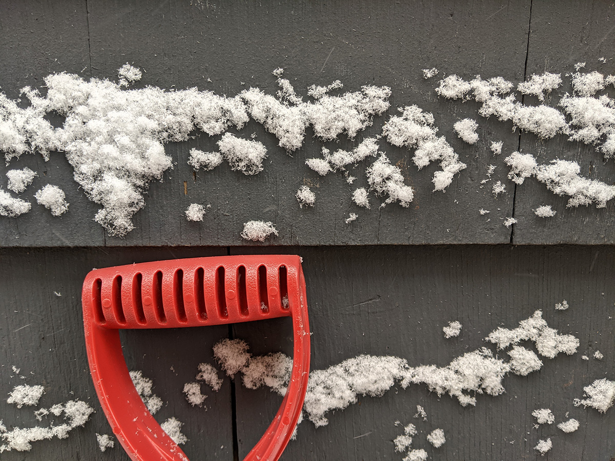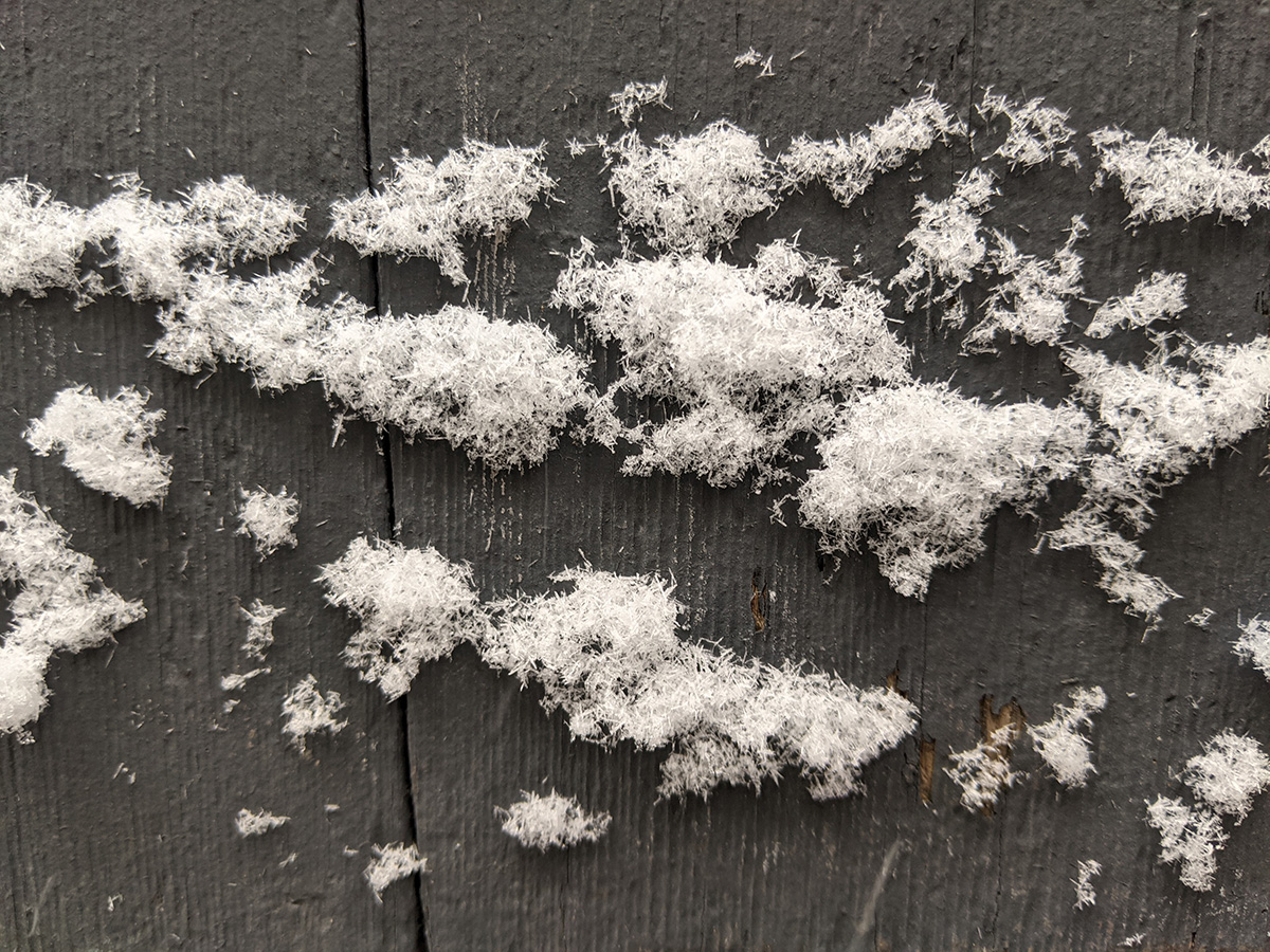 while i was shoveling the snow in the early afternoon, i discovered the snow was coming down as snowflakes, but rather ice needles. typically the temperature has to be pretty cold (23°F) for needles to form, and it wasn't that cold today, but maybe it was higher in the atmosphere.