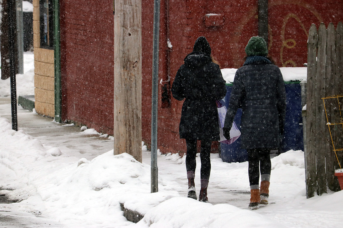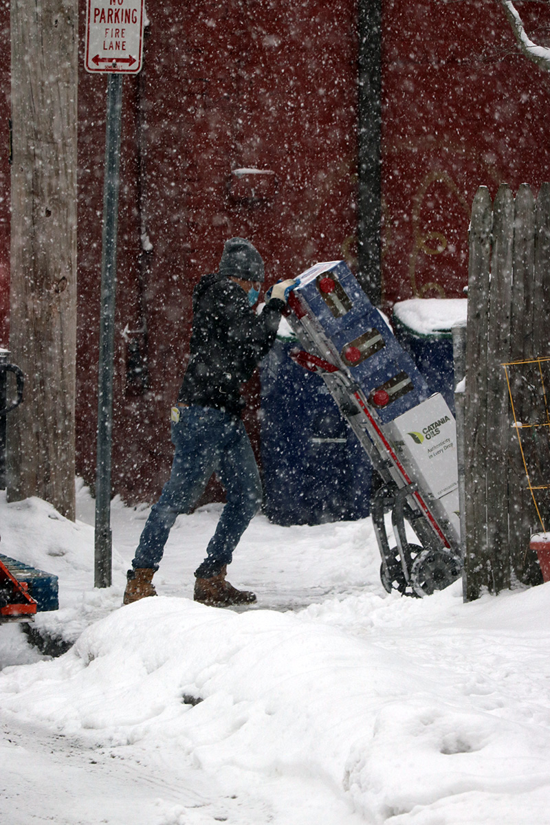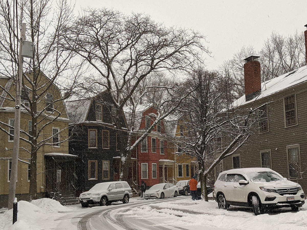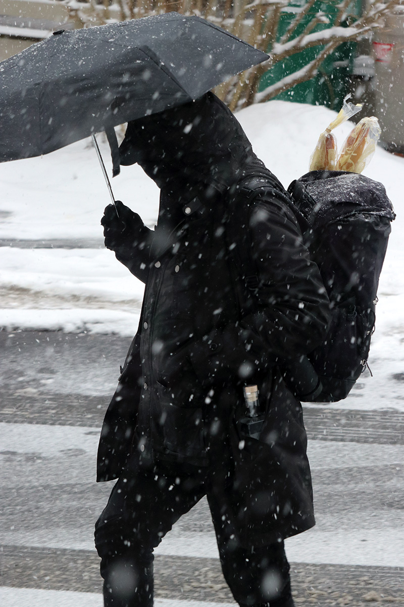 while i was shoveling the snow in the early afternoon, i discovered the snow was coming down as snowflakes, but rather ice needles. typically the temperature has to be pretty cold (23°F) for needles to form, and it wasn't that cold today, but maybe it was higher in the atmosphere.