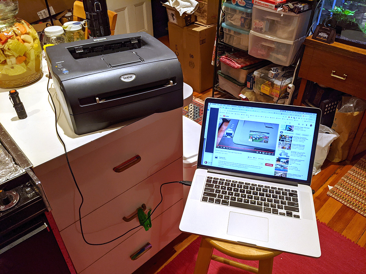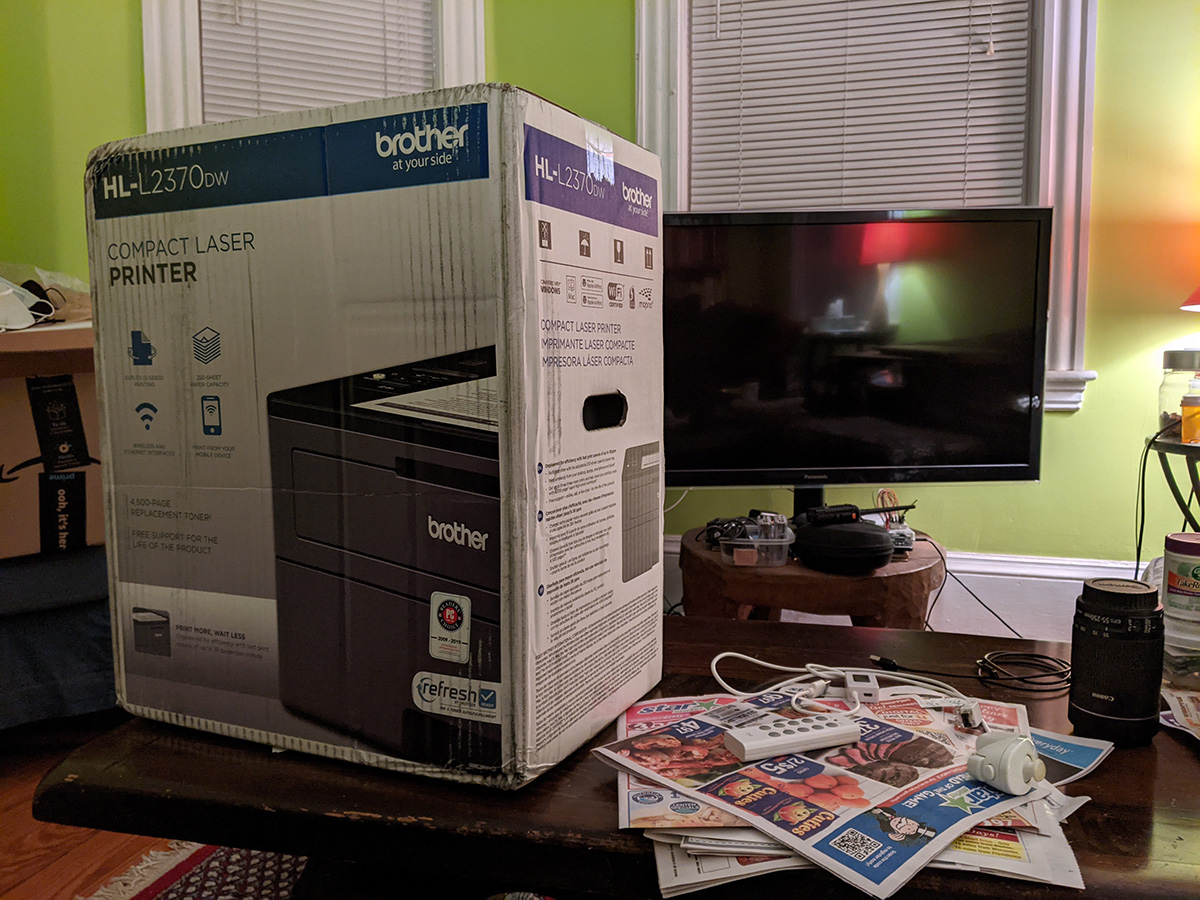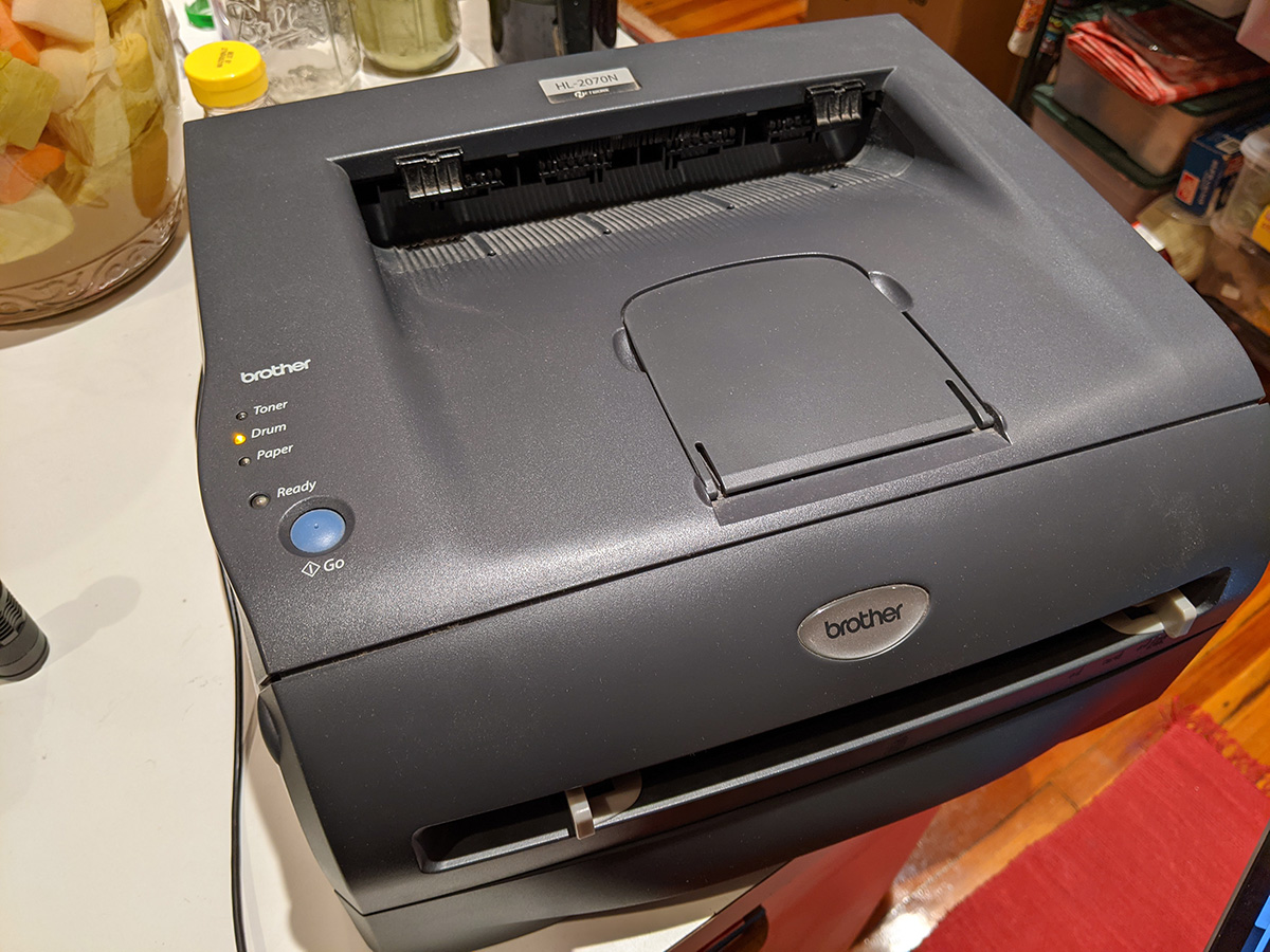 when my father dropped me off i totally forgot about the printer in the trunk until he reminded me. back inside, i tried to revive my old printer one last time, putting in the old toner from my parents' printer. it gave me an toner error light. i found a way to fix it online, and the printer seemed it was printing, but then it gave me a drum error light, along with the clicking sounds when the printer was turned off. i'm still not satisfied, i still think i can save the old printer. i'm going to take one more stab it it - maybe take apart the printer - before calling it quits. it *can* print, i just need to feed the paper manually. but now there's that new drum error and i don't know what that's about.