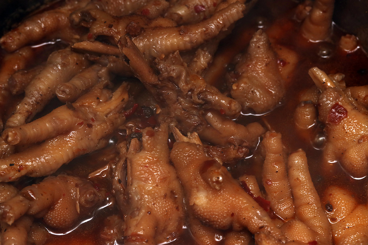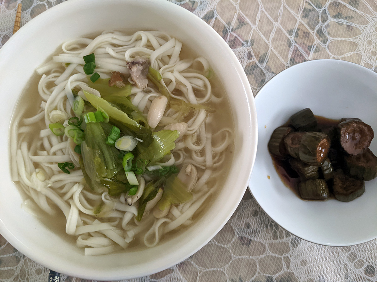 back inside, my mother made chicken noodles for lunch served with some homemade chinese-style pickled cucumbers. she was also cooking the chicken feet my father and i got from market basket monday night. instead of frying them, she was simply boiling, which is easier but fried chicken feet is the more delicious method. she also used leftover spice packets, not the one i bought especially for chicken feet. when the feet were finally done cooking and i tried one, they were okay, but didn't have the fall-of-the-bone tenderness as fried feet.