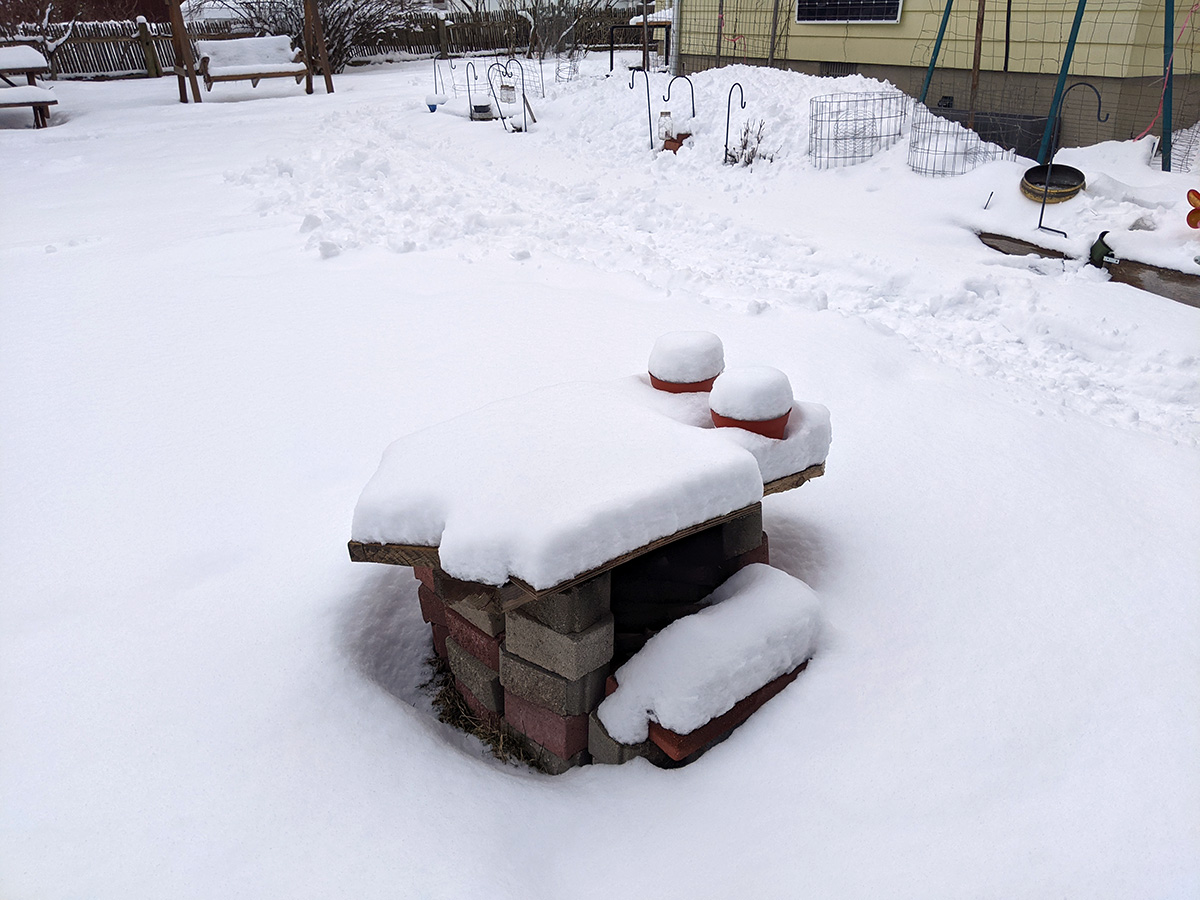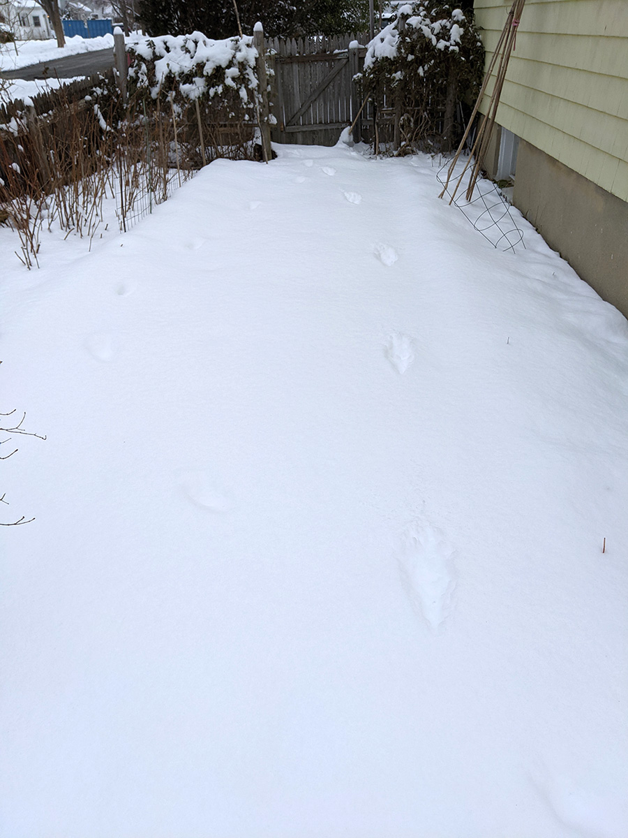 i cleared the panels on the right side of the house before my father got on the ladder to clear the sunroom panels. i got on the smaller step ladder in front of the sunroom to clear the snow off the edge with the second foam roof rake as soon as my father pushed it there. later we moved to the left side of the house. it was pretty easy work, the hardest part was just constantly re-adjusting the length of the roof rake pole to reach all the areas. afterwards i went around the backyard looking for rabbit tracks. i saw some that might be rabbits but even now i still can't figure out how they get inside. there hasn't been a lot though, not since i blocked the hole i found underneath the eastern fence behind all the ivy ground cover a few months ago.