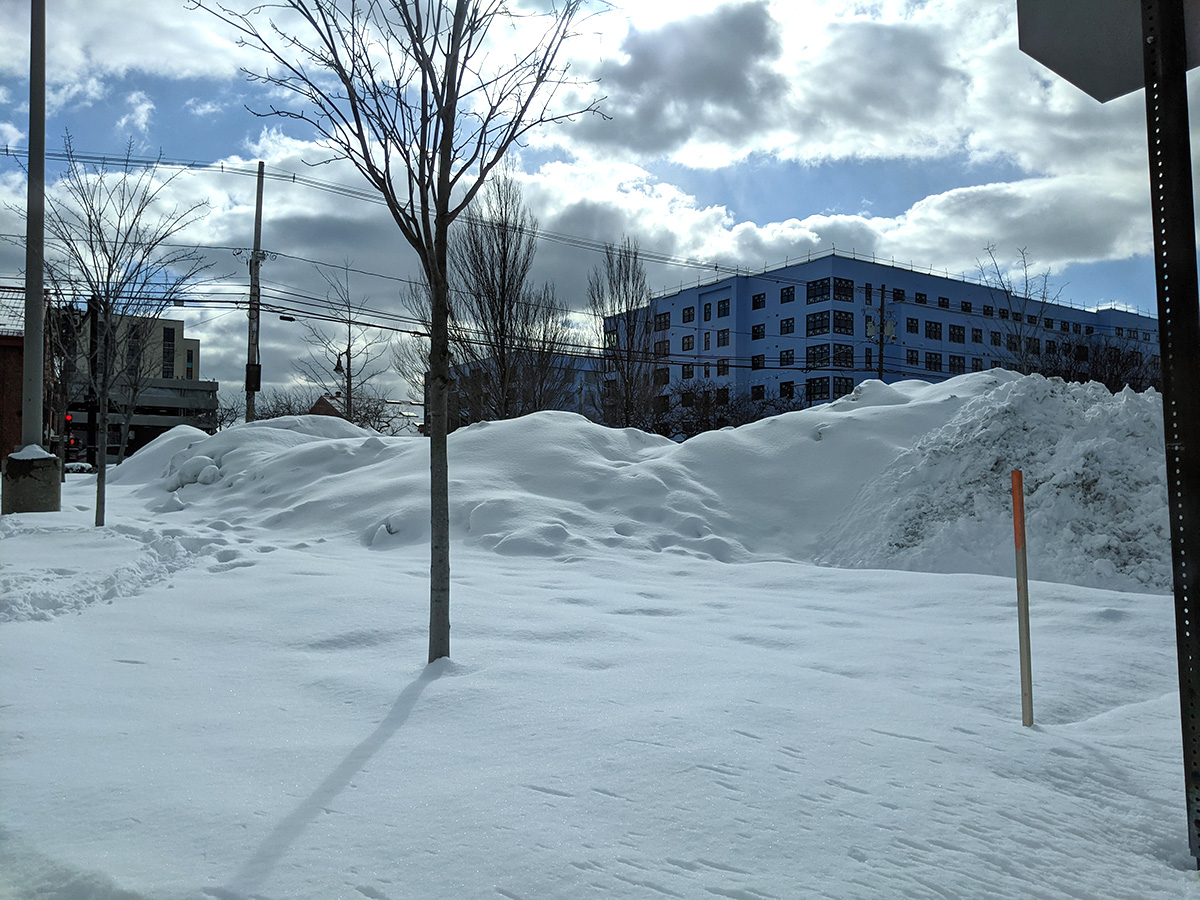 my upstairs neighbors shoveled the sidewalk this morning, sparing me from having to do it. my father came to pick me up at 11am. there was still snow in the trees and all around us cars were driving with snow on their roofs.