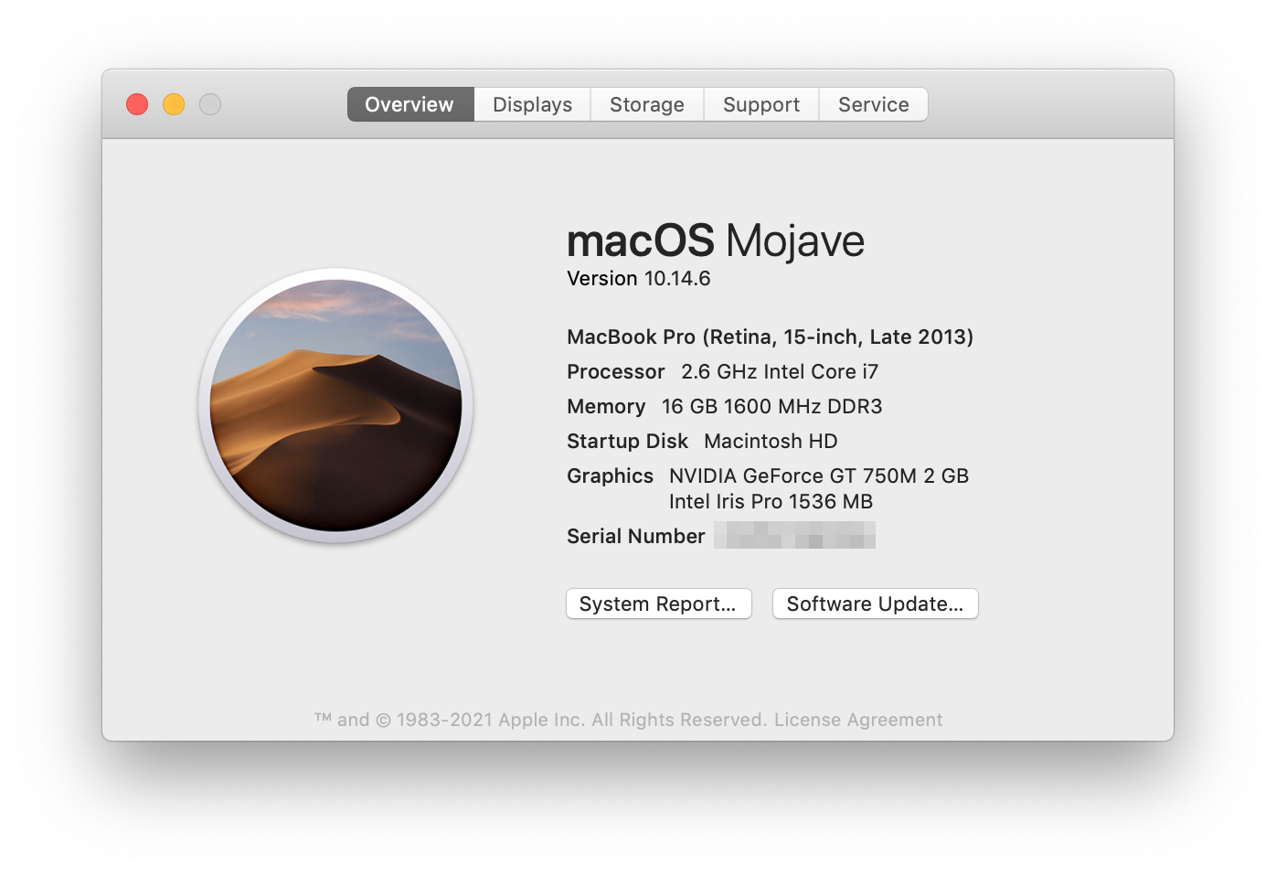 i reluctantly upgraded to macos mojave (10.14) today. i was quite happy with high sierra (10.13) even though it dates back to 2017 while the latest OS is big sur (11 AKA 10.16). the only reason why i upgraded was so i could run my bootleg copy of turbotax deluxe (it'd only run on 10.14+). installation was painless, i'd already cleared the necessary space on my hard drive and backed up my data. when i finally booted up with mojave, i didn't really see much difference, which is the point.