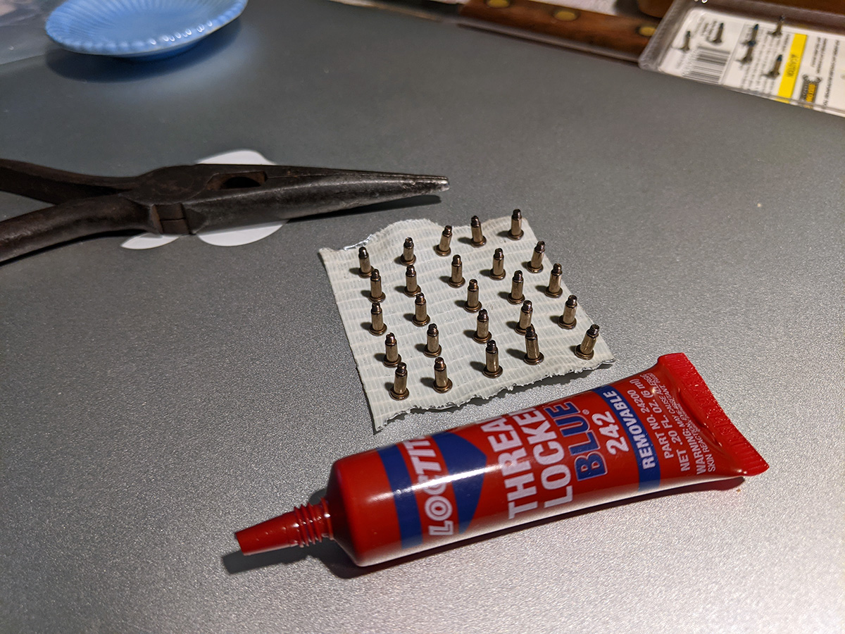 i applied blue loctite onto the DJI mini 2 drone propeller screws. i was having a hard time resting them upside down once i dabbed a tiny bit of blue loctite liquid onto the thread, until i figured out i could get a piece of duct tape and tape the screws for easier application.