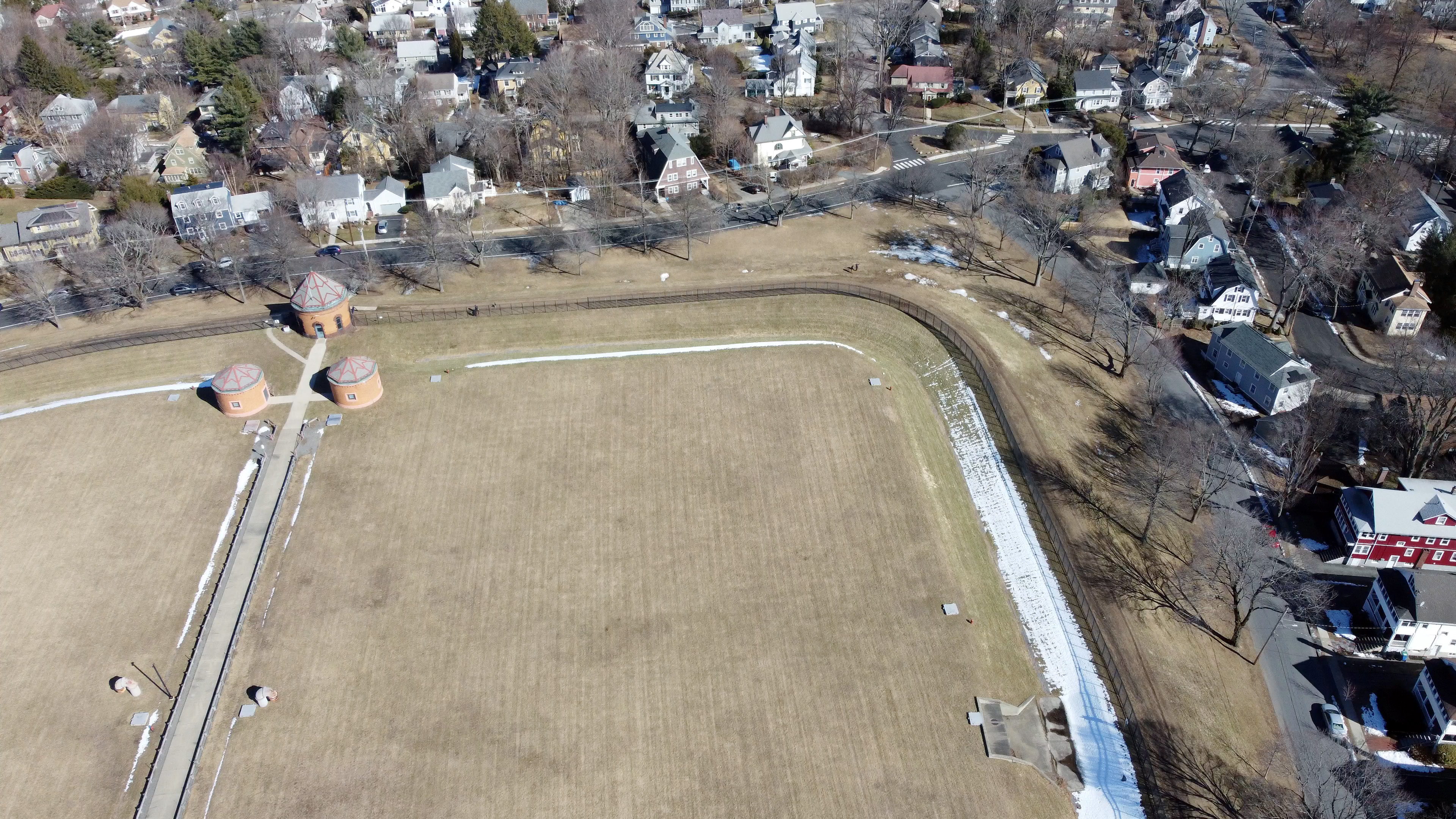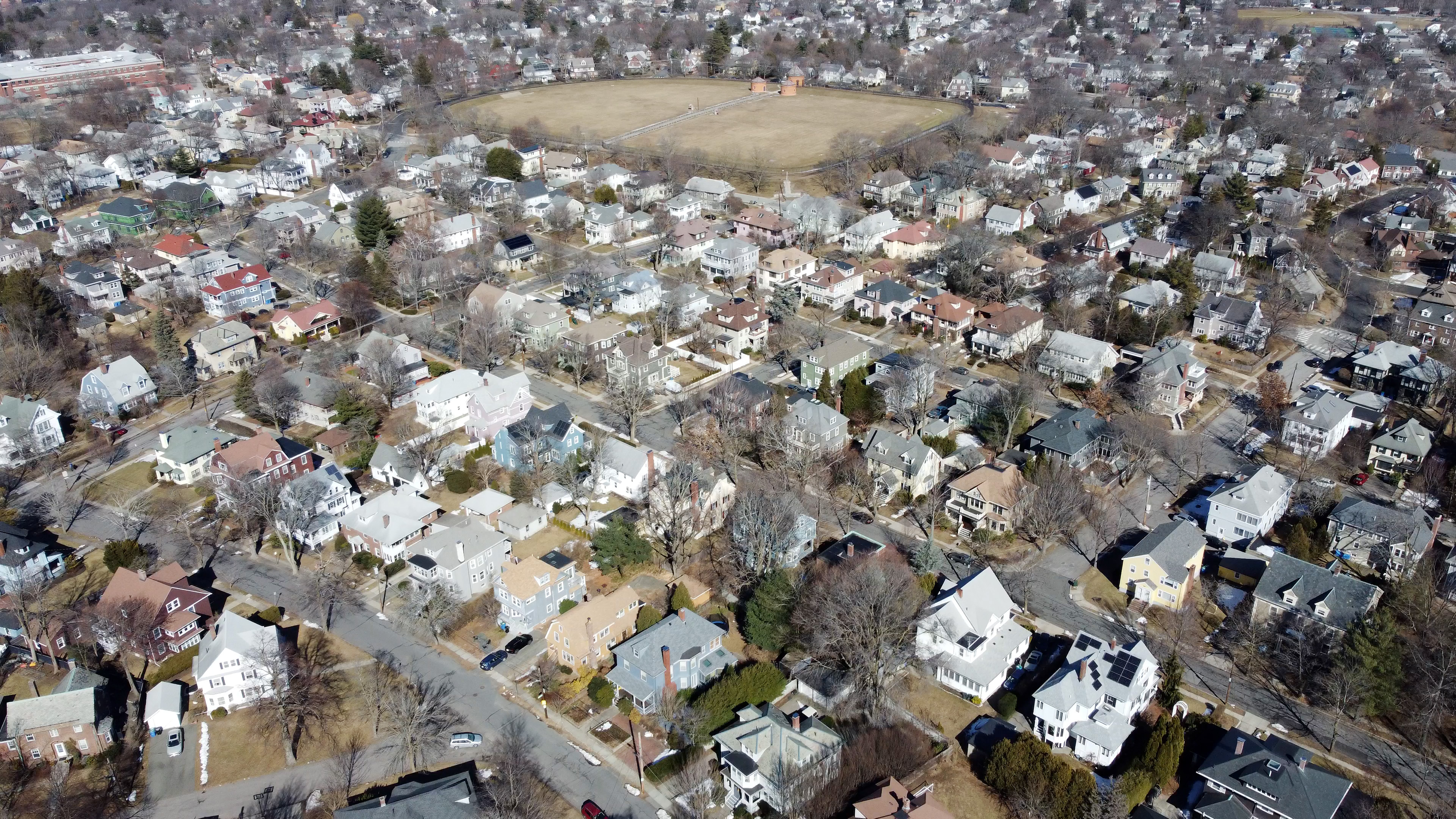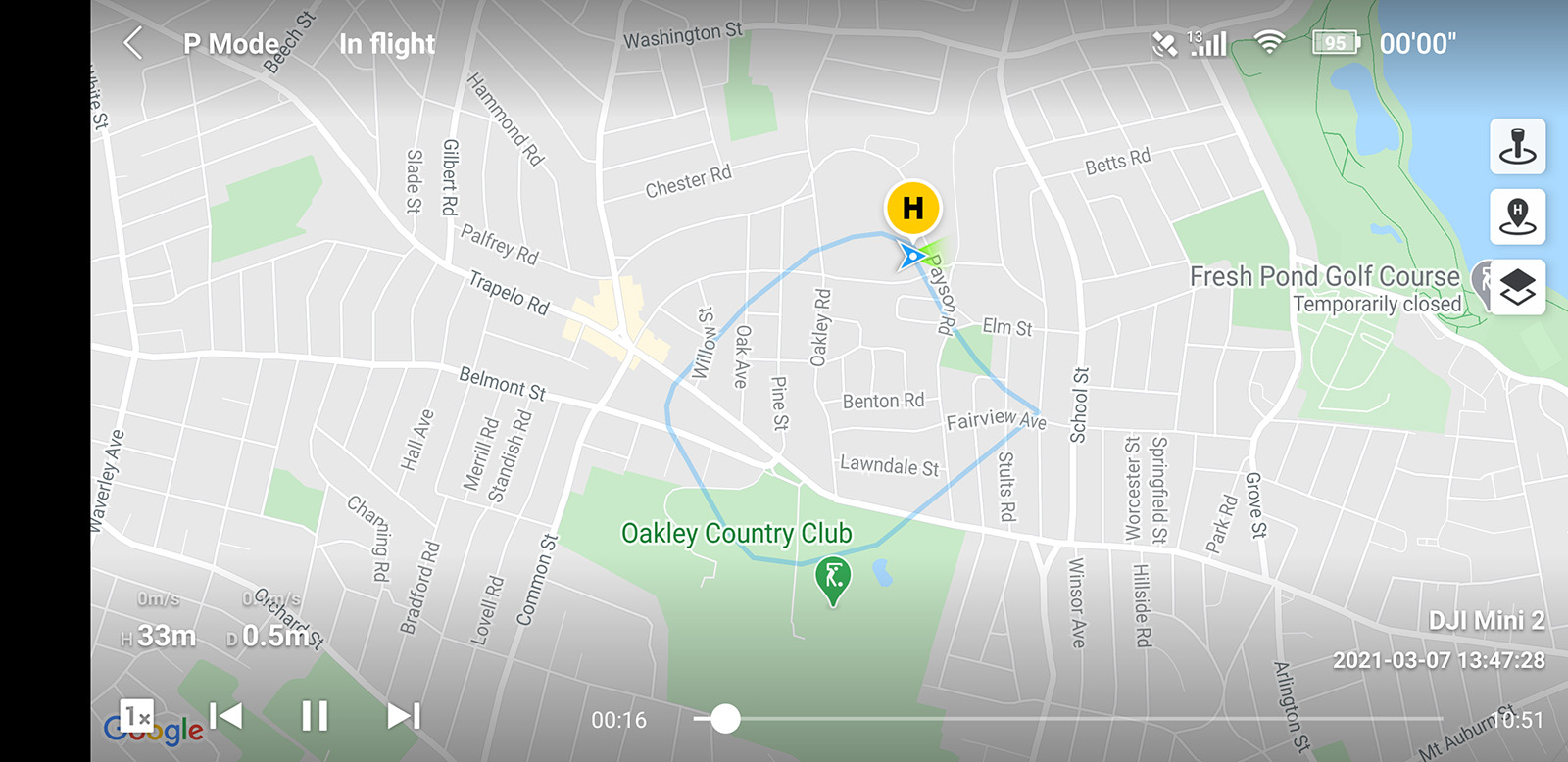 when my mother went for her daily walk in the afternoon, i decided to join her (my father was just coming back from dropping off my sister's godmother at south station after picking up her apartment key). this time i brought the drone and was hoping to launch from payson park playground. unfortunately there were some children playing there with their parents and i figured it was too risky to fly there. my mother suggested i fly from the hill of the belmont reservoir as it was empty with an open space exposed to the sky. so while she walked a loop around the reservoir, i launched my DJI mini 2.