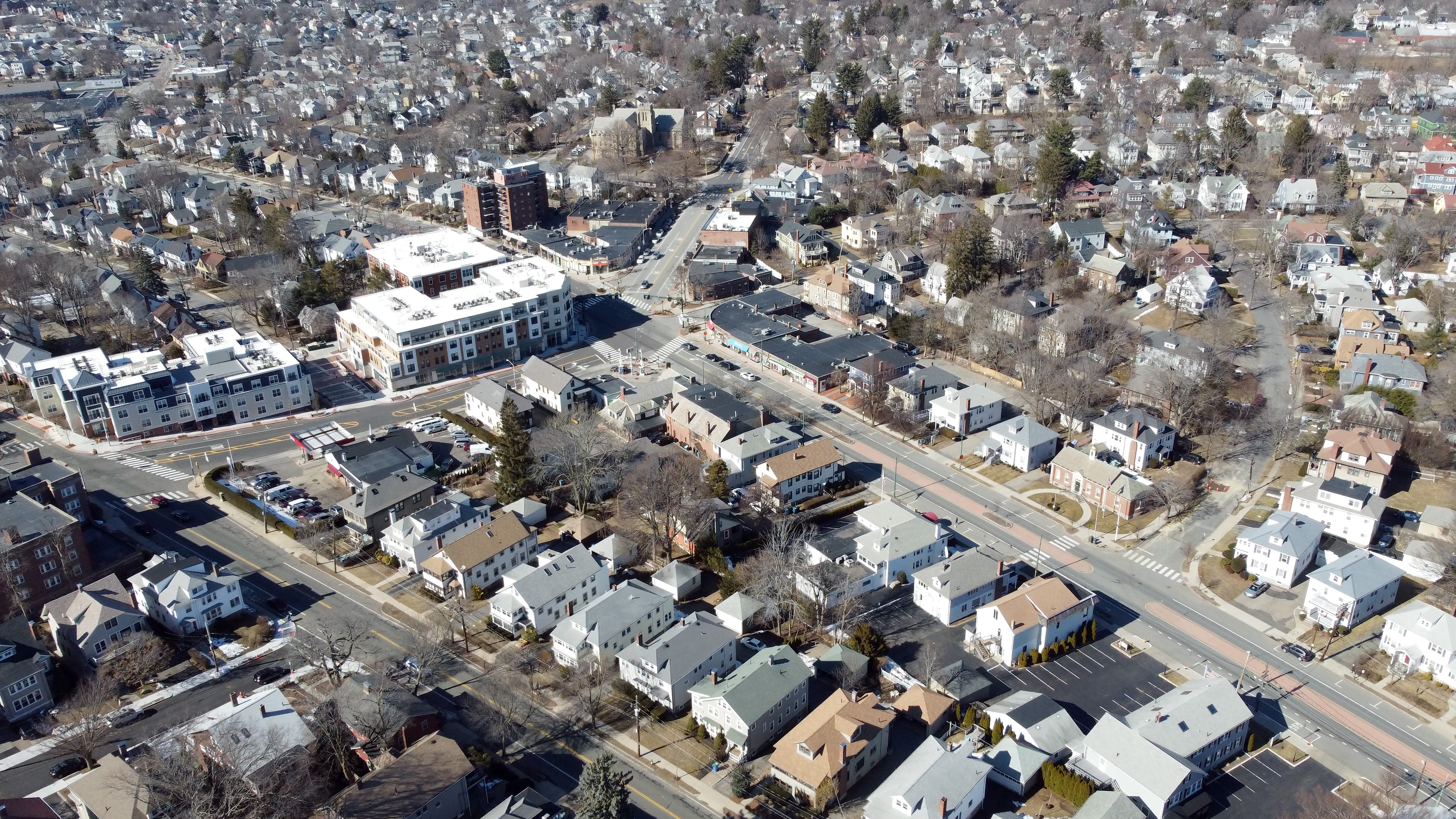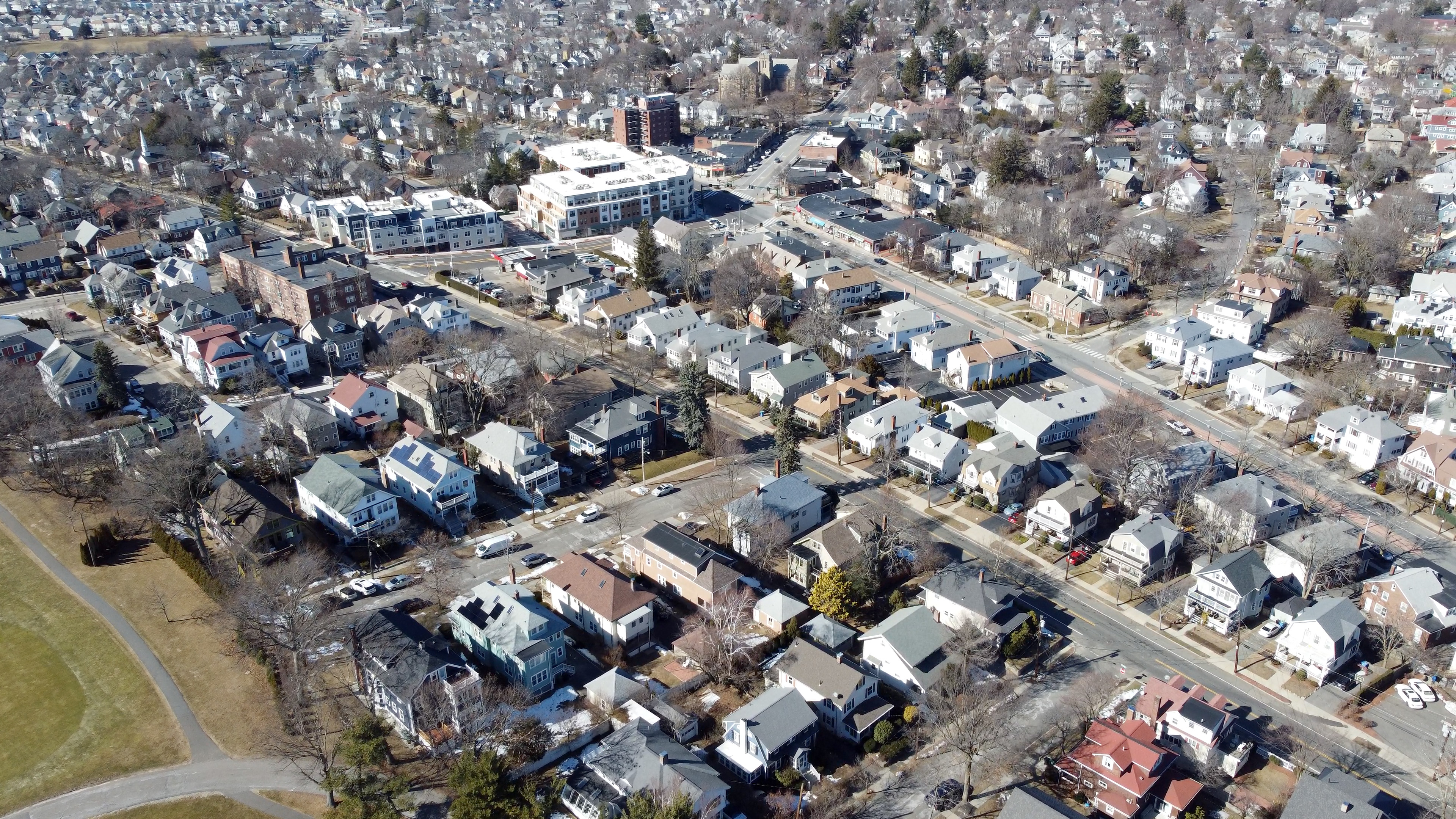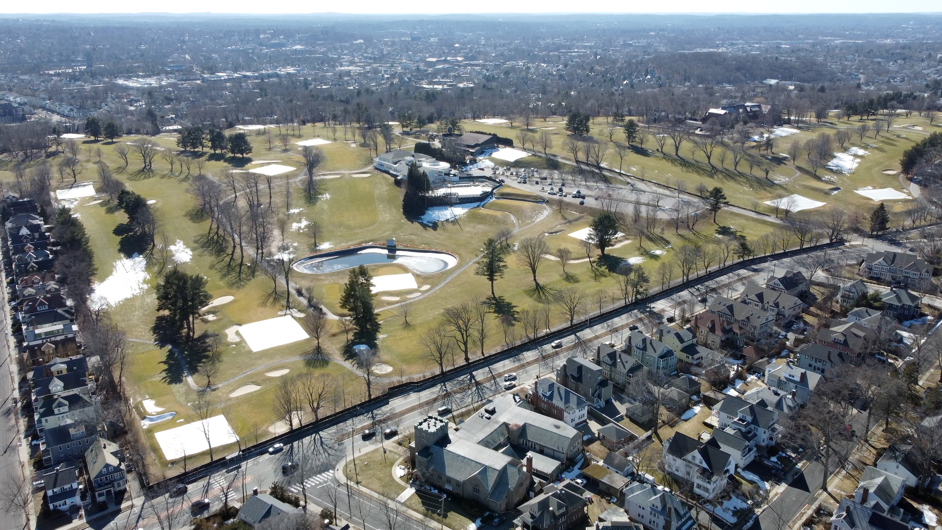 when my mother went for her daily walk in the afternoon, i decided to join her (my father was just coming back from dropping off my sister's godmother at south station after picking up her apartment key). this time i brought the drone and was hoping to launch from payson park playground. unfortunately there were some children playing there with their parents and i figured it was too risky to fly there. my mother suggested i fly from the hill of the belmont reservoir as it was empty with an open space exposed to the sky. so while she walked a loop around the reservoir, i launched my DJI mini 2.