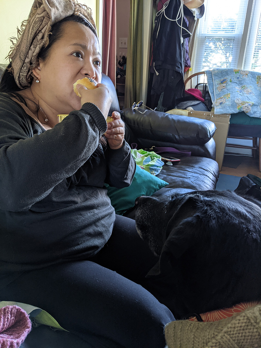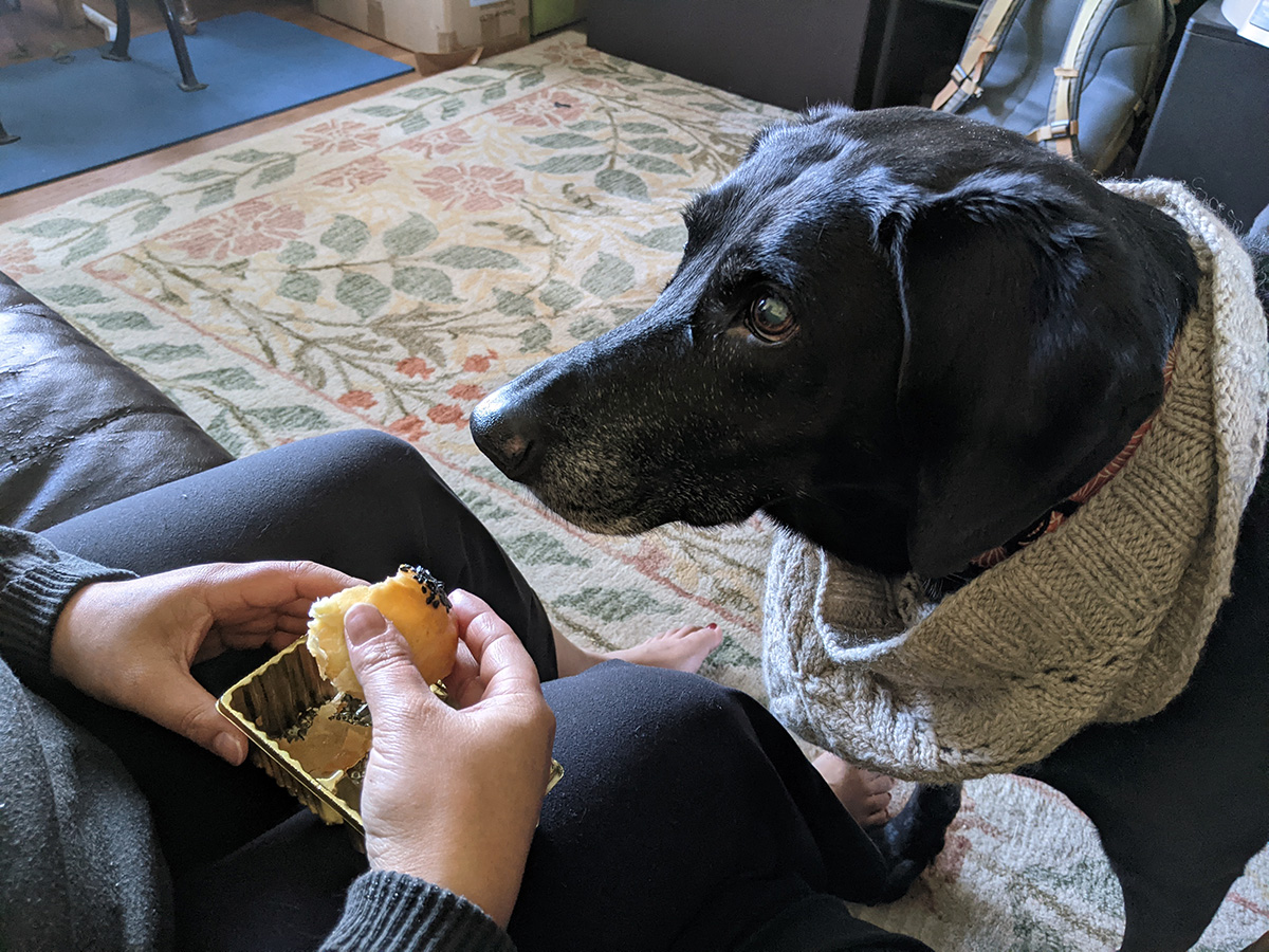 my sister stopped by unexpectedly. her covid test results came back this morning, negative, so now she can go out again. in the backyard hailey chased a rabbit and my sister discovered a rabbit hole behind the pile of logs along the southern fence. it'd be too difficult to unstack the logs just to access the rabbit hole, so i slid down a piece of wire fencing and wedges a long log to keep it in place. that should keep the rabbits away for the time being. my sister left soon afterwards.