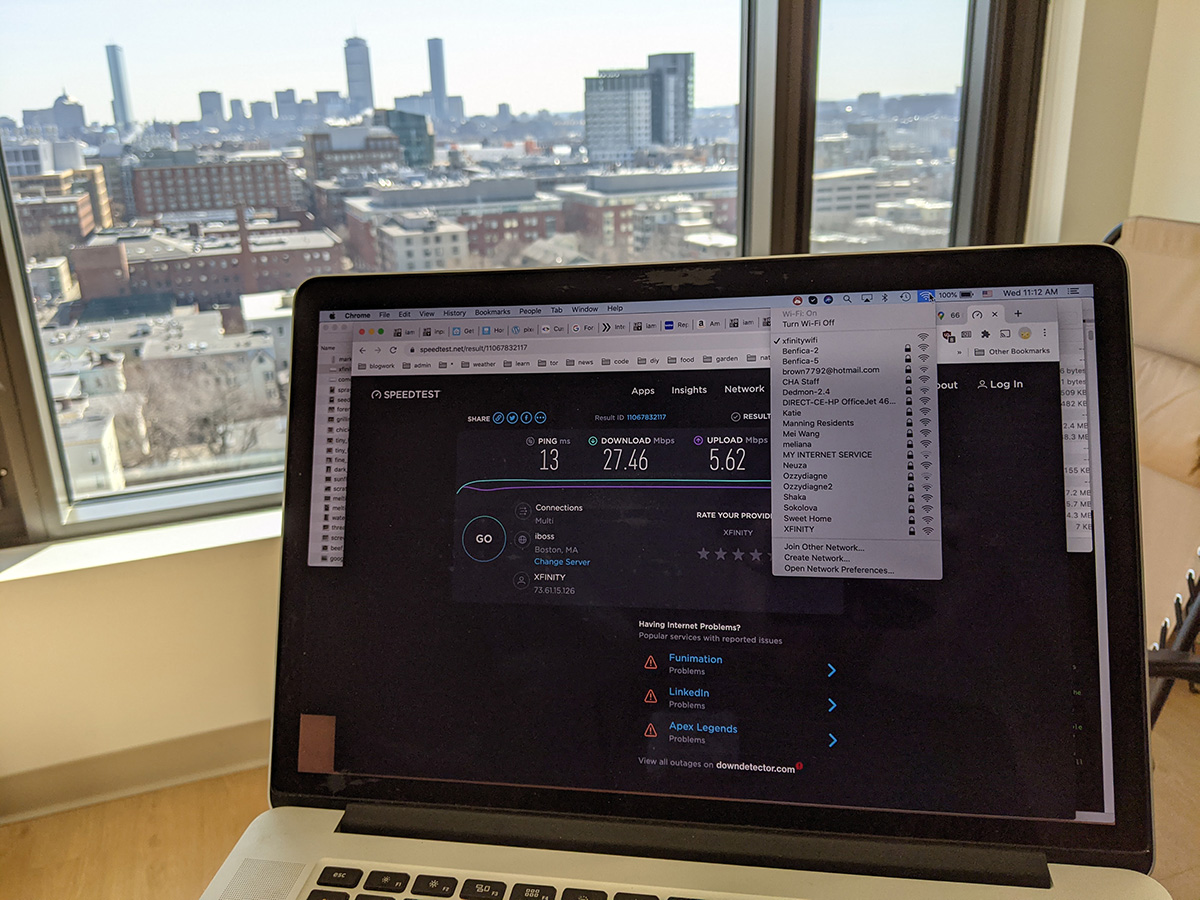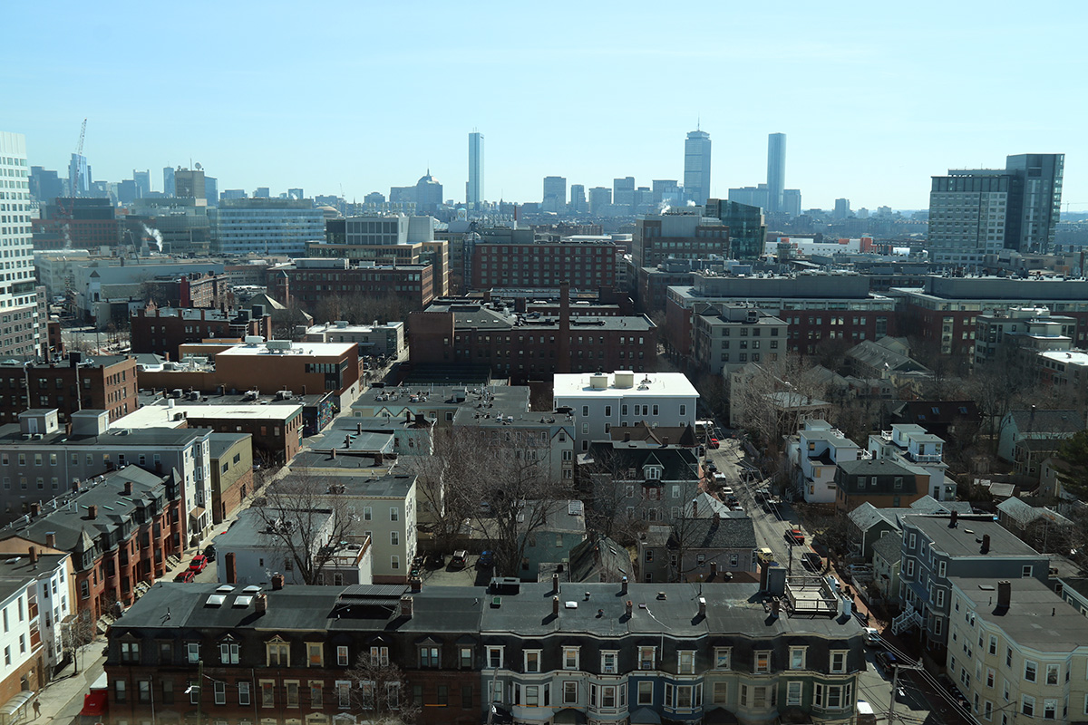 this was only my second time being in this apartment. the view of boston was still amazing, but second time around i actually felt a little jaded. i had a bunch of camera equipment ready but i didn't really take that many photos. one reason was there simply wasn't anything interesting. if it was a colorful sunrise or sunset that'd be something, but with normal daylight with a cloudless sky, it was pretty boring. the apartment was super hot - 78 degrees - even though the thermostat was set to 70 degrees. i think it's because the shades were open and the sunlight had heated the apartment.