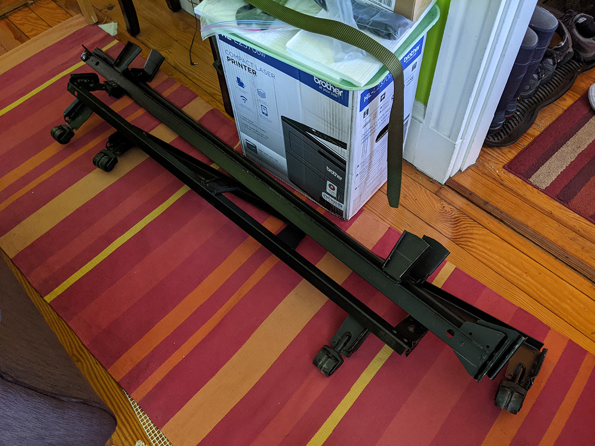 finally he came up with a different looking frame, one that didn't fold. it seemed good enough so we took as he went back inside. but while examining the frame, we realized it wasn't adjustable.
