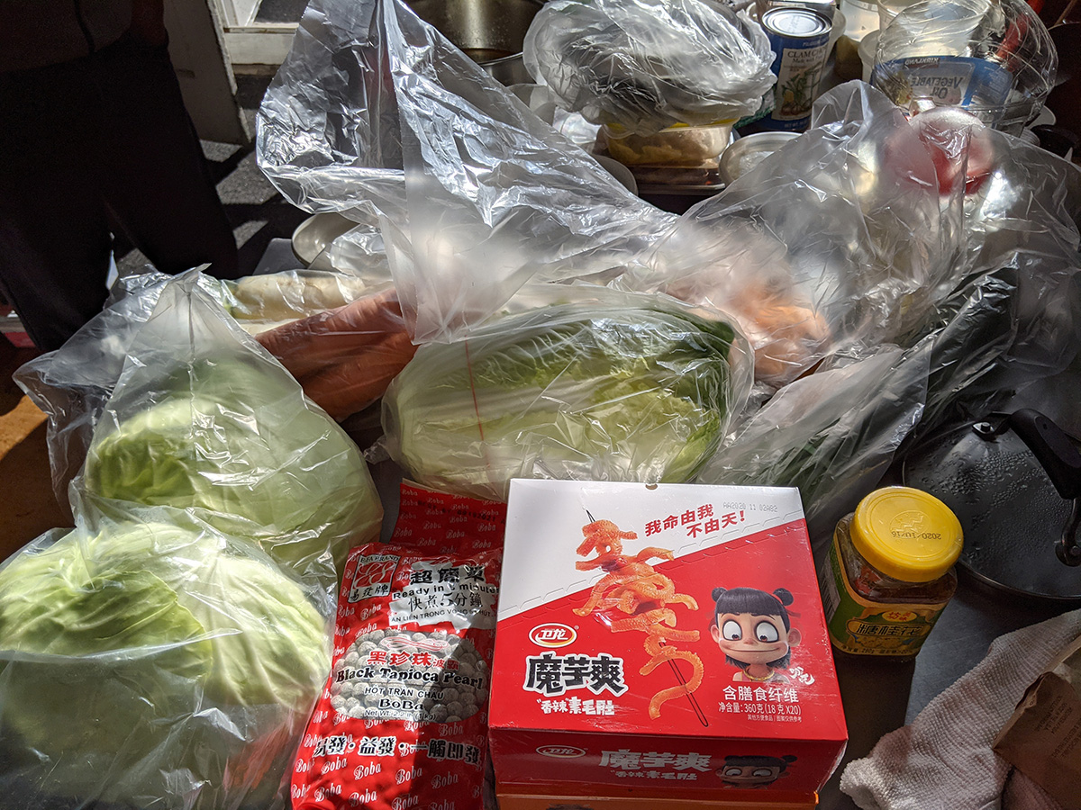 i rode to chinatown around 1pm to pick up some stuff from c-mart. temperature was in the 60's, warm enough to ride in shortsleeves. i bought a bunch of vegetables, mostly for refilling the sichuan paocai containers. i didn't have to go to ming's market afterwards as i found most of the stuff i needed. a few things were a few cents were expensive, but if it saved me a second trip to a different supermarket, it was worth it.