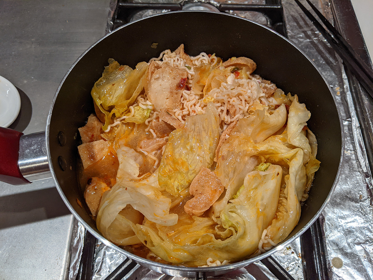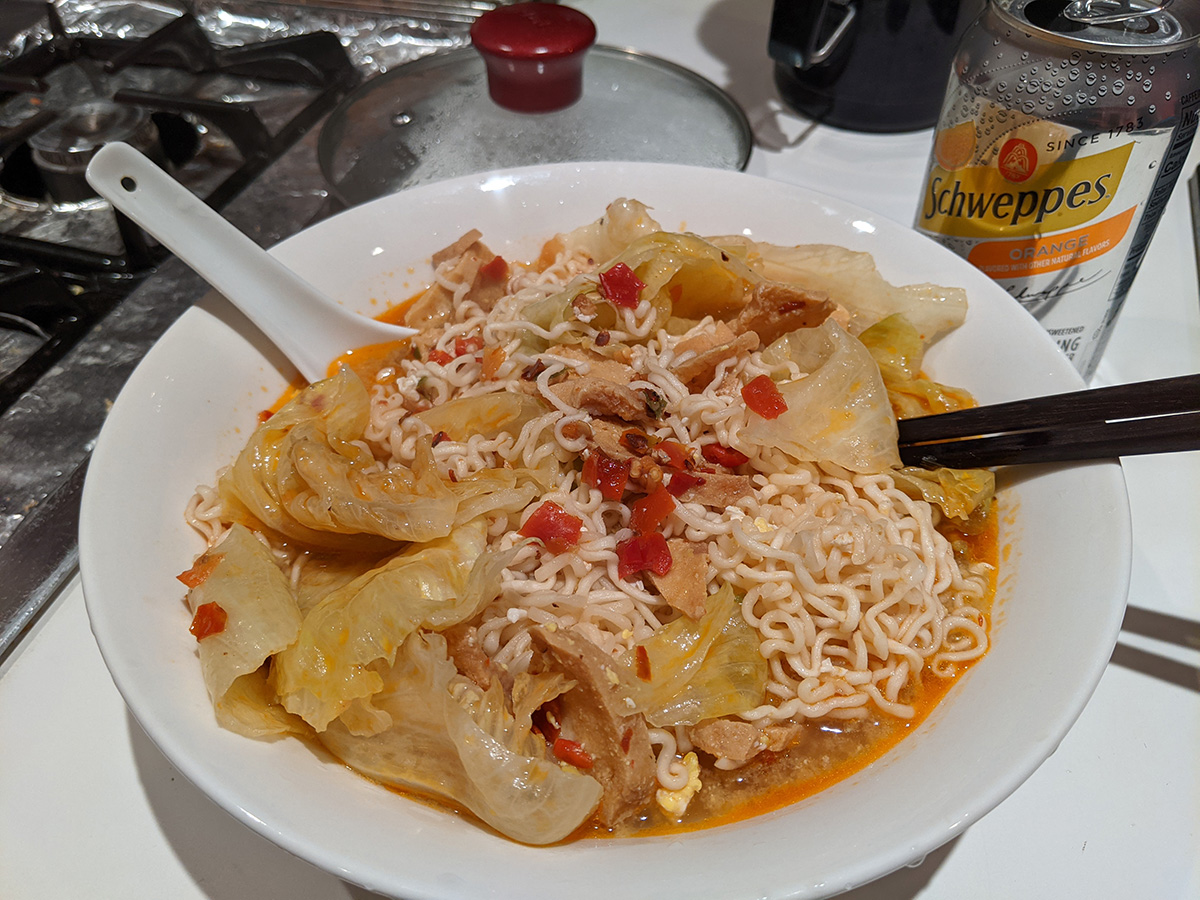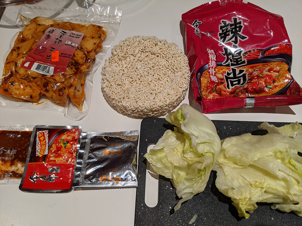 i got back home by 8pm. i made some ramen, added an egg, some spicy bean curd, and some leftover lettuce i had in the fridge.
