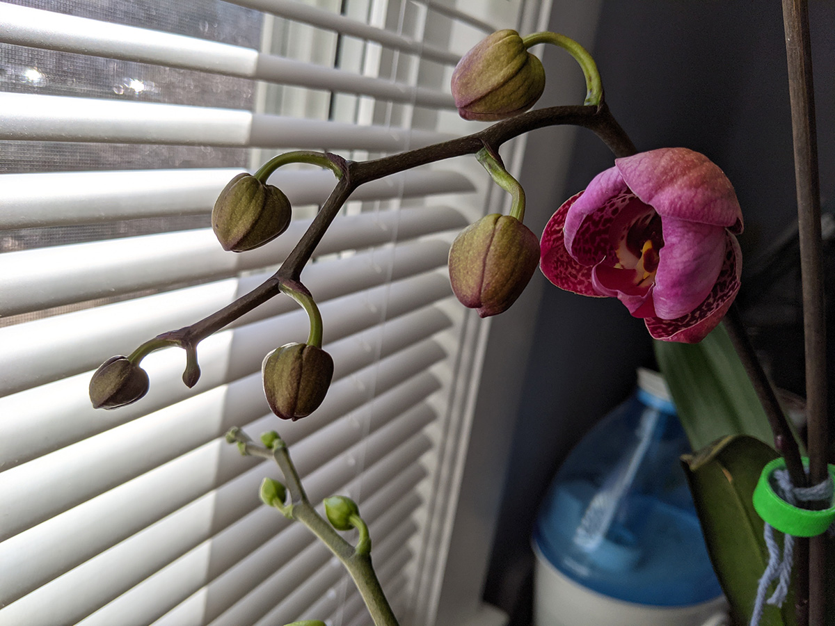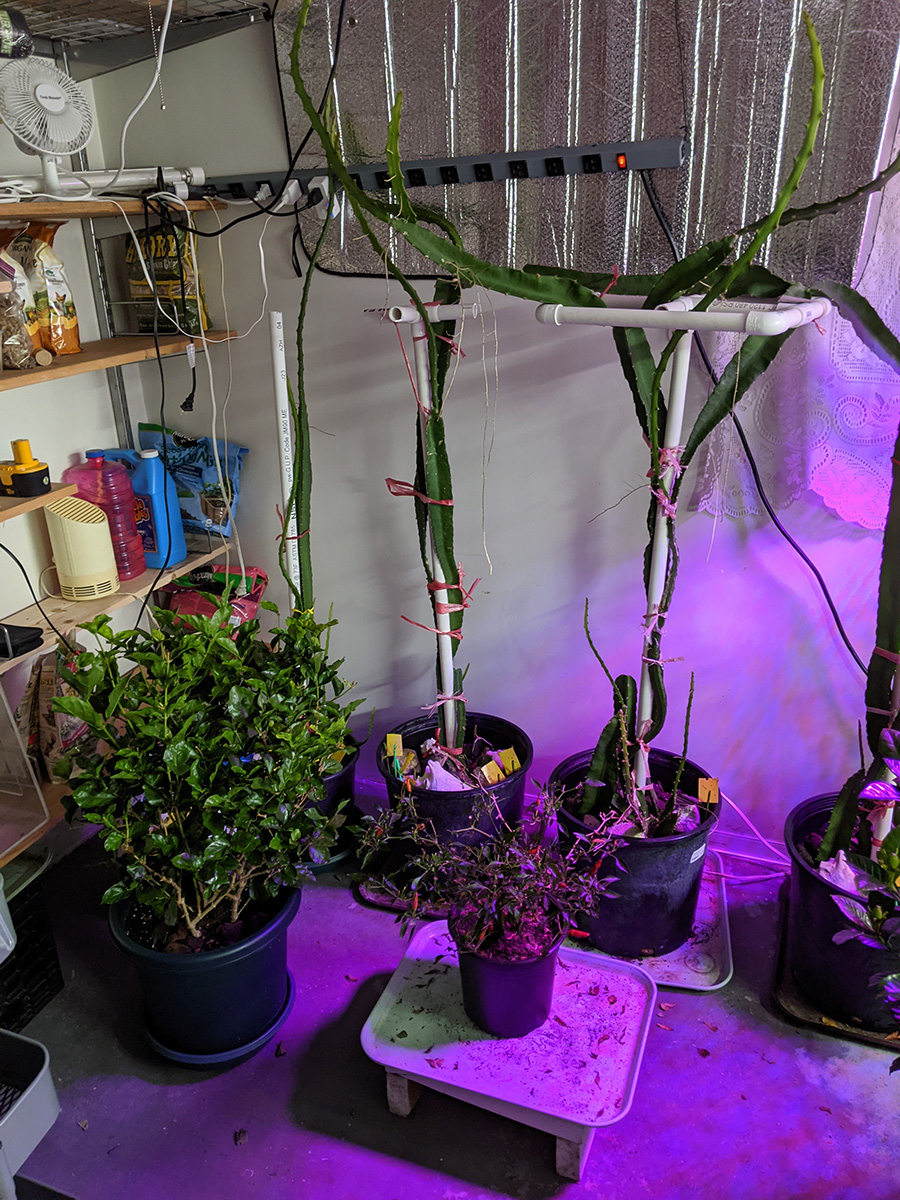 in the afternoon i went to the basement grow room to water the plants with mosquito bit treated water. it's been a tremendous success, other than some fungus gnats that we caught early on with the yellow sticky traps, i haven't seen any additional gnats. our problem is mainly with the mealybugs who are good at evading detection and we have to be ultra-vigilant in order to prevent any outbreaks, and the aphids, who seem to congregate on the tender cactus tips and gardenia flower buds. i sprayed the aphids with foamy insecticidal soap and used alcohol-dipped cotton swabs to remove the few mealybugs i found on the gardenia and jasmines. temperature on thursday is supposed to reach 55°F, i might do another round of outdoor spraying with neem oil.
