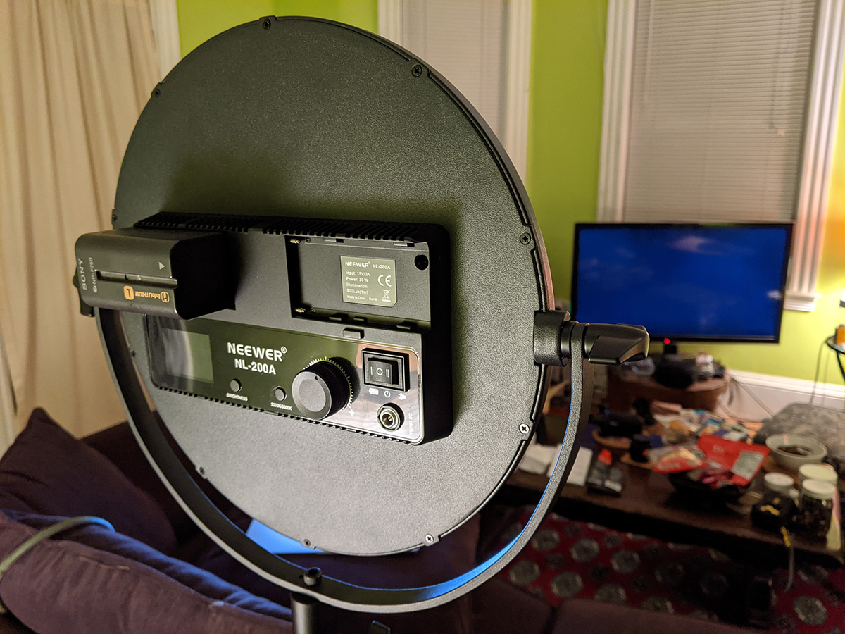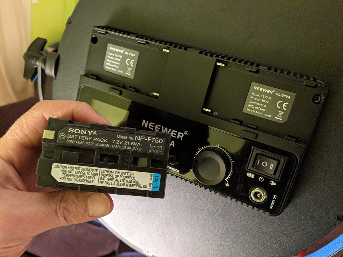 i also tried using the sony camcorder battery - NP-F750 - on my led pancake light, which can use NP-F batteries. although it snapped into place perfectly, the light wasn't able to turn on. even though the battery read as full when connected to the camcorder, i think it's actually defective. my father remembered one of the batteries was a dud, so maybe it's this one. i'l grab another battery next time to test again.