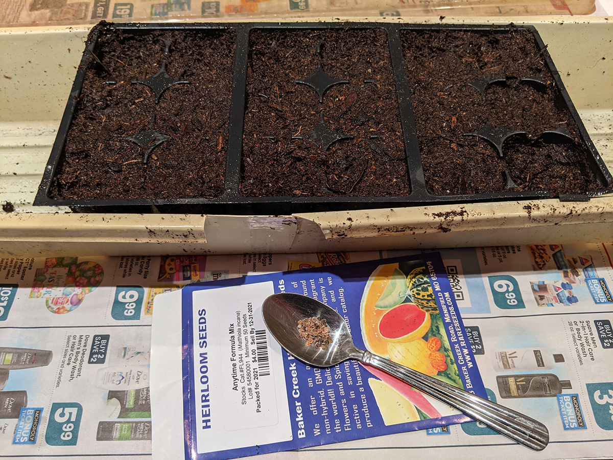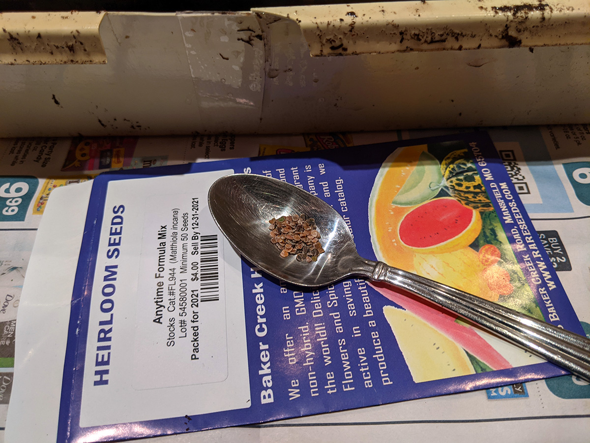 my father gave me a ride back to cambridge. first thing i did was to plant my stock seeds. i was waiting for plastic trays but i discovered i didn't need them, could still use my old seed starter tray since the stock seeds are tiny. so i basically waited a week for nothing.