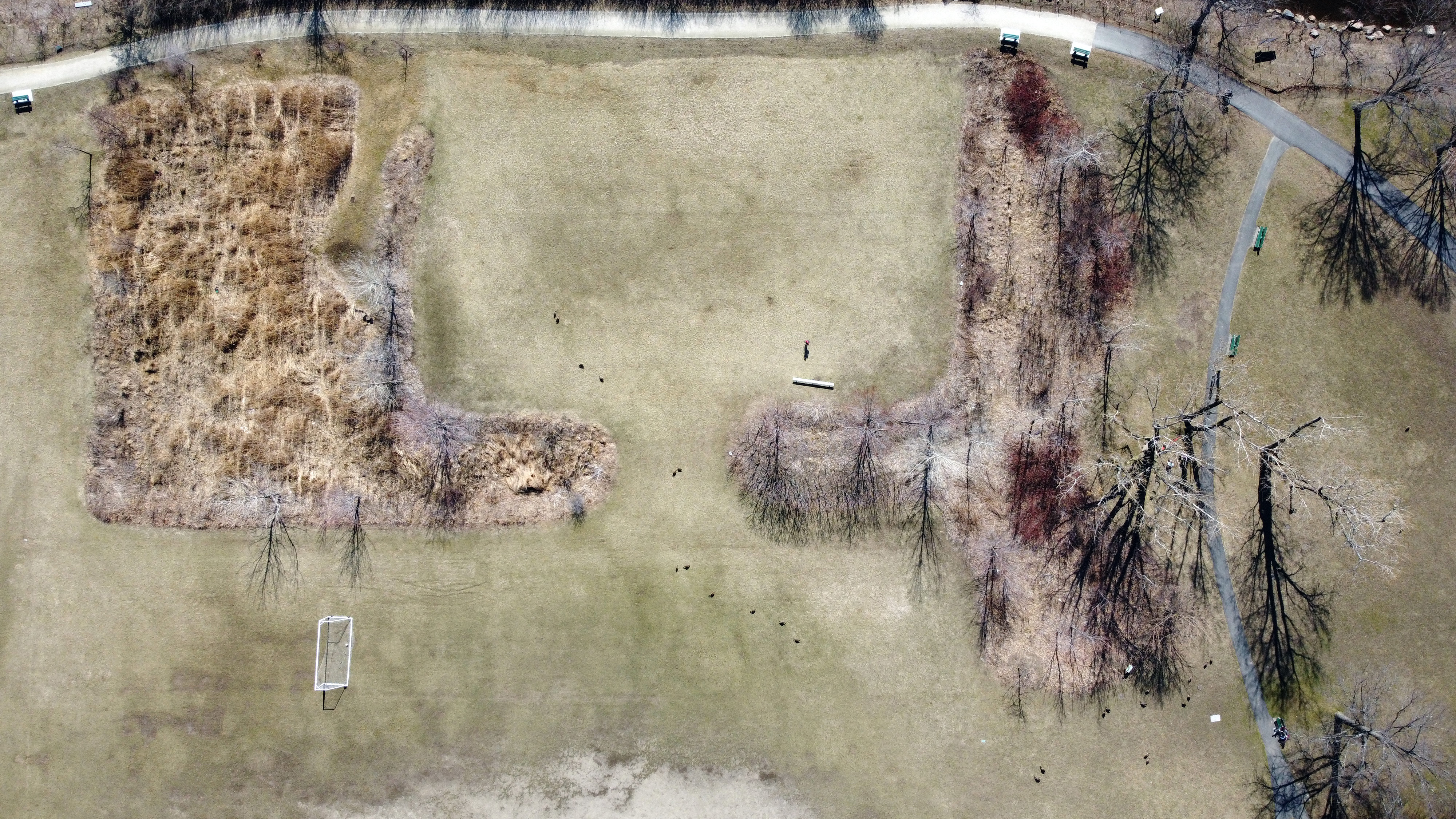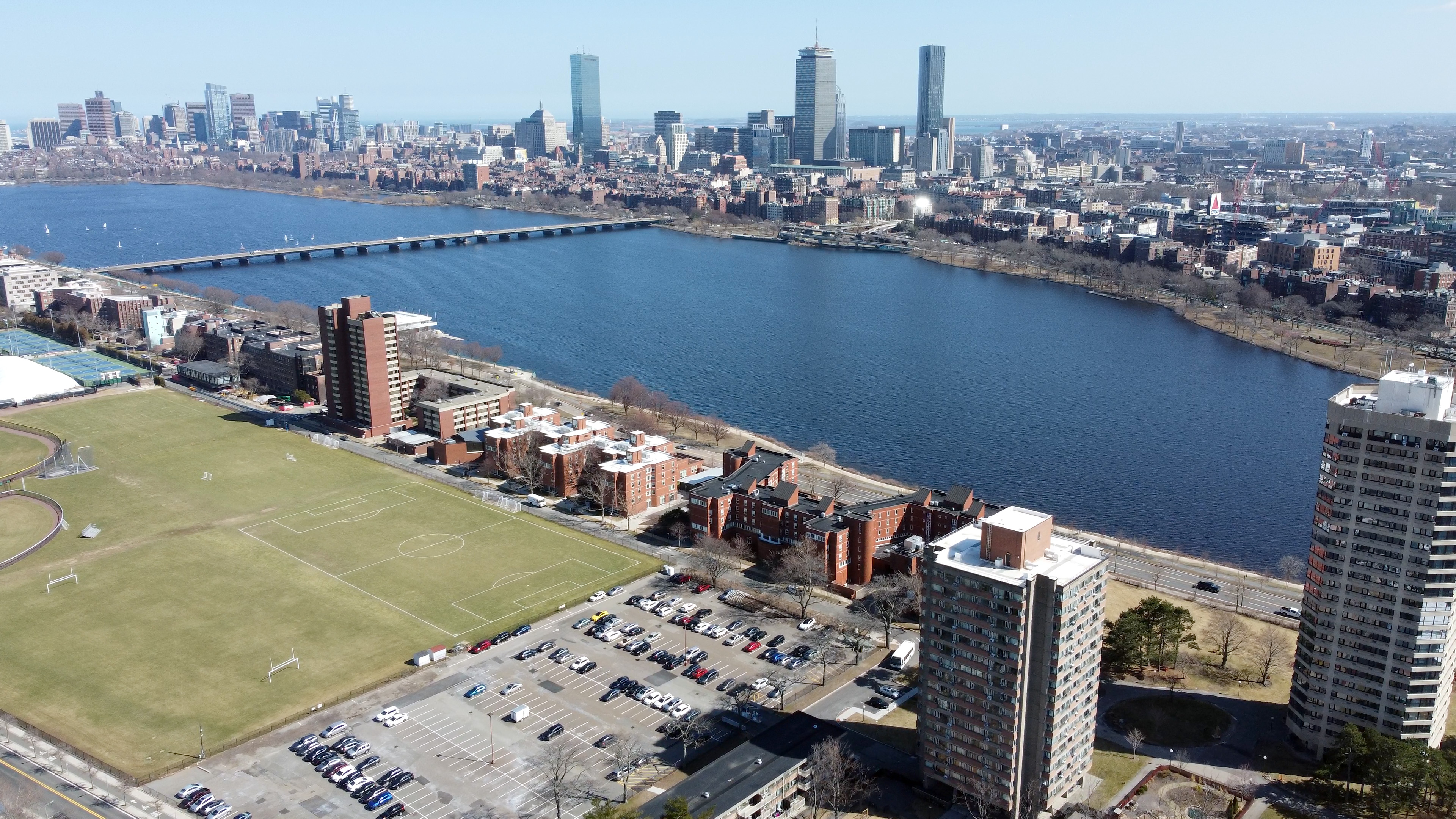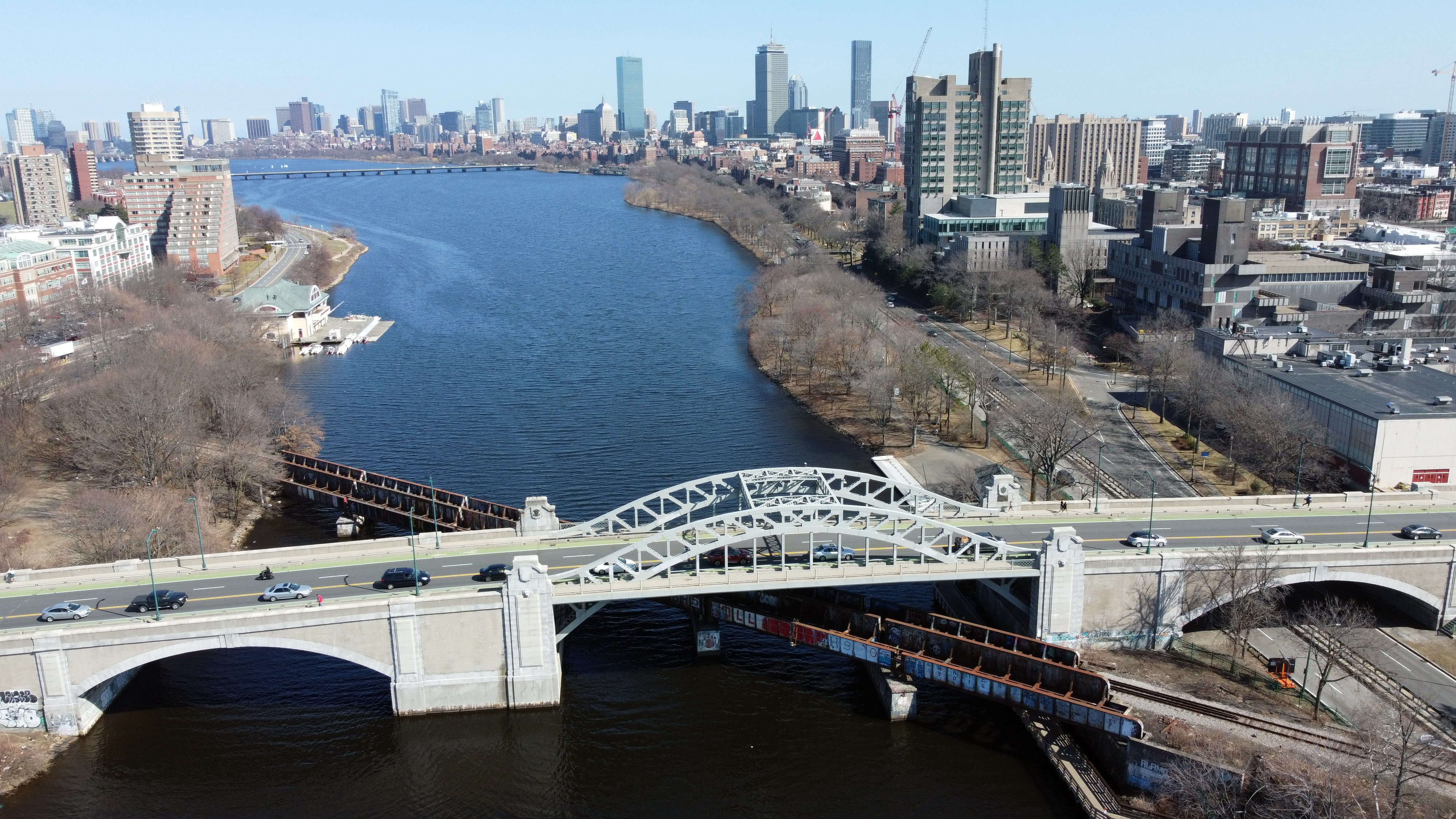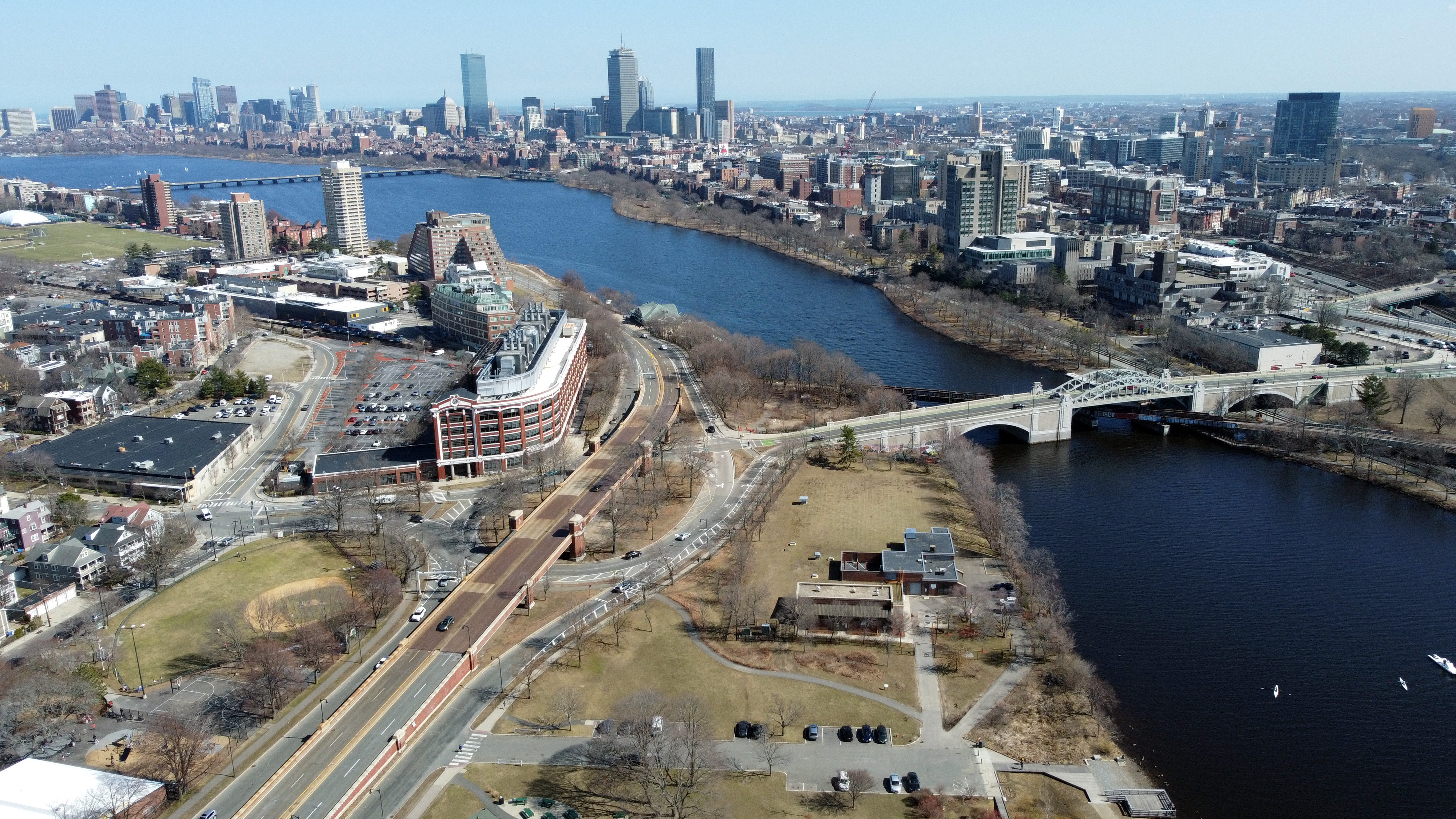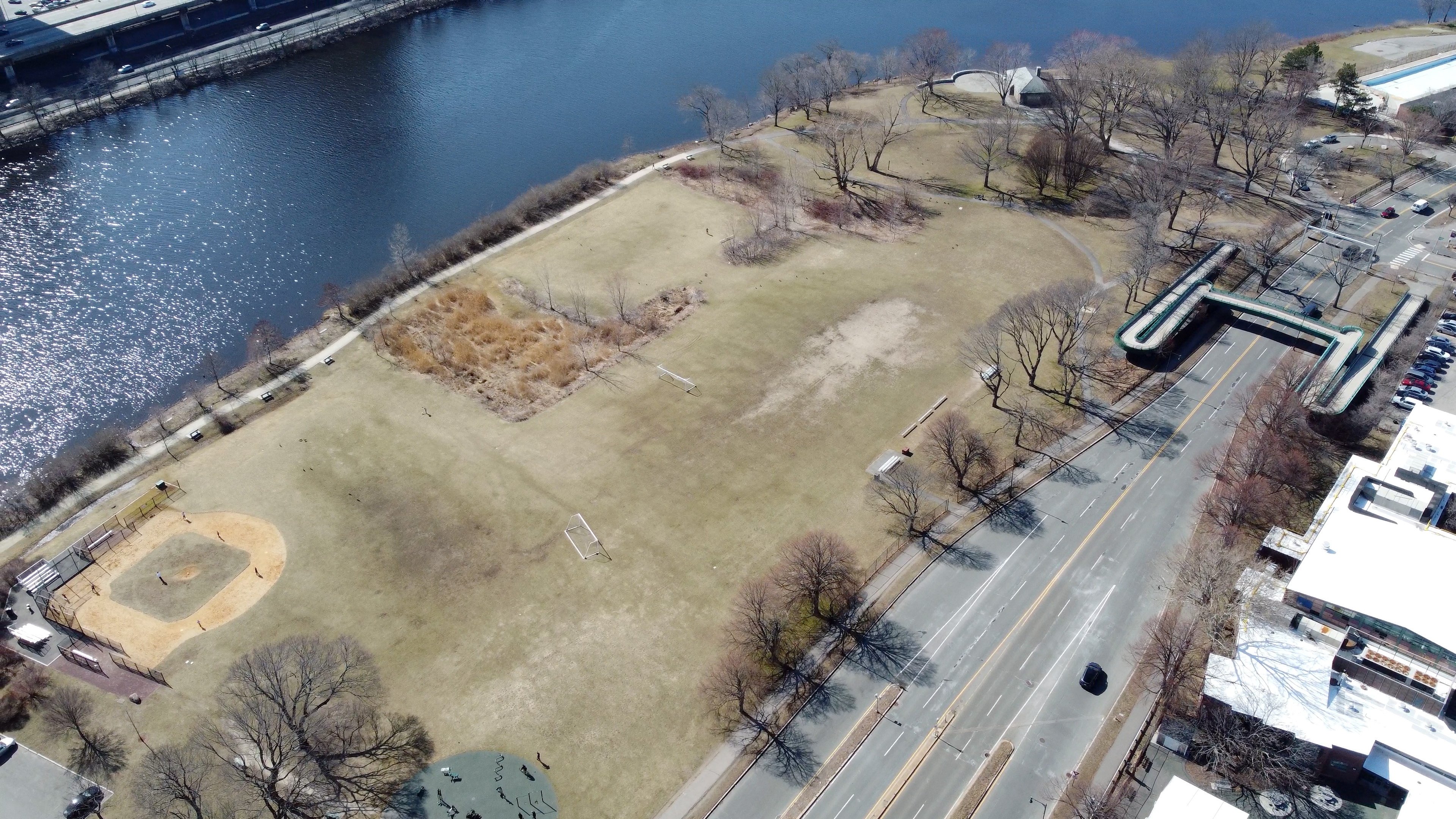 after dropping off the ingredients at home, i went out again, this time to magazine beach down by cambridgeport, to do some drone flying. i had my eyes set on this location for a while: lots of open space but within close proximity to boston across the charles river. i found a secluded patch of field to launch from. my original idea was to get some photos of boston looking through the BU bridge, since that's one of the better views of boston. however when i have the vantage point of a flying drone, i can get much better photos, don't have to rely standing on a bridge.