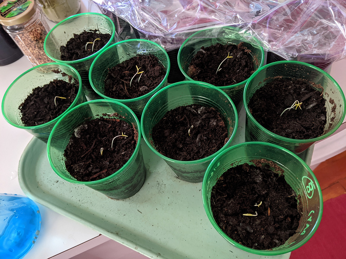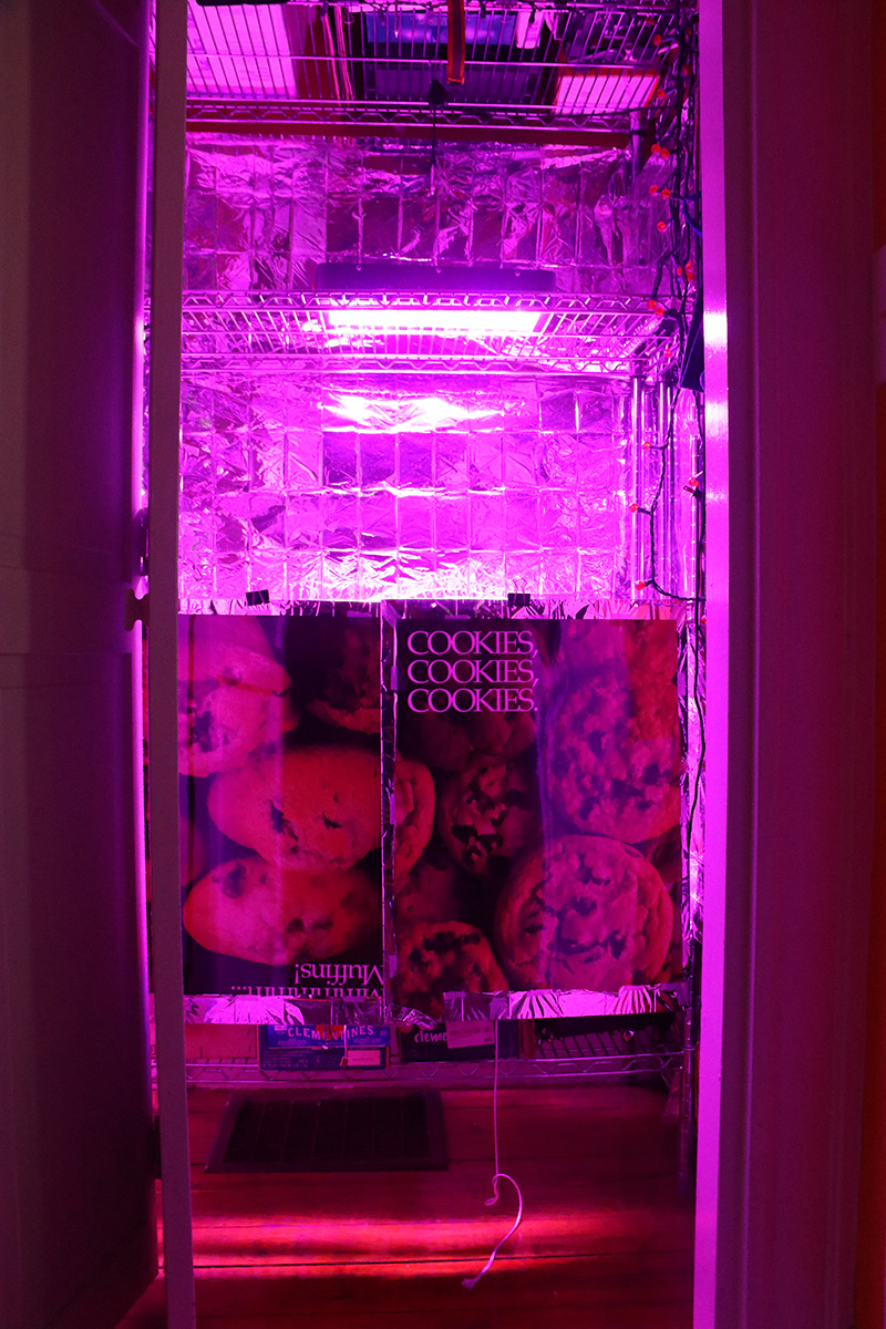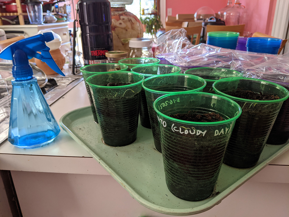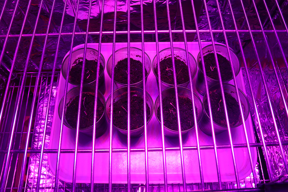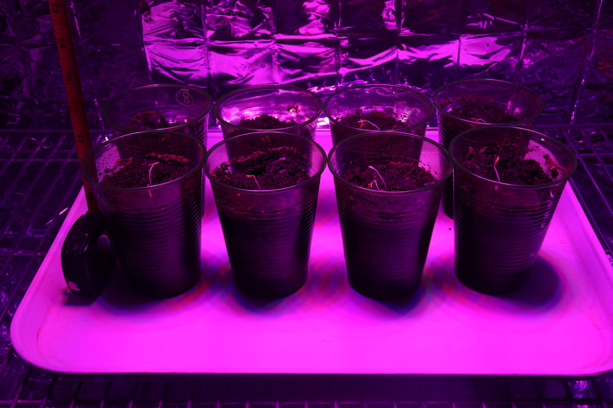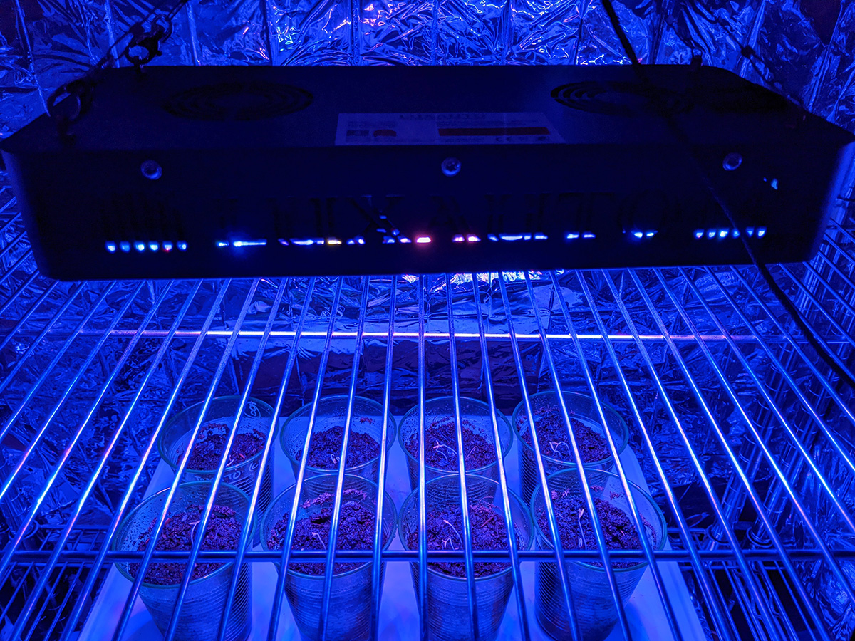 last night i noticed that my tomato seedlings had started to germinate. when i woke up this morning i removed all the plastic boxes from my closet so i could convert it into a grow closet. initially i had the seedlings too close to the grow light, just 10 inches. i then lowered it, but it was still 18 inches. i ended up moving the plants to a lower shelf entirely, finally allowing 24 inches of distance. this setup is only temporarily, until my barrina led strip lights arrive, whenever that may be.