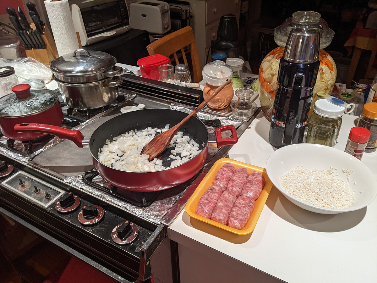 i didn't start making my risotto until 8:30pm, which meant i didn't eat until 9:30pm. part of the delay was discovering pantry moth larvae eating my risotto rice. i ended up picking out the few worms i found and rinsing off the larvae poop and silk from the rice. i haven't seen pantry moths in months but it makes me nervous to find some live larvae. i think they were just trapped in the rice. in any case, i still have my pantry moth trap, which hopefully is still working.