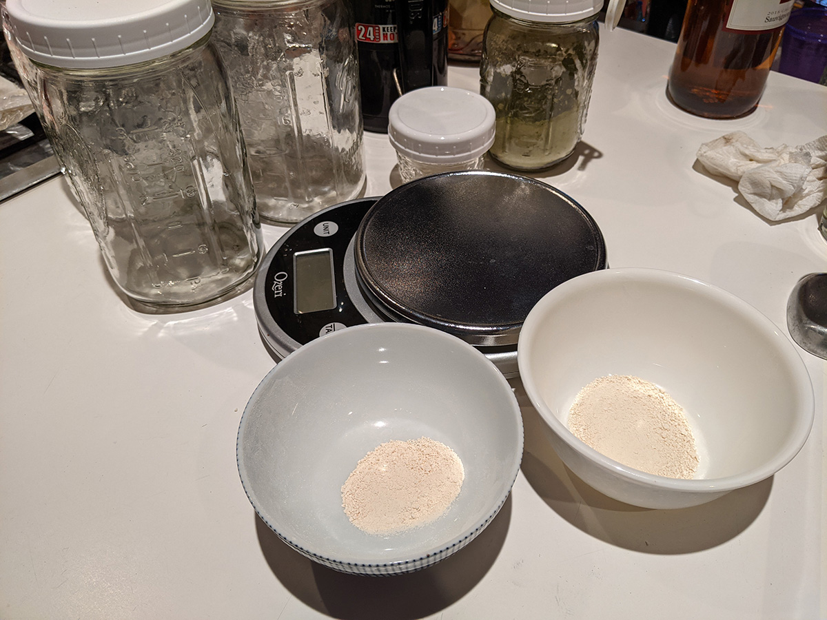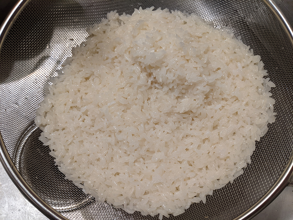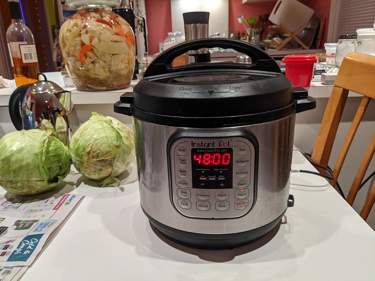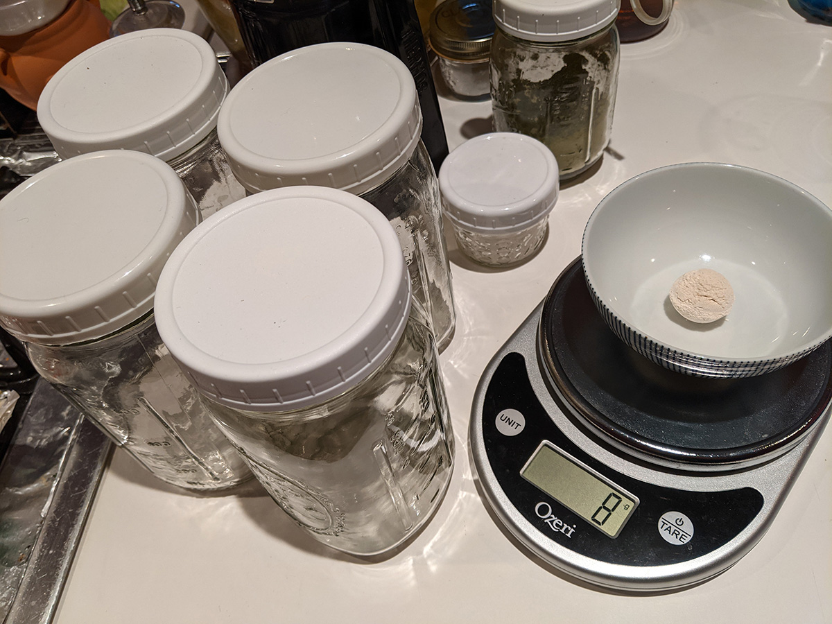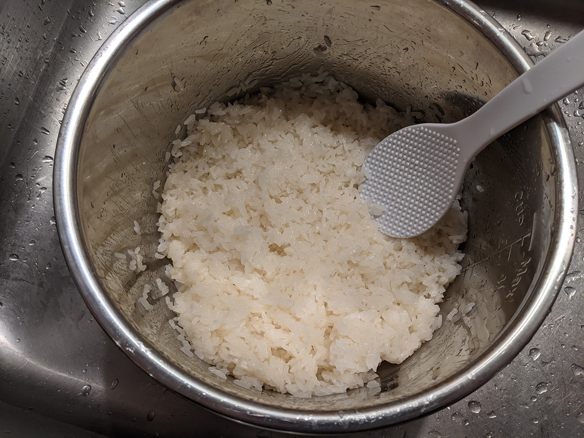 i had enough quart-size mason jars to run two batches of long-grain glutinous rice jiu niang: one using the slow ferment method, the other utilizing the instant pot for a heated 48 hours fermentation. the goal is to not only test for sweetness, but also in the case of the instant pot to see if i can purposely induce the fermentation to produce wine. for this experiment i used the old-fashion ball jiu niang yeast ball. in my experience they produce more alcohol than the angel rice leaven powder. i cooked two batches of rice, 2 cups rice with 2 cups water. only later did i realize i could've simply cooked all the rice in one batch and divided them up evenly, saving me some time. the first batch of rice i kind of forgot about and left it warming for 44 minutes. the second batch i only warmed for 7 minutes. the first batch of rice will be slow fermented, while the second batch will be quick fermented in the instant pot.