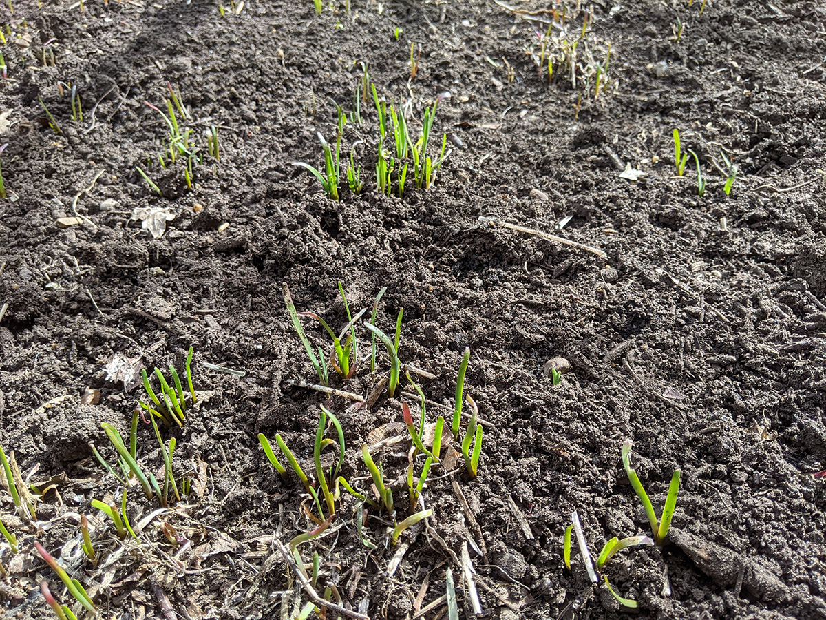 after the lecture i biked to belmont to gather a few things: grow room glasses, timer, pepper seeds. i also dropped off two bottles of cheap trader joe wine i bought yesterday and a package of frozen orange chicken. i wasn't planning on it but i ended up staying for an hour, spraying some neem on the basement jasmines and gardenia, then doing the same to the upstairs orchids and small-potted jasmines. i also took another survey of the backyard. the garlics seem larger than they were just 2 days ago. some of them look a little smooshed, i think it's the chickenwire, so i removed the wire from half the garlic bed to see if that'll make any difference. the chickenwire is there for protection, but not if it's stunting the garlics.