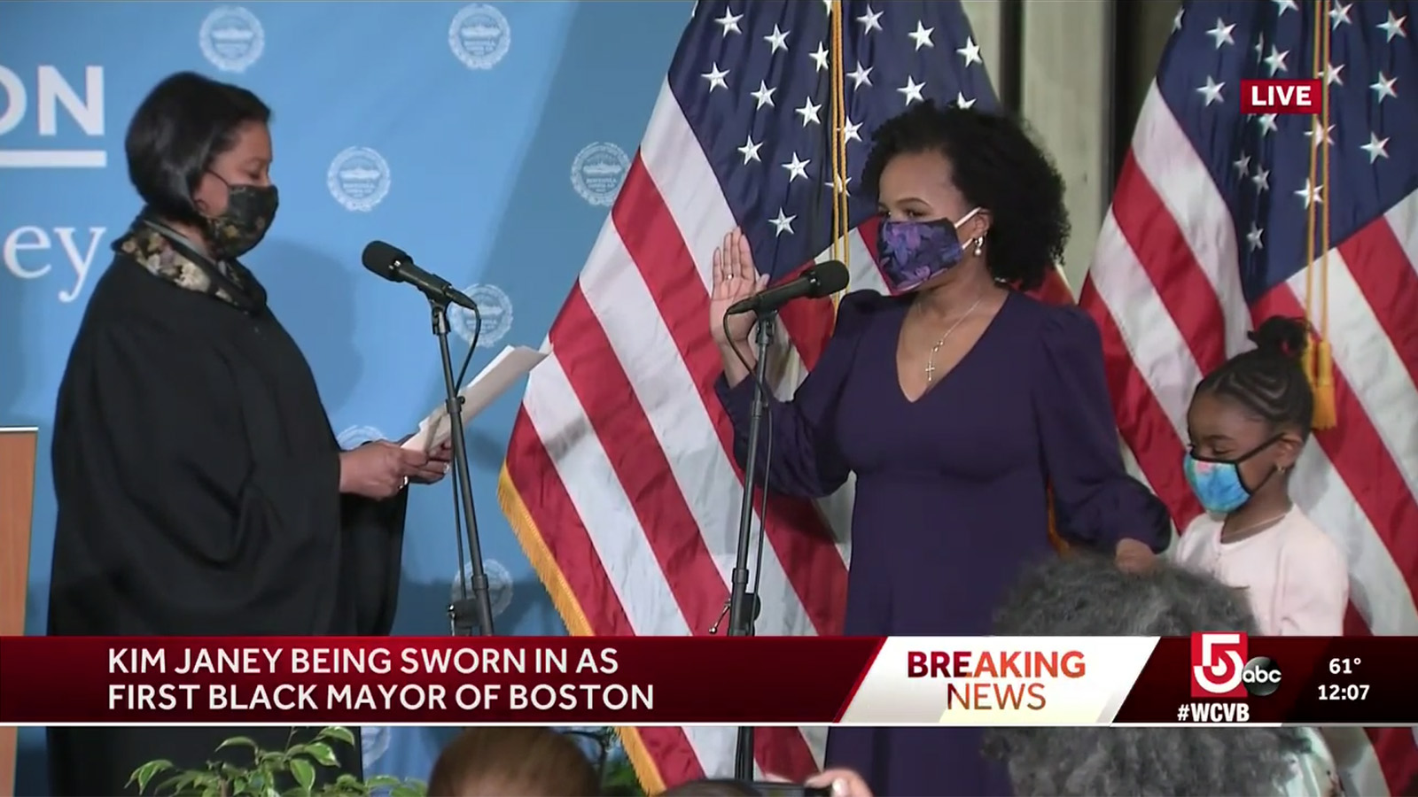 today at noontime kim janey was sworn in as boston first female black mayor, shattering two glass ceilings in the process. who knew that when marty walsh left boston to become biden's labor secretary, he'd leave the mayorship with a gift of diversity?
