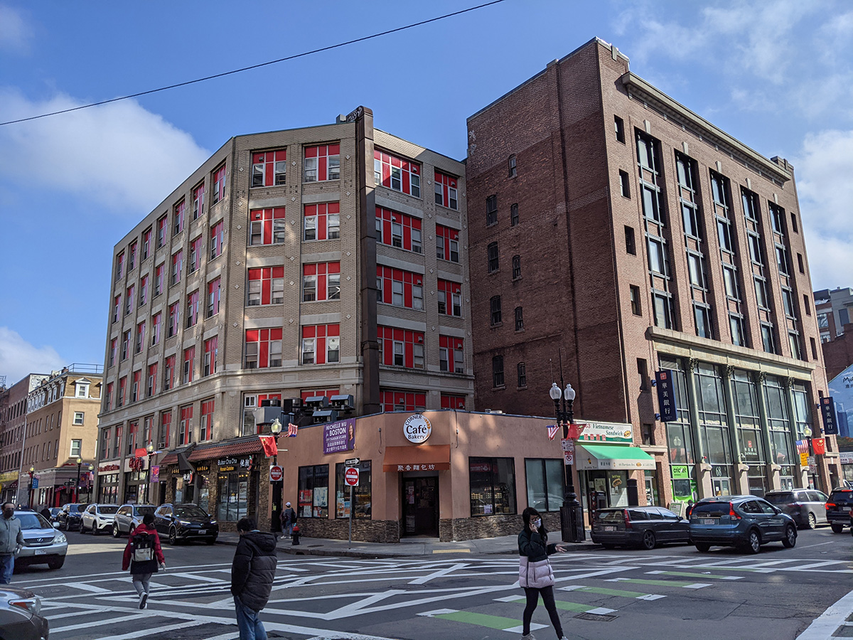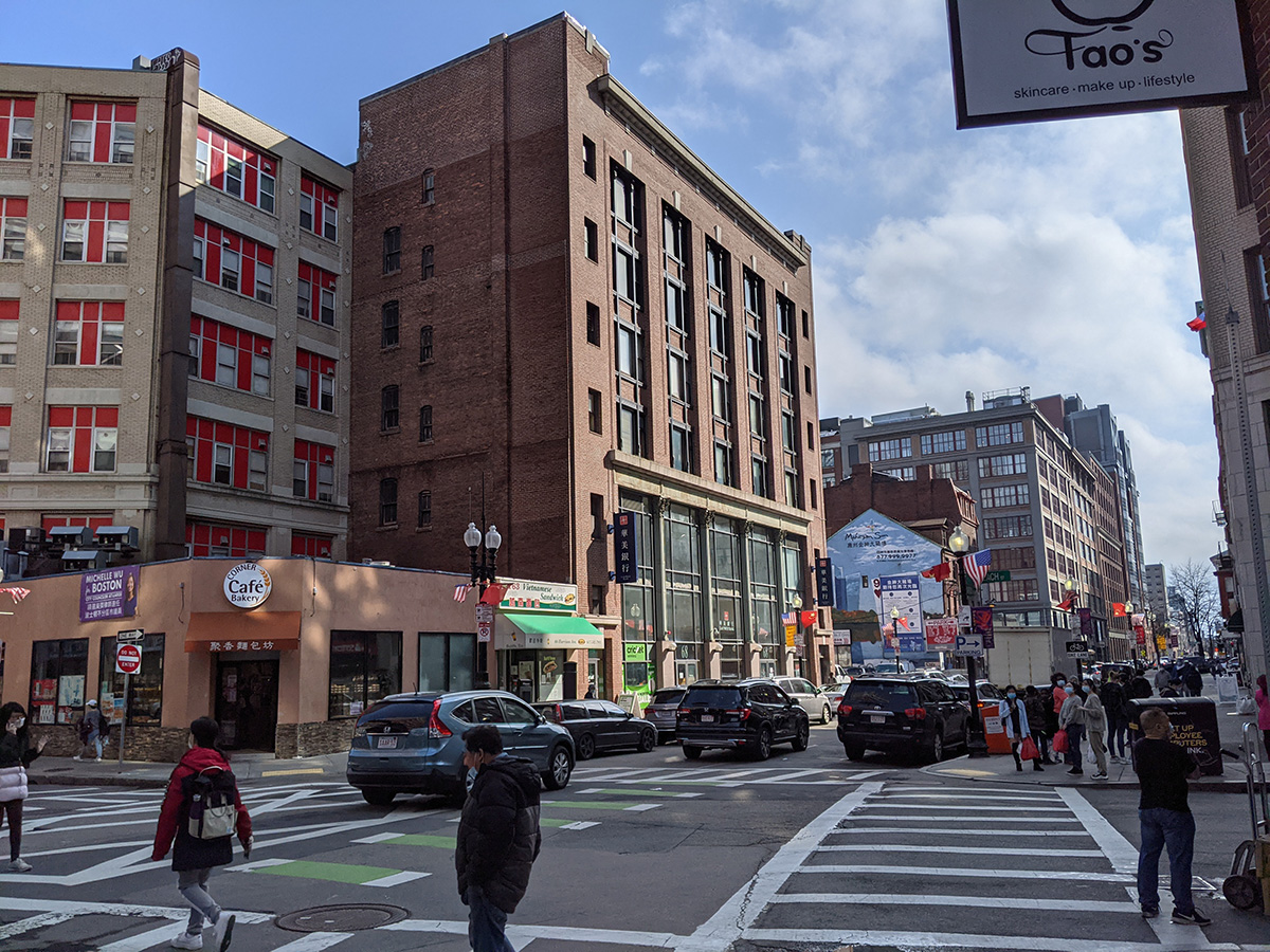 i left for chinatown by 2pm. i was waiting for the weather to turn sunnier, compared to this morning when it was very grey and somber. despite the clouds, it was a very warm day, warmer than yesterday, and i only had on a t-shirt. i pumped the tired before i left. in boston, instead of circling around the public garden via beacon and then down arlington street, i took advantage of the new bike route then went down the normally one way road between the public garden and common. from there i cut through columbus avenue to get onto arlington and back onto my usual route.