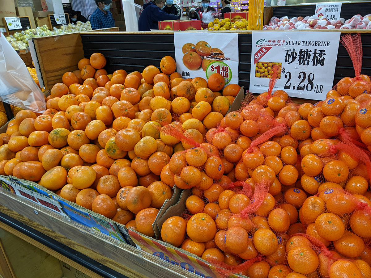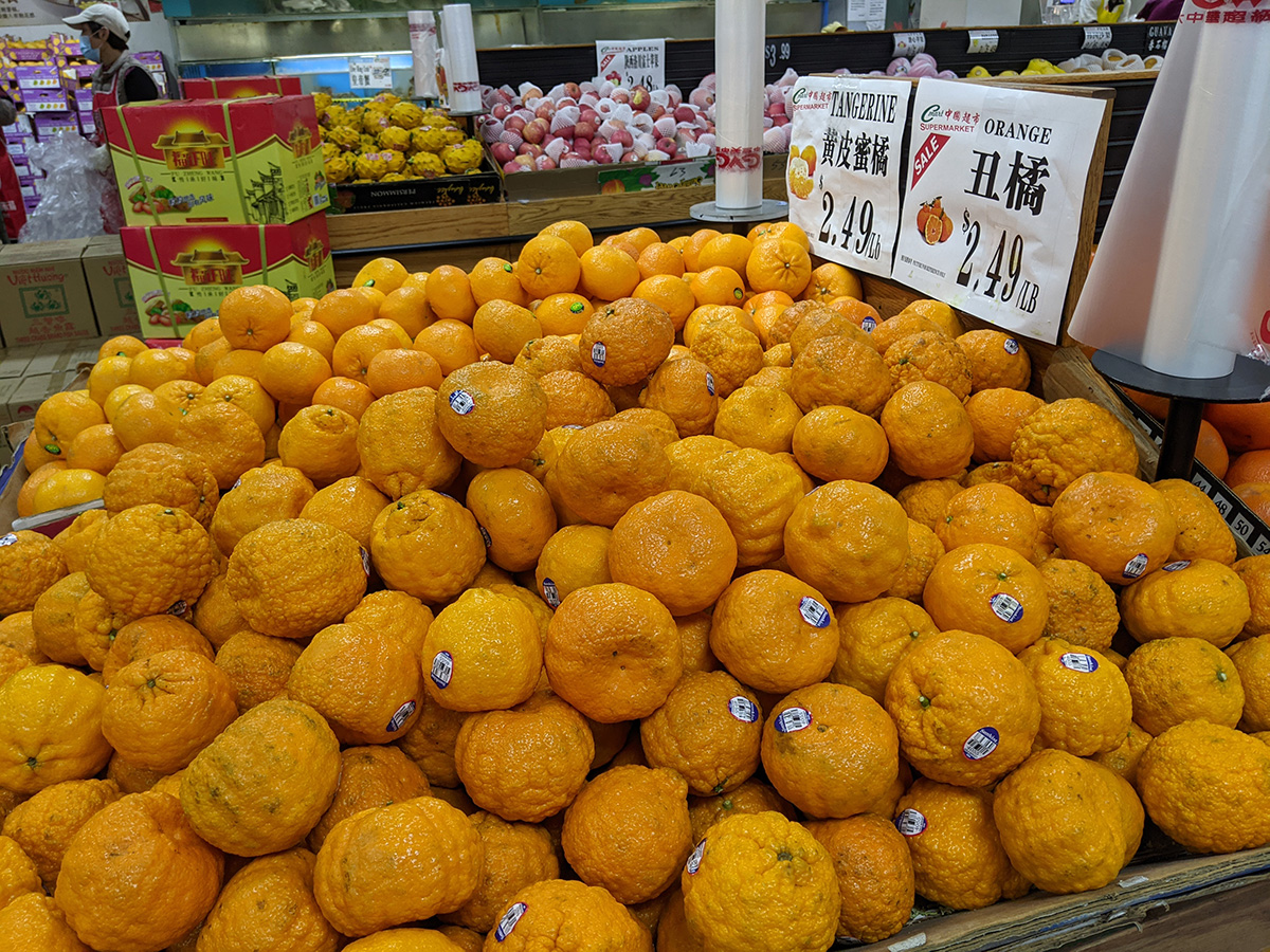 i went to c-mart again. ming's market has the cheaper prices, but they don't have as much selection as c-mart, and the few times i bought produce there, they've been freezer damaged (rotten ginger, soft daikon radishes). also they don't seem to have the weekly sales that c-mart has. like i picked up bags of oranges for just $1 a bag. most of the things i bought were kimchi ingredients. i decided i was going to make some yangbaechu kimchi today using the "green" cabbages i bought for st.patrick's day.