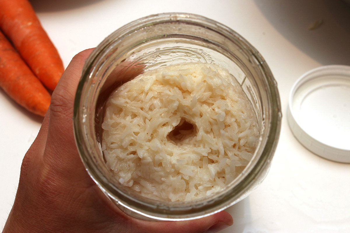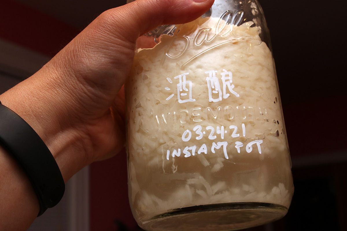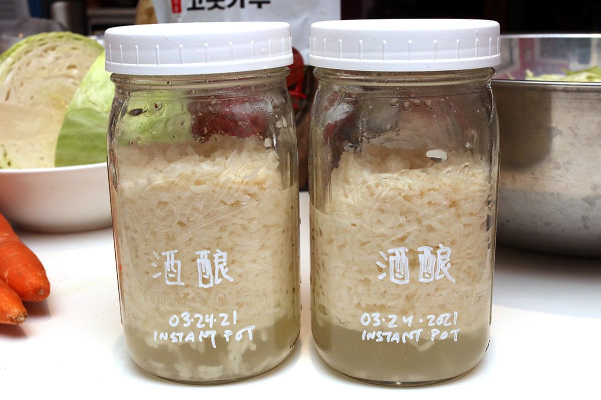 after 48 hours, i finally removed the jiu niang from the instant pot. these was a lot of liquids, which usually means high fermentation, which also means high alcohol content. there was strong jiu niang odor when i opened the jar. it didn't taste as sour as yesterday, but i also wouldn't exactly call it sweet. yeast ball fermentation has never really worked in the instant pot. the real test is to see if the slow fermented long grain glutinous rice will result in some sweet jiu niang. that won't be ready until tomorrow night at the earliest, i think it'll probably take a bit longer since it's been so cold in the house.
