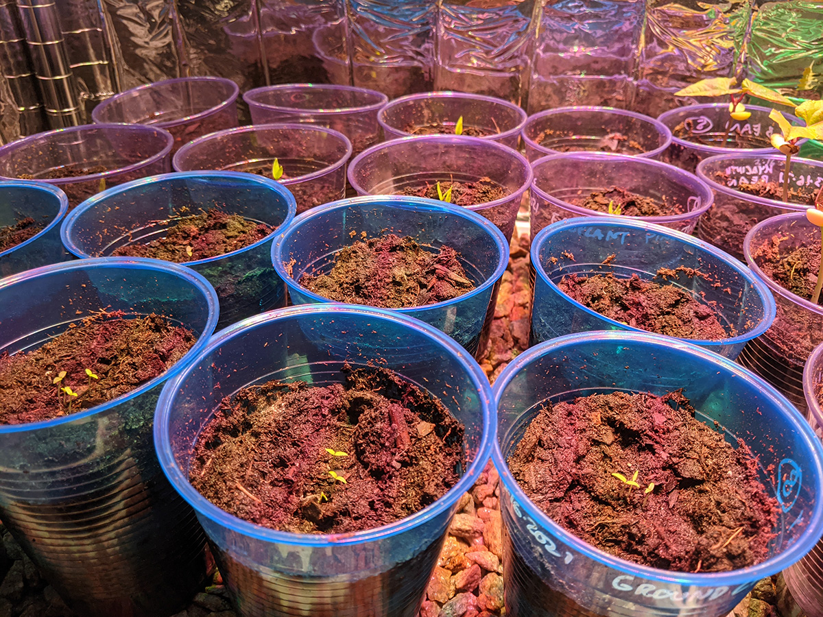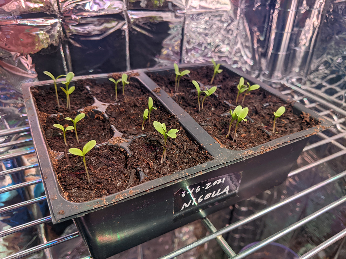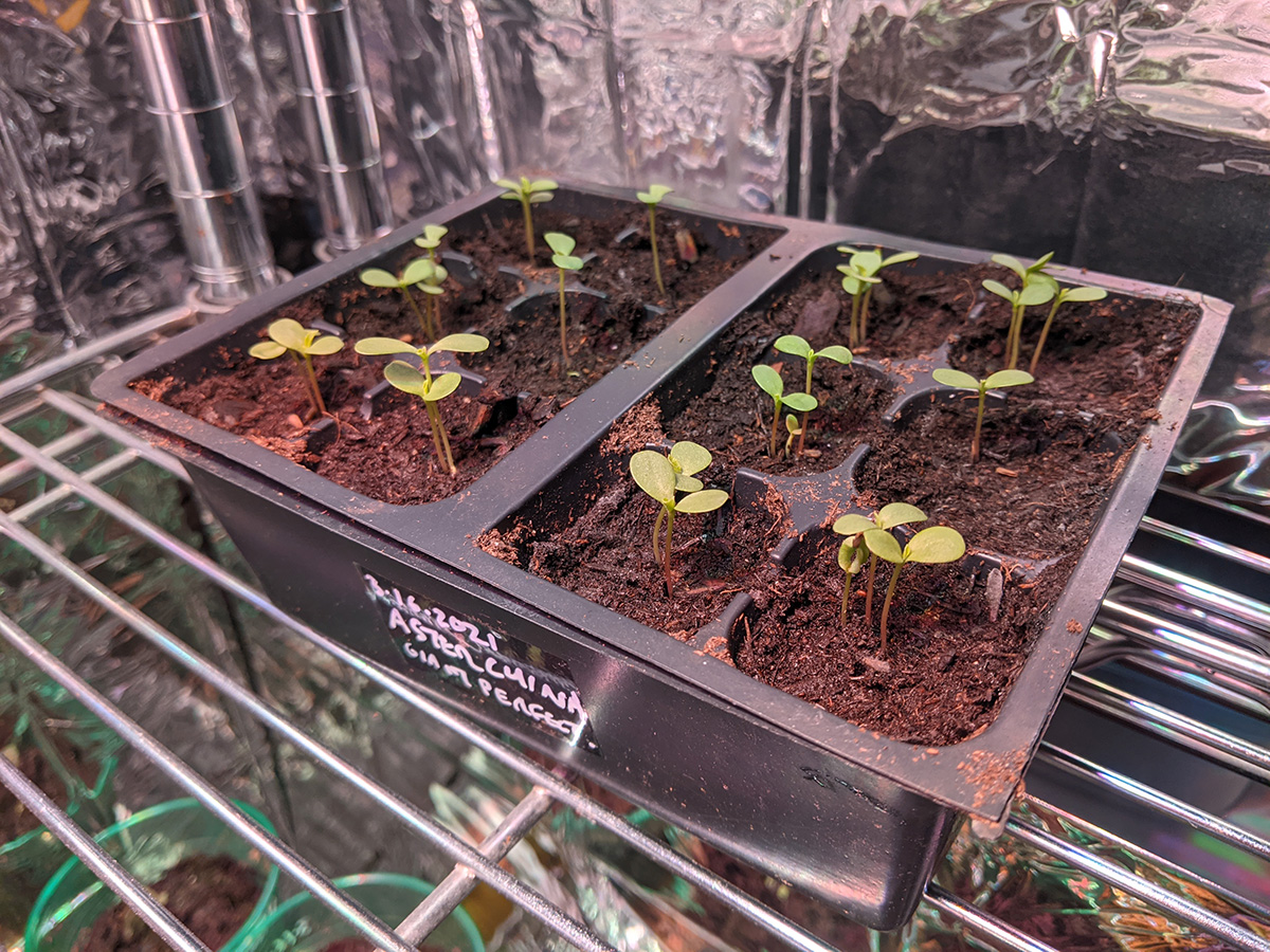 finally, i checked my seedlings. the transplanted hyacinth bean from last night, the one i replanted kind of crooked, i was happy to see it growing perfectly straight now, and about to unfurl its first leaves.