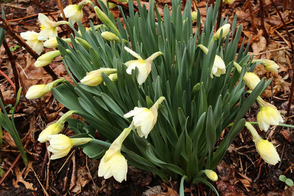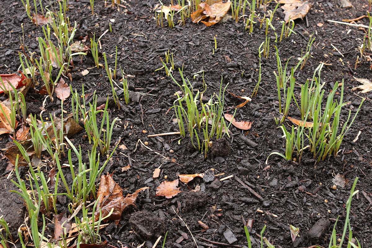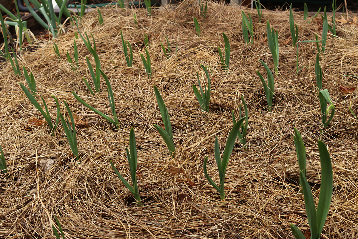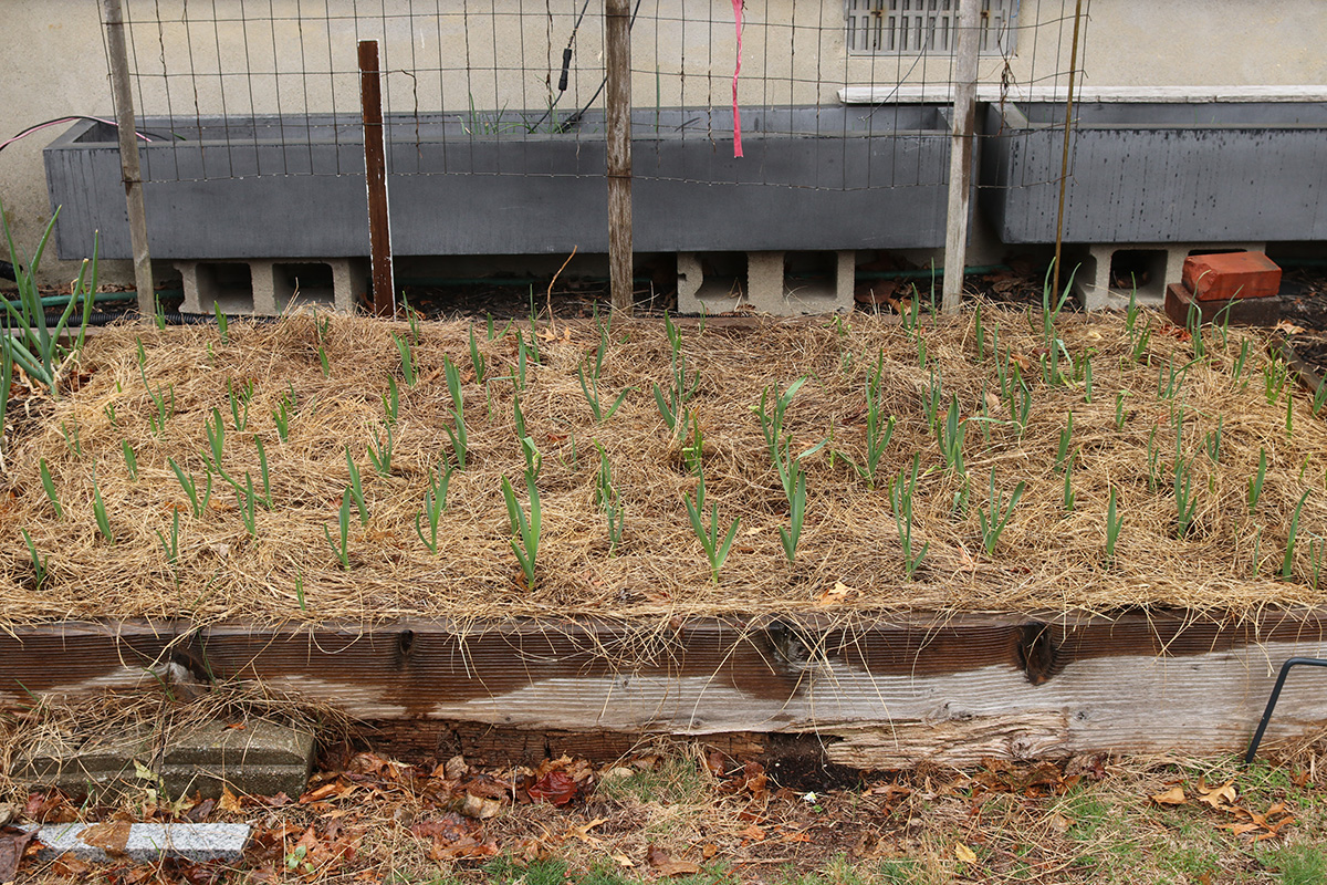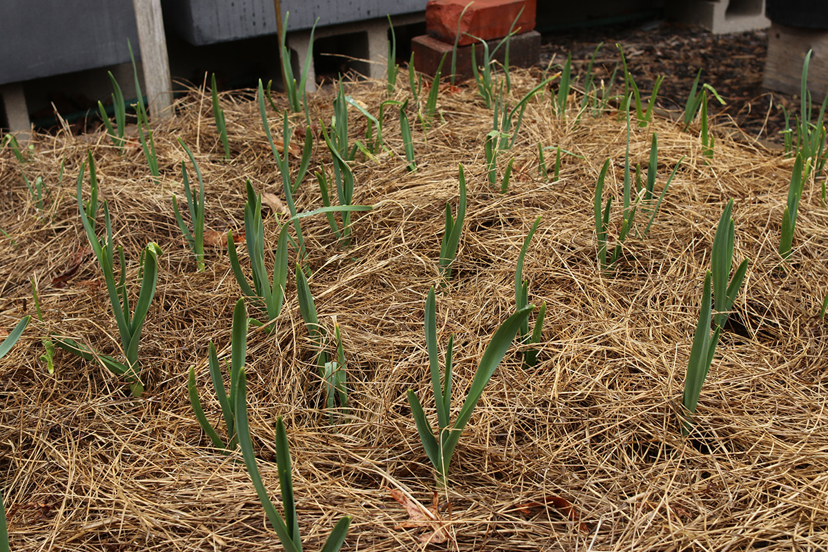 i had a chinatown sponge cake for lunch. when the rain started to pick up, i went out into the backyard with an umbrella to admire the garlics. the rain, the sun, the cold, the chicken manure, it's all the things garlics like.
