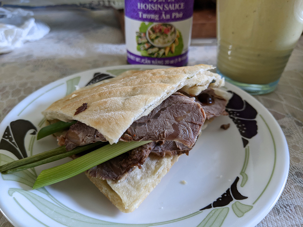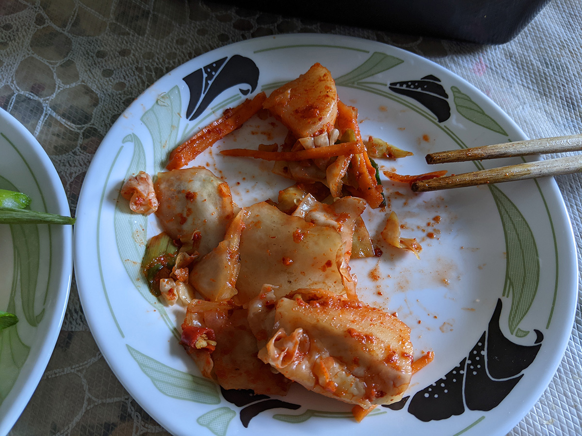 i had some leftover braised beef stuffed in scallion bread for a late lunch, along with some soy milk mixed with buttercup squash. my mother tried my yangbaechu kimchi, she loved it, said it was very crunchy and not salty like my usual kimchi.