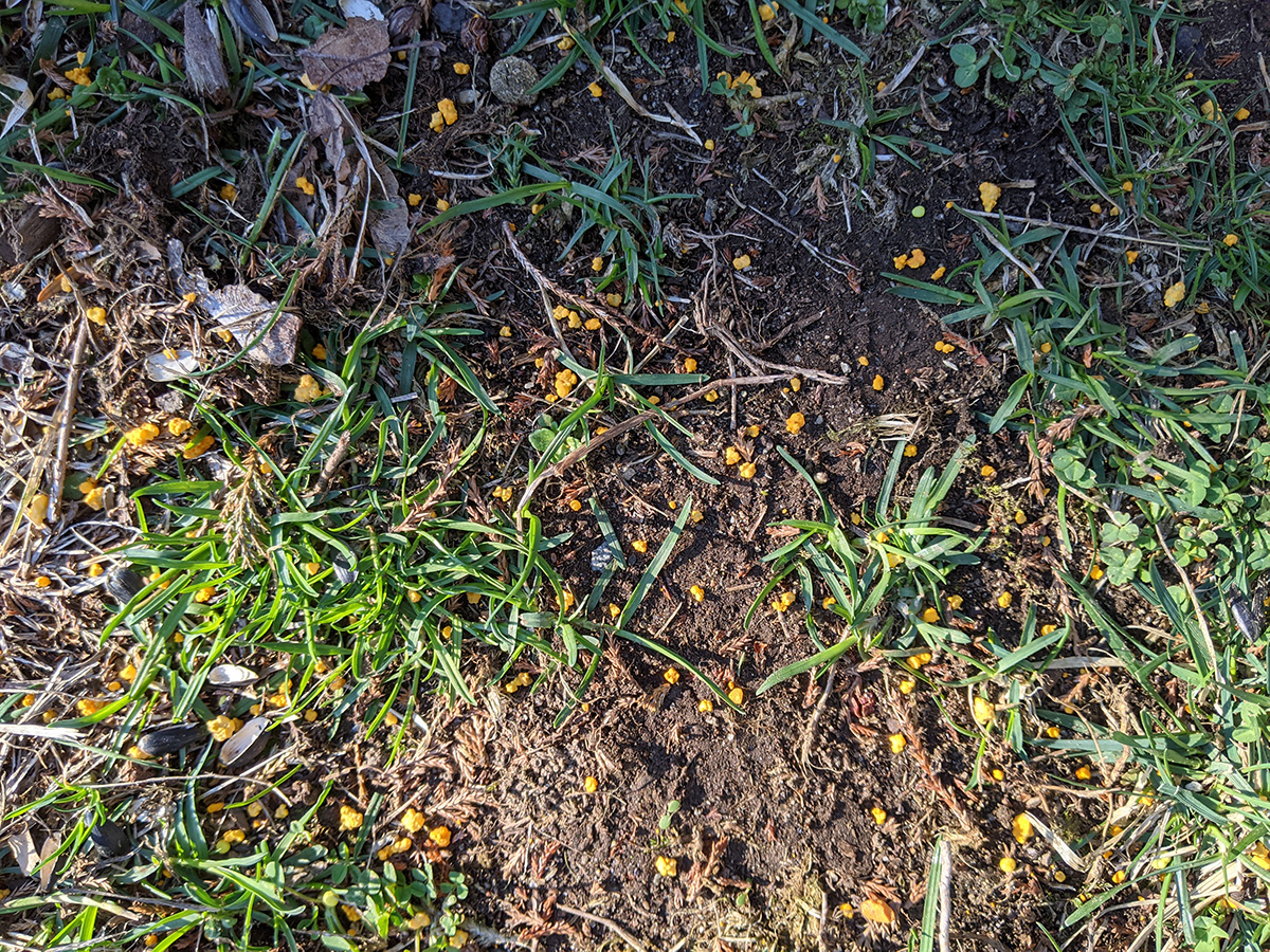 back at the house, the plan was to rake the thatch from the lawn before sprinkling the crabgrass preventer. unfortunately i broke the larger plastic rake when i started raking. the other one was a smaller metal rake but it wasn't as good as the plastic rake. it had broken off right at the end, so my father tried drilling out the wood,