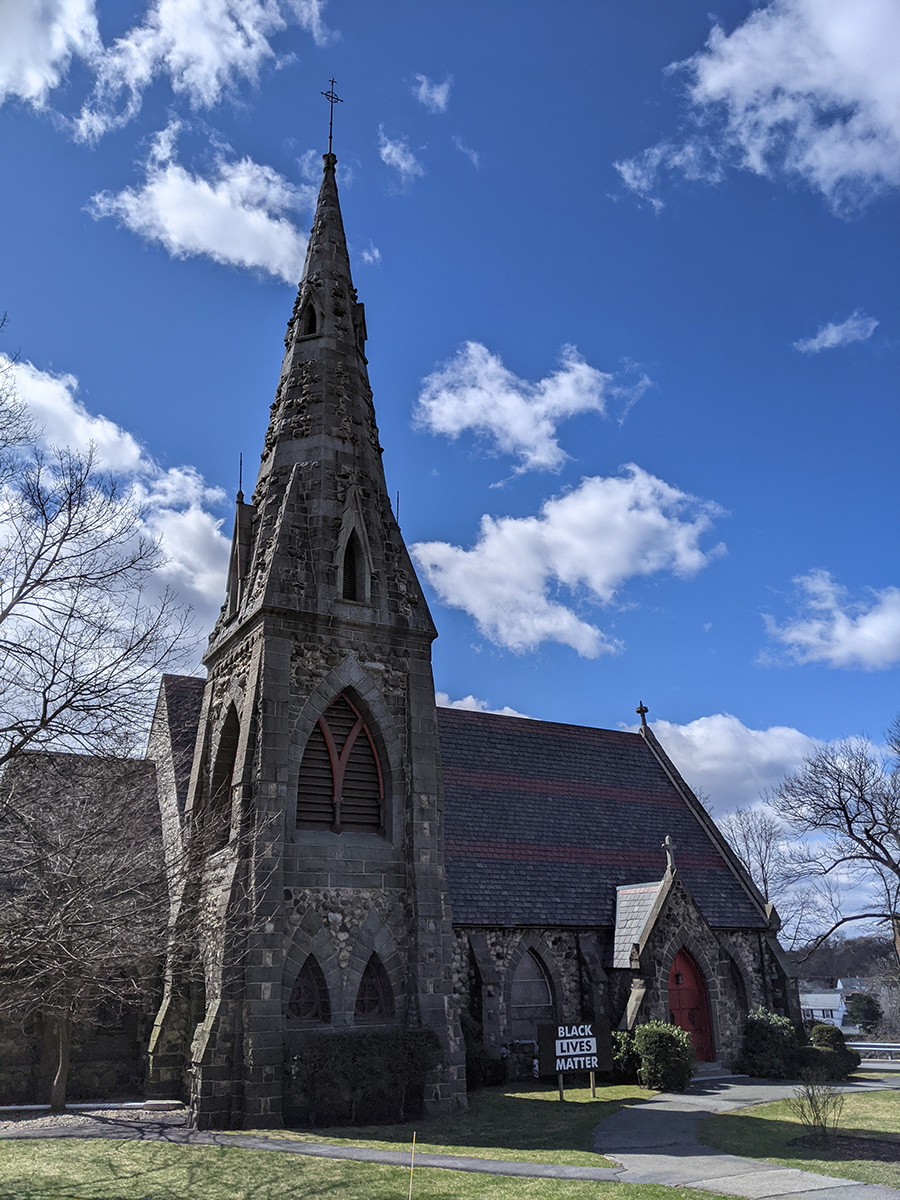 so i left the store and wandered around medford center, in the blustery wind. a saw a police officer fumbling with a bicycle and a woman sitting on the sidewalk with a bike helmet, rubbing her leg. she must've had an accident, maybe a car hit her but i didn't see any other vehicles, or maybe she got thrown off her bike by the strong winds. while i walked, a firetruck came by, followed by an ambulance. when i came back again, the bike was locked to the flagpole in front of church and EMT's were trying to get the woman onto a stretcher.