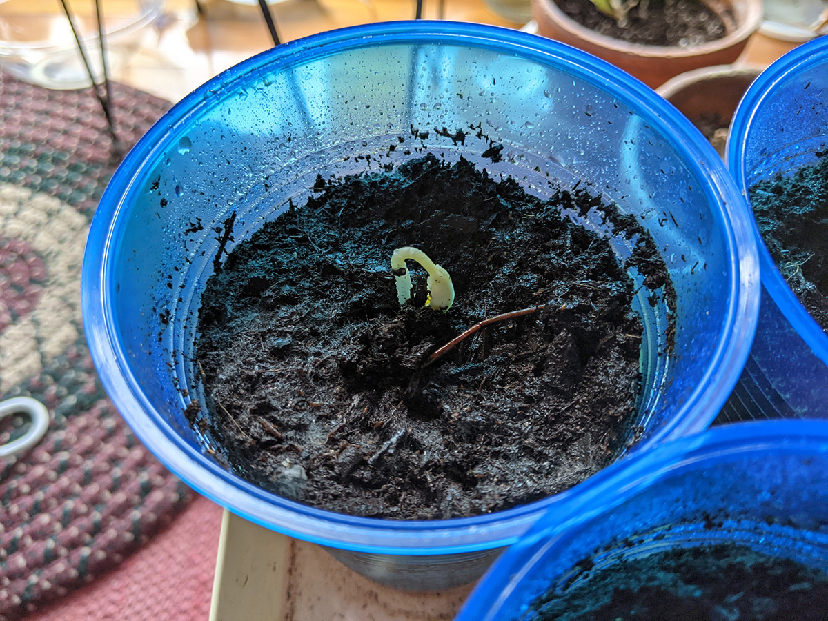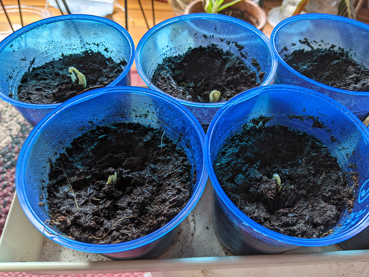 i noticed it last night: my long beans and shikou eggplants have all sprouted. i was particularly surprised by the shikou, these were old seeds, i didn't expect them to all germinate. there's just enough room to fit the 3 eggplants in the grow closet but the long beans have to make do with the limited sunlight from the rear kitchen door.