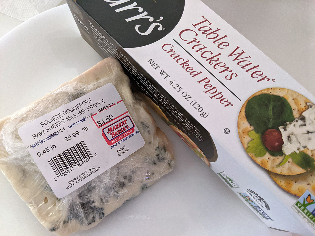 this being the last day of march, i tried to retroactively update blog postings for this month, but i didn't make much headway. the older a posting gets, the harder it is to update it. i only had a matcha latte for lunch so when i got a bit hungry i had some water crackers with roquefort cheese.