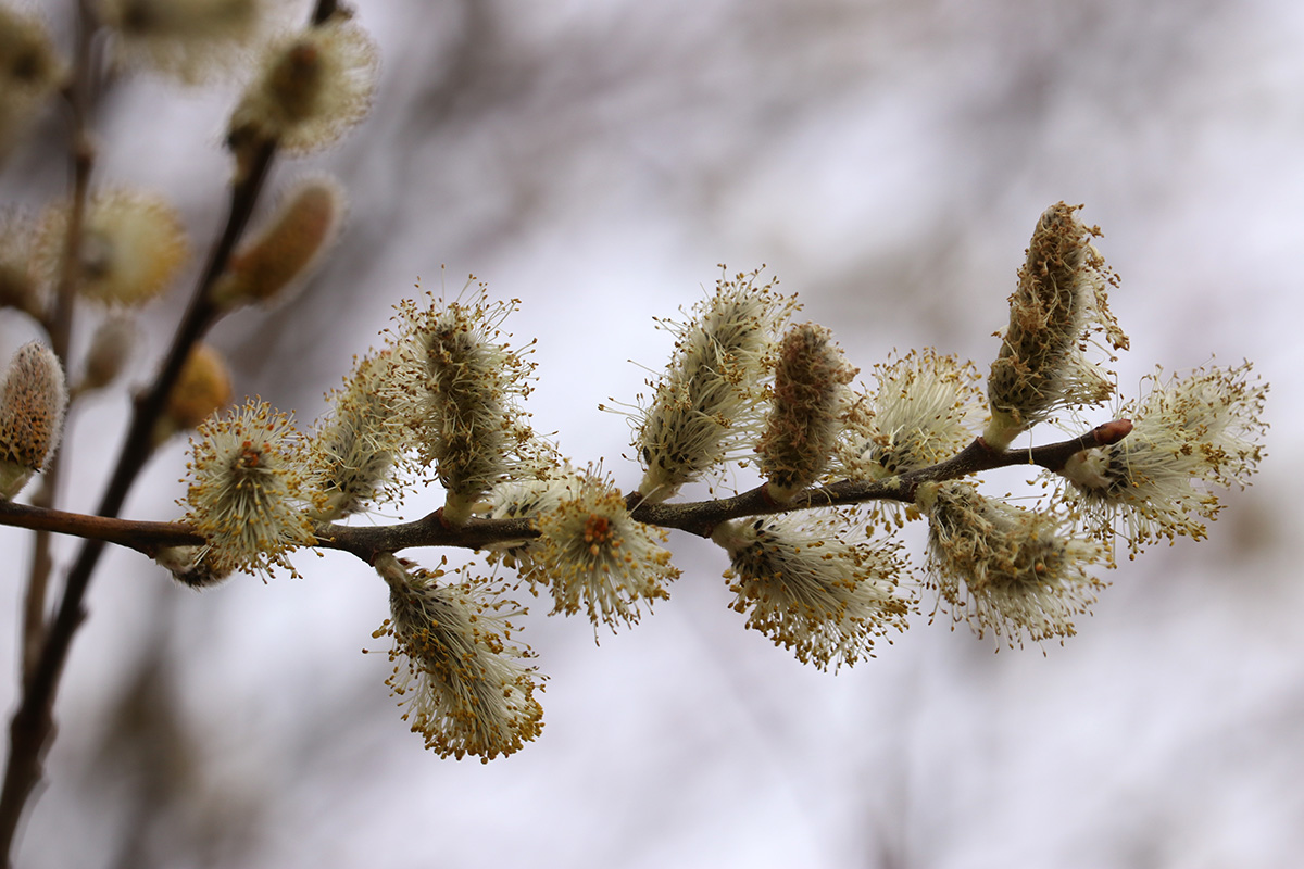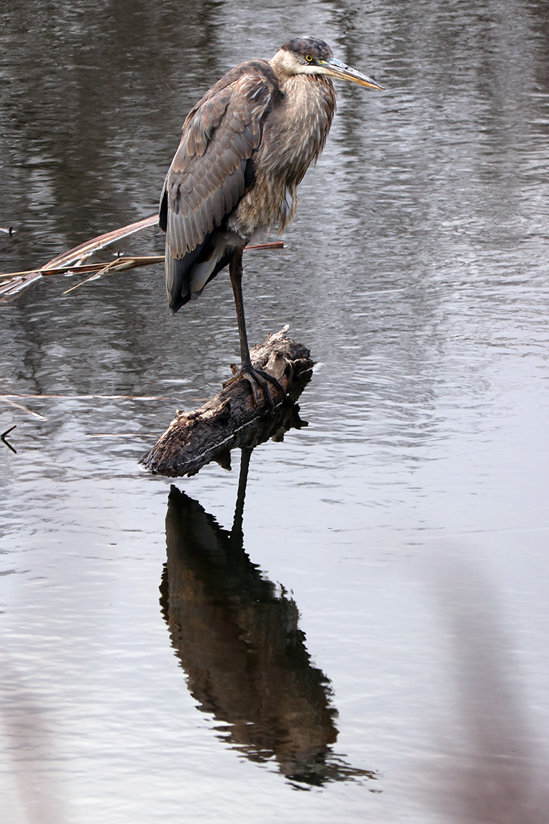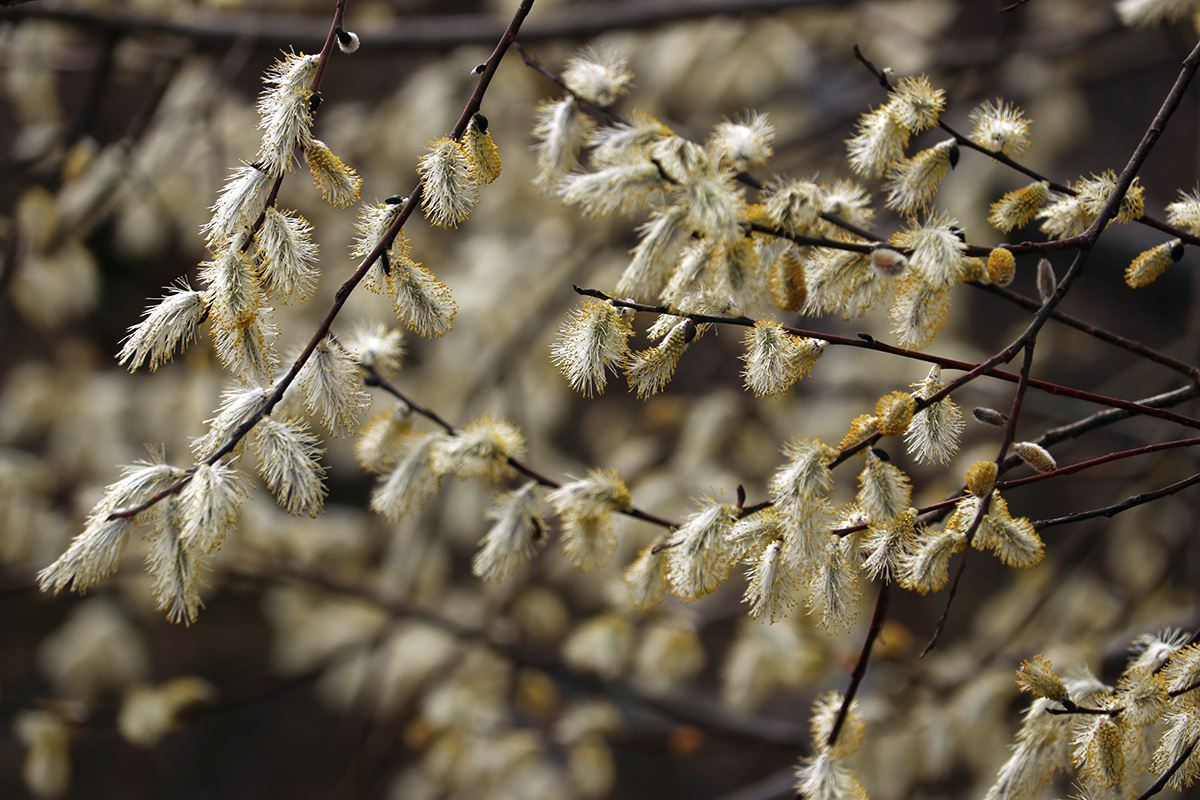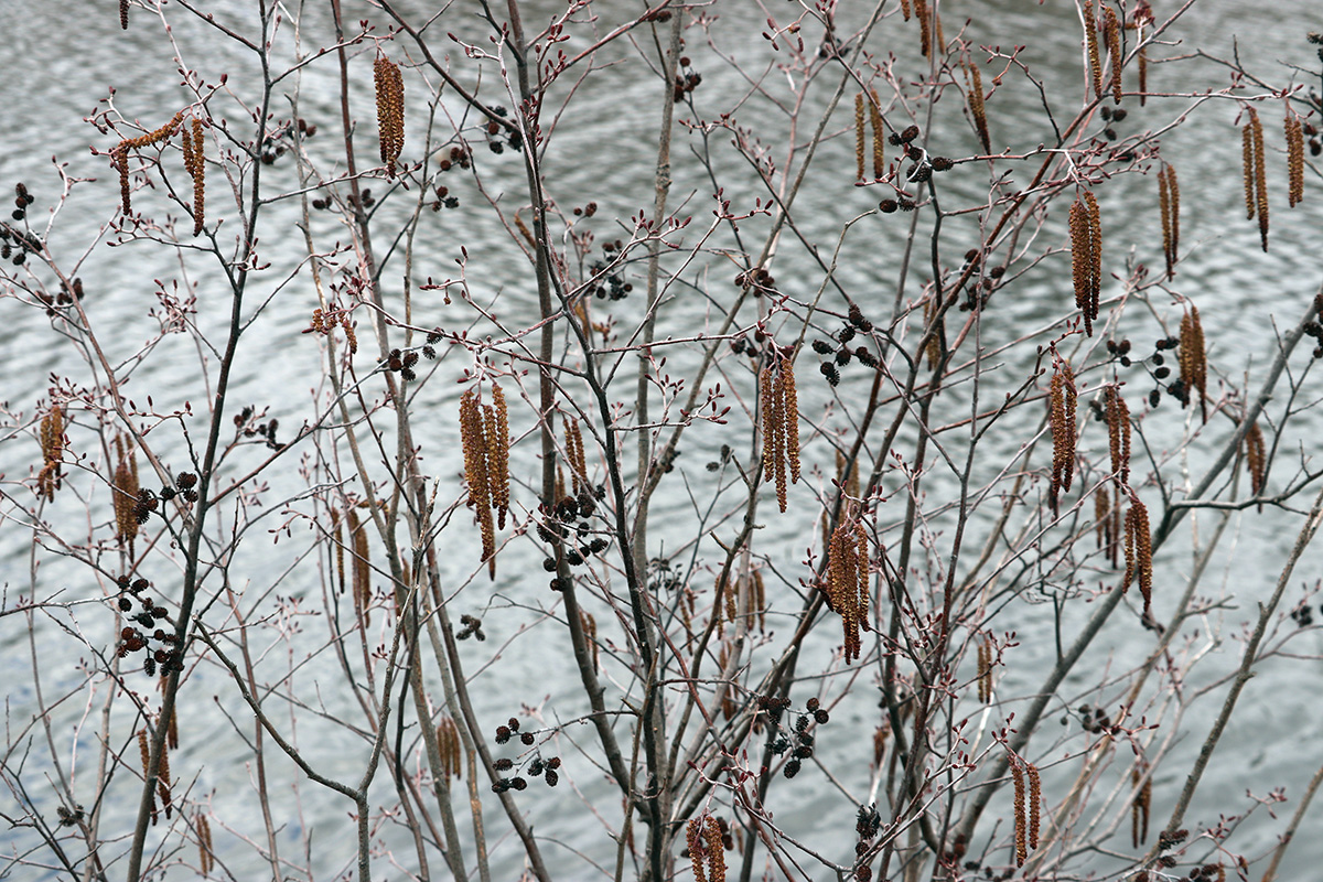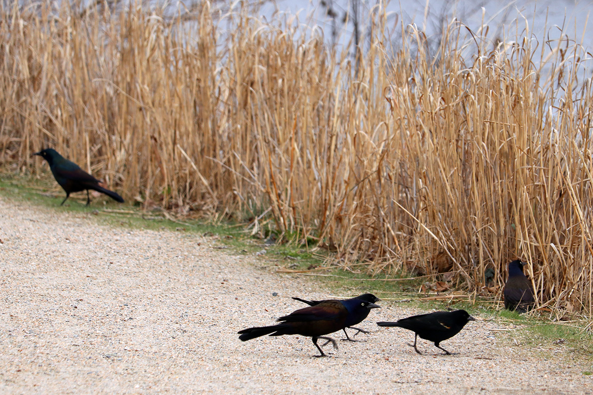 as for naturing, a lot of pussy willow catkins of various shapes and sizes, and red-colored early spring flowers on trees, of which kind i don't know. i saw a white-throated sparrow (a little kid helped me confirm the identification), mallards, canada geese, grackles, cardinals, robins, and red-winged blackbirds. coming to alewife i saw a grizzled great blue heron stalking the shoreline.