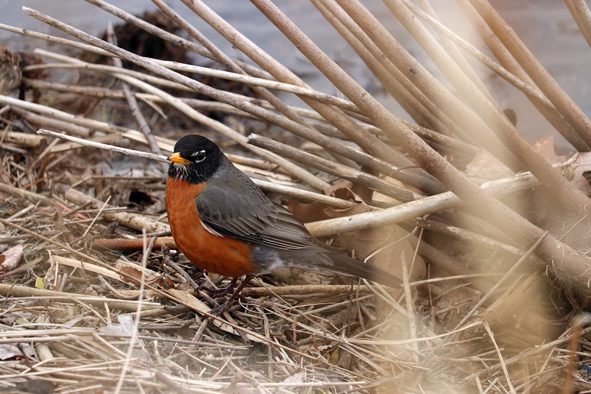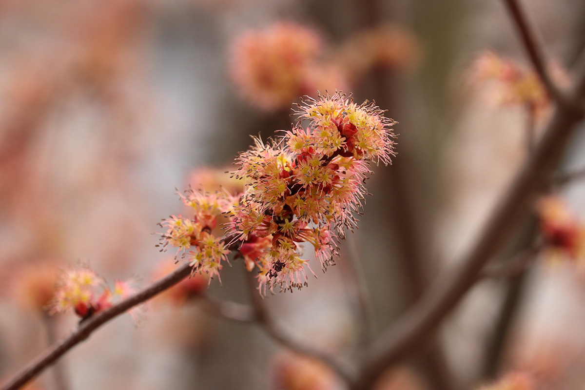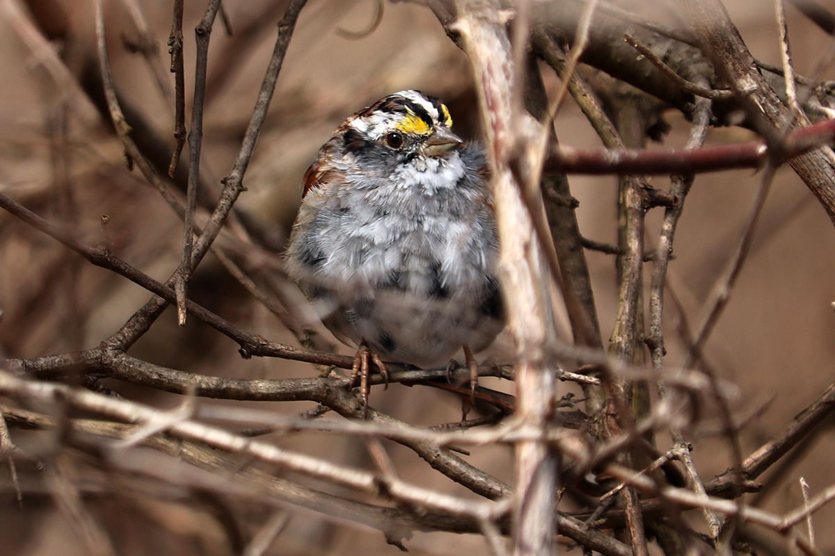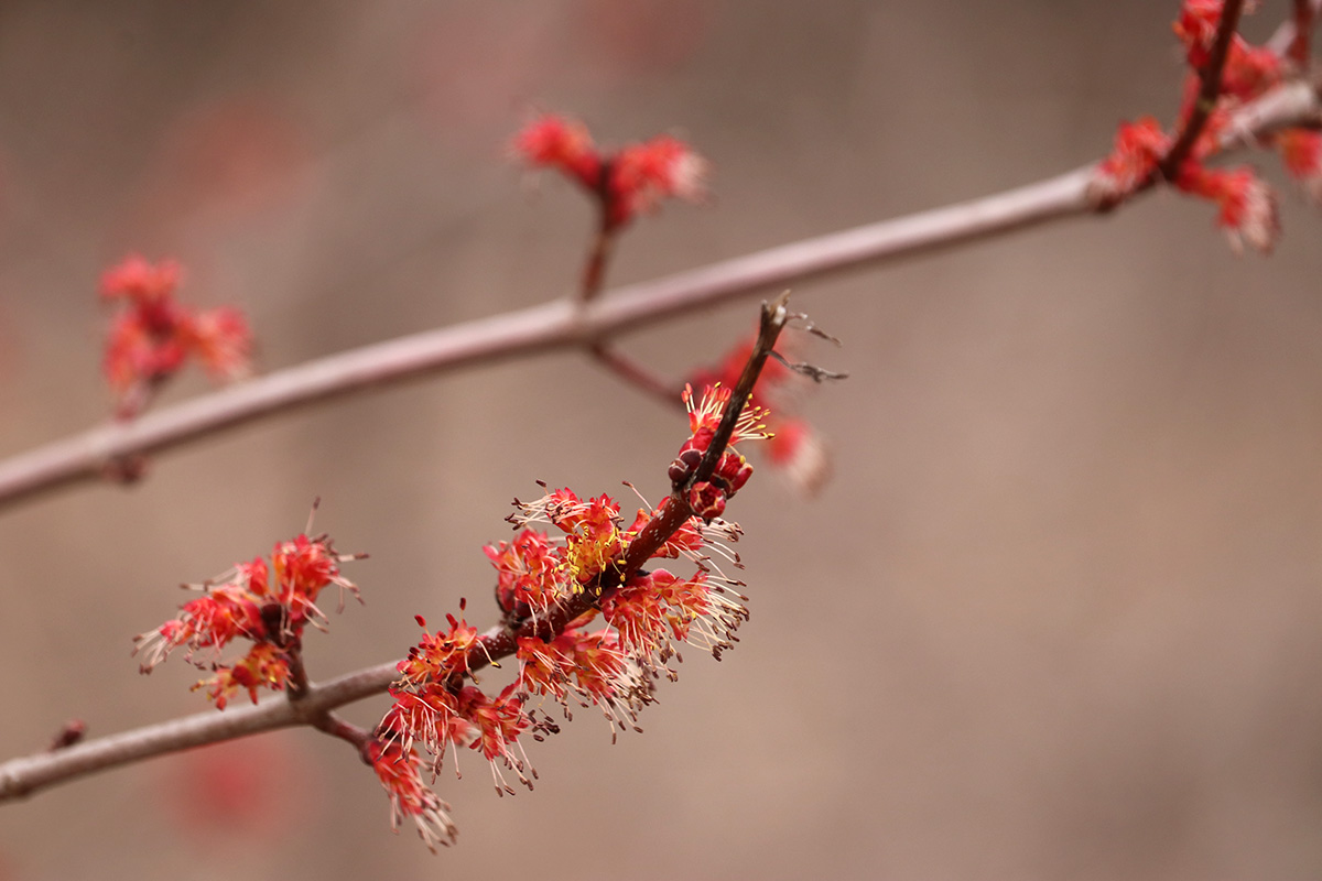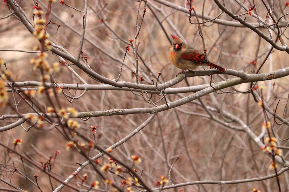 as for naturing, a lot of pussy willow catkins of various shapes and sizes, and red-colored early spring flowers on trees, of which kind i don't know. i saw a white-throated sparrow (a little kid helped me confirm the identification), mallards, canada geese, grackles, cardinals, robins, and red-winged blackbirds. coming to alewife i saw a grizzled great blue heron stalking the shoreline.