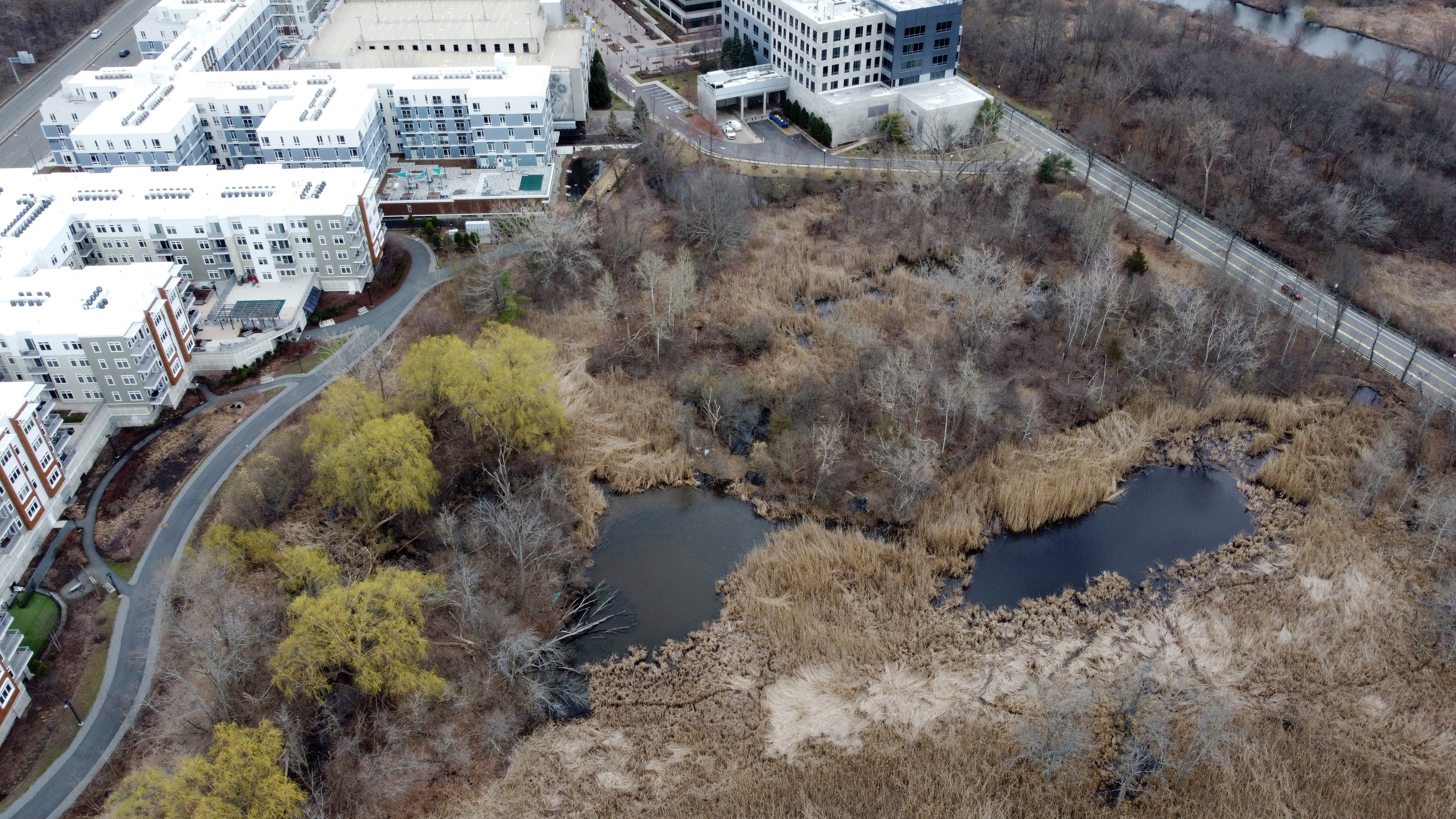 part of me was there for the nature, but a part of me was also there to find a place to fly the drone. my destination wasn't so much the reservation, but rather what was beyond that, the royal belmont luxury apartments. i've never seen it before in person, only on google satellite view. it looked like a monstrosity, clearing away a vast tract of silver maple forest to make room for the apartment complex.