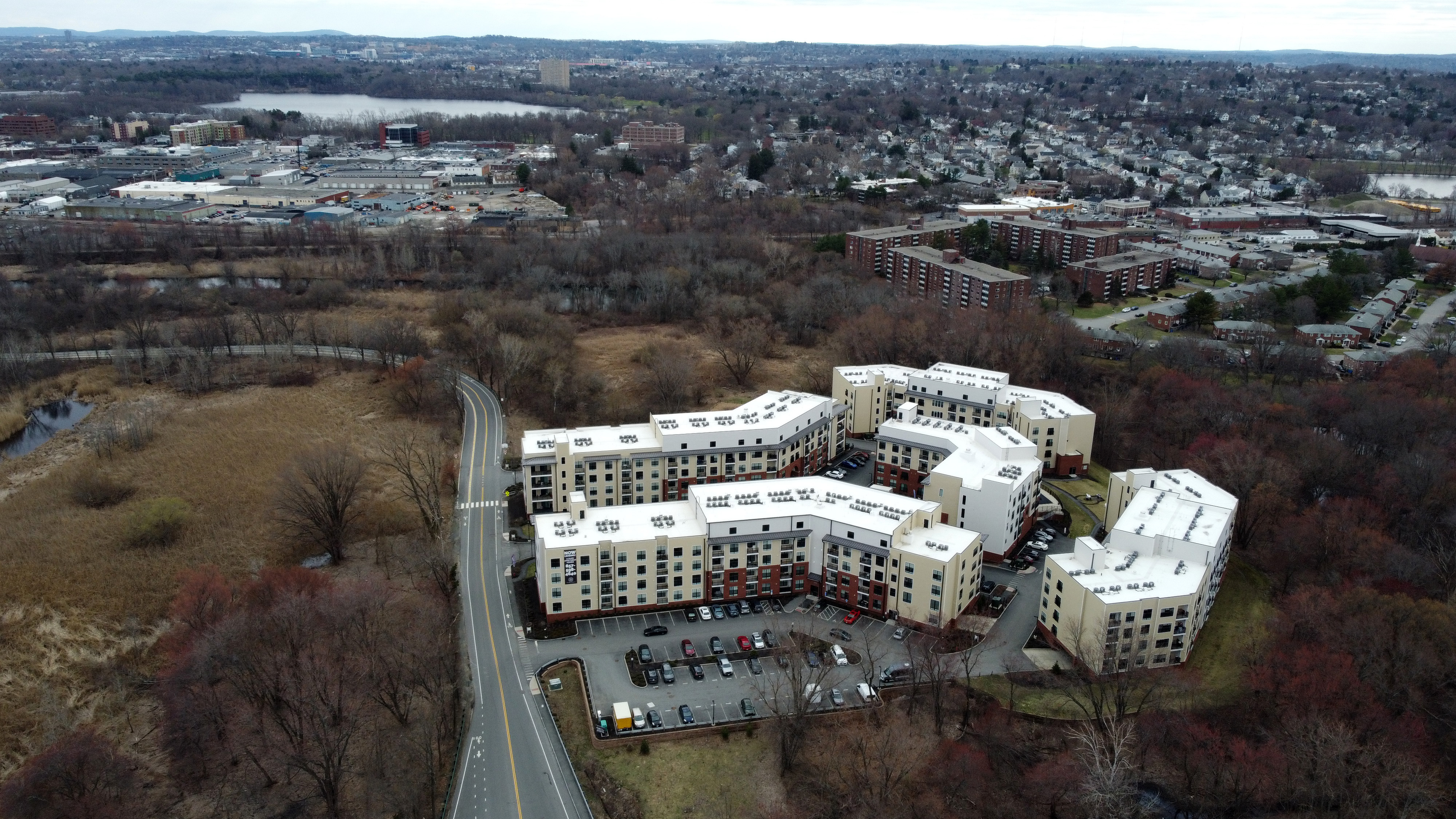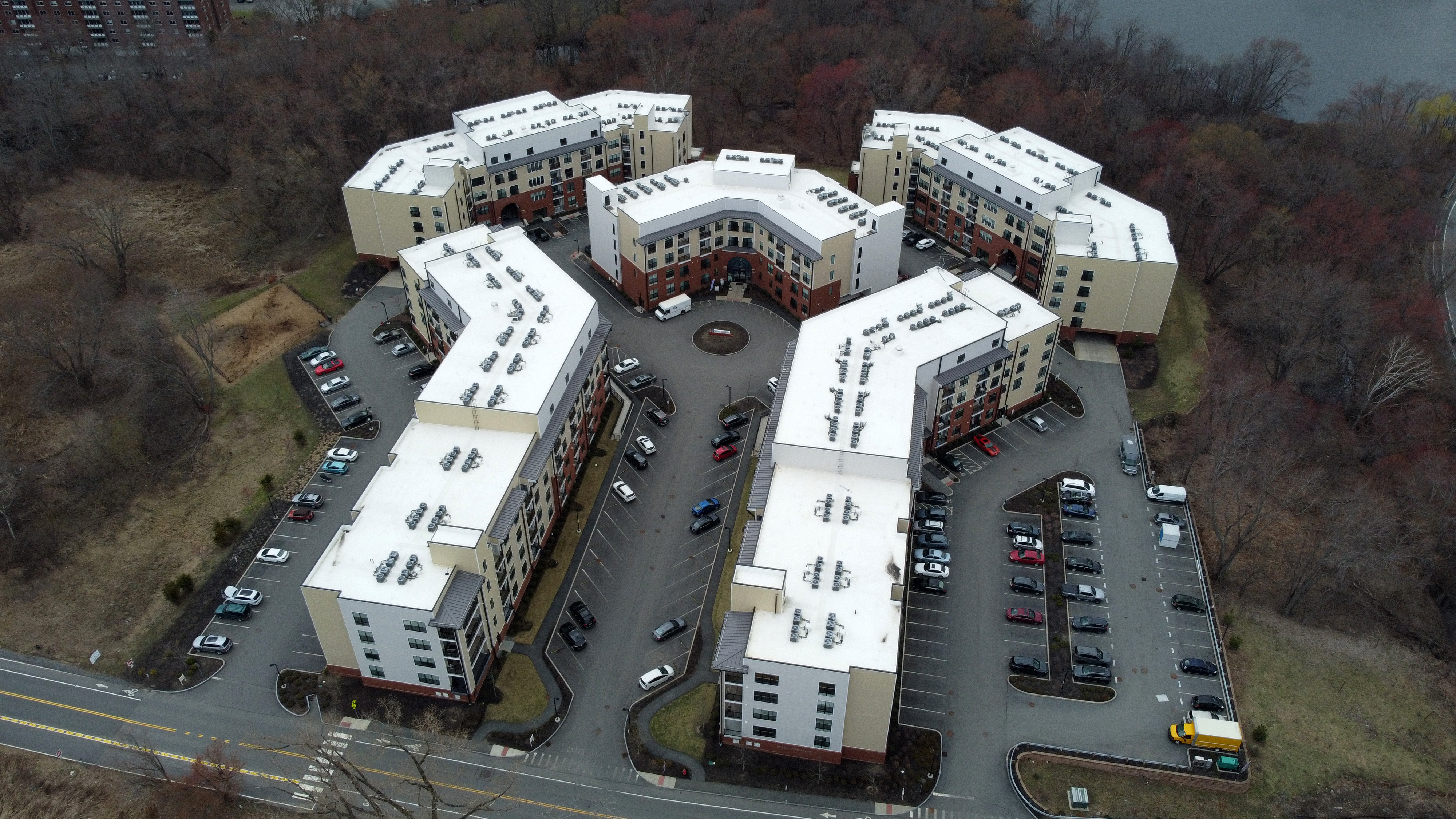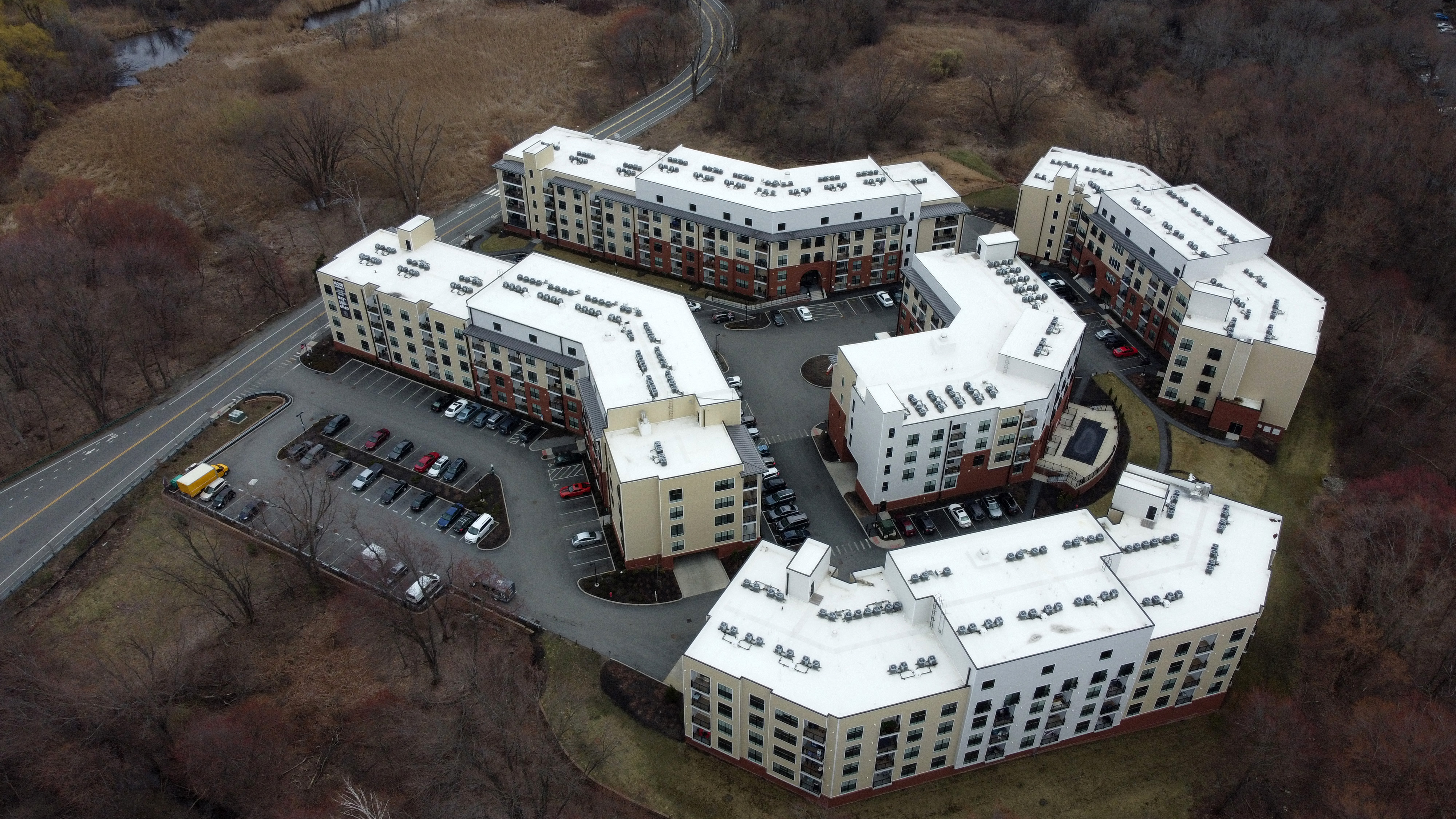 once the coast was clear, i quickly pulled the drone from my bag and launched it into the air. even though i couldn't see the royal belmont, it was just a bit beyond the reservation, not so far i'd lose even a bar of RC signal. the royal belmont is weird in that technically it's in belmont, but there's no way to get to it unless you get onto the highway. who would want to live there? my personal theory was it was designed to cater to rich chinese nationals who could rent an apartment and thereby allow their children to attend belmont public school. however with the pandemic, i'm guessing a lot of these chinese families broke their lease and returned home, and the building owners are having a hard time finding new tenants. there's even a big "lease available" sign on the side of the building; you know a luxury apartment complex has problems when it has to try this hard to find tenants. judging from all the empty parking spots (granted, it was a weekday, probably many people were at work, but still, taking that into account there still seemed to be a lot of empty spaces), i wonder how much of the apartments are currently empty.
