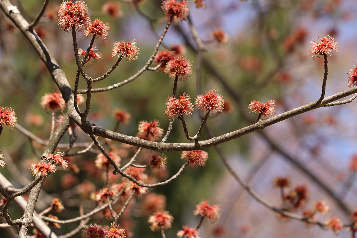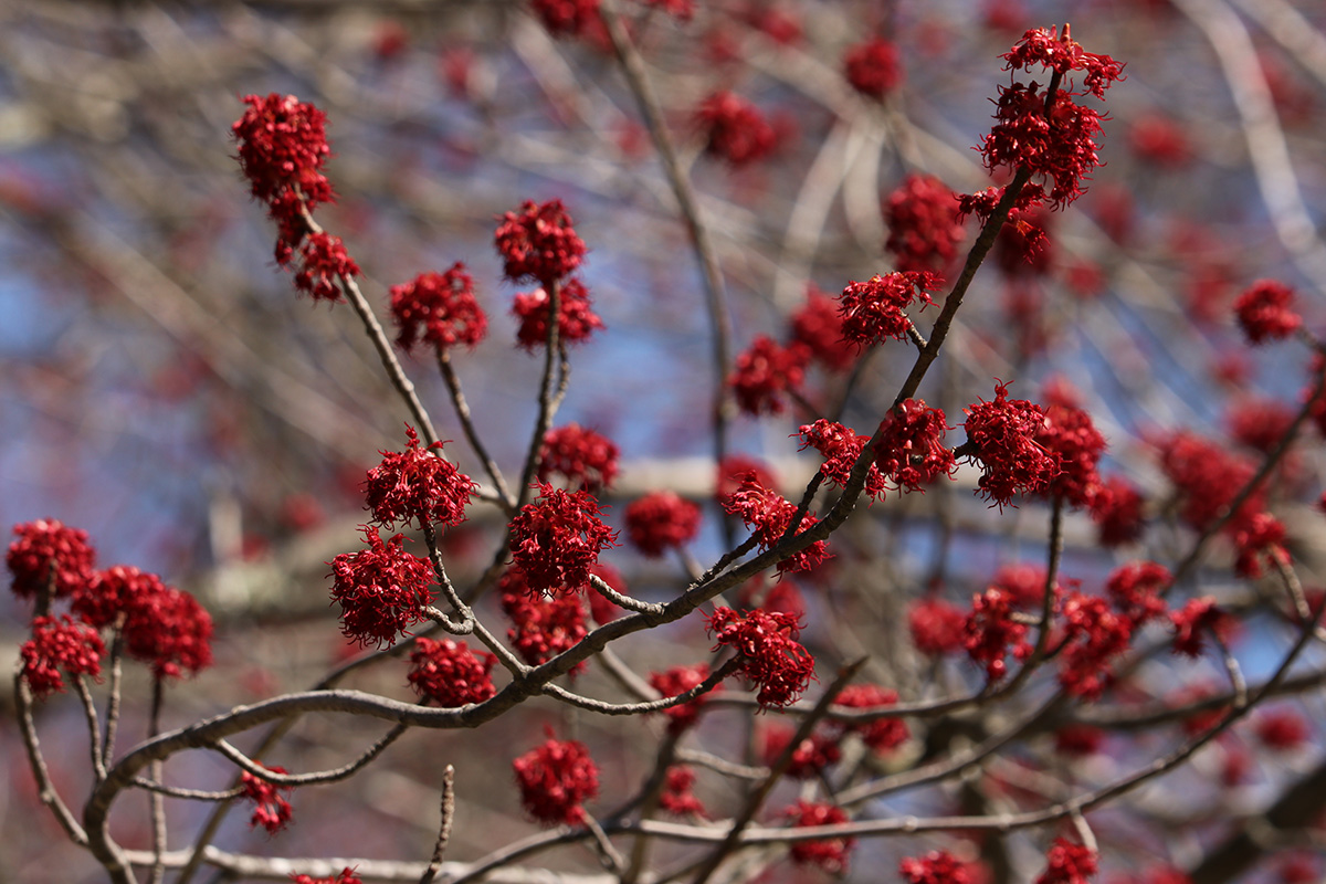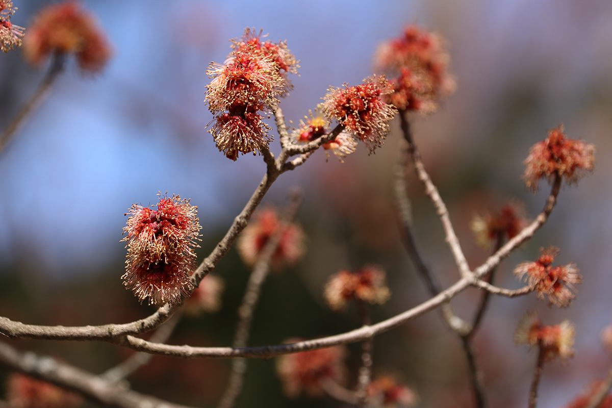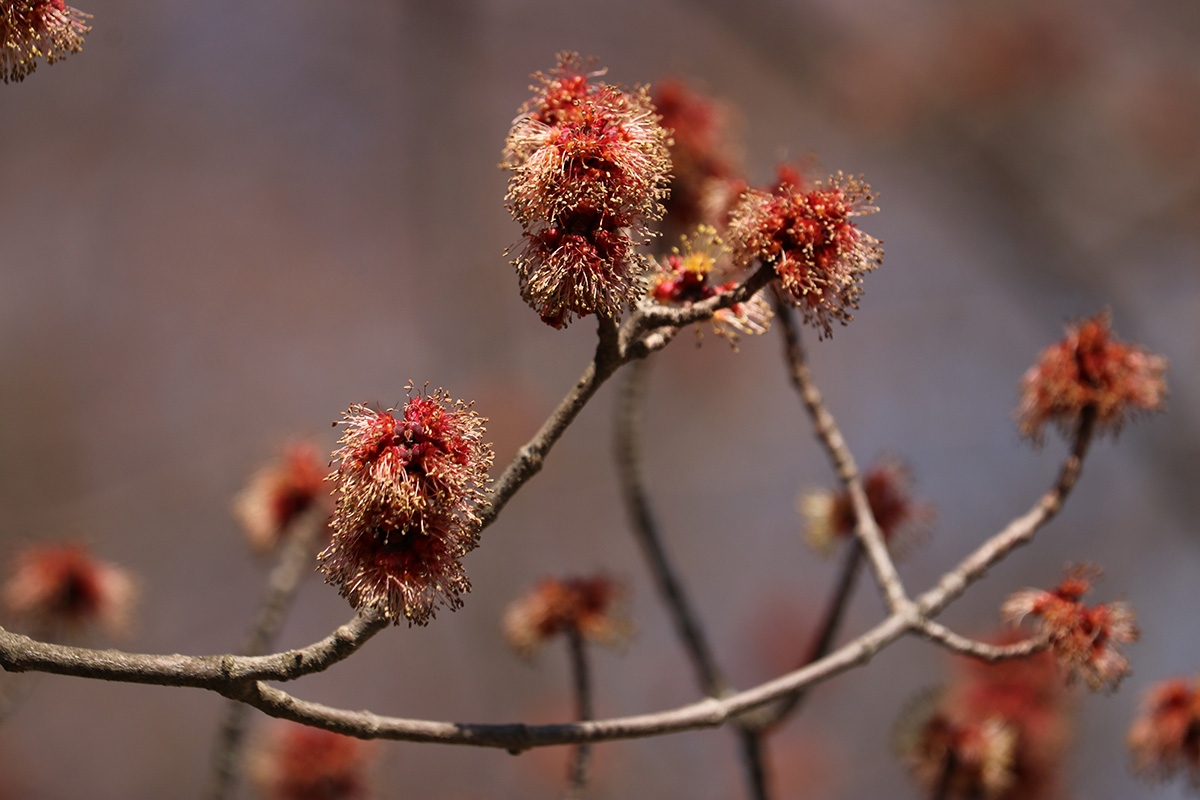 flowering trees were also in short supply. forsythias and a few magnolias. i did find out all those red-colored flower buds i've seen all around town, they're mostly red maples. it makes sense now why they're so common, and why i even saw them at the alewife brook reservation, since red maples love growing near water. while we were leaving we saw some cherry flower buds, "okame" and "yoshino" have yet to open, but there was one "autumnalis" with some flowers. we also saw some witch hazel but it's getting late in the season for those trees.