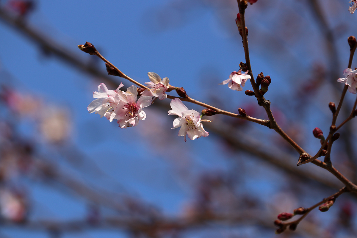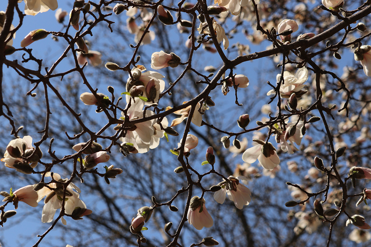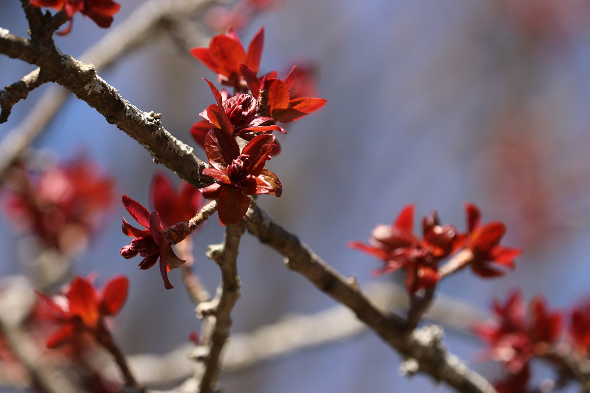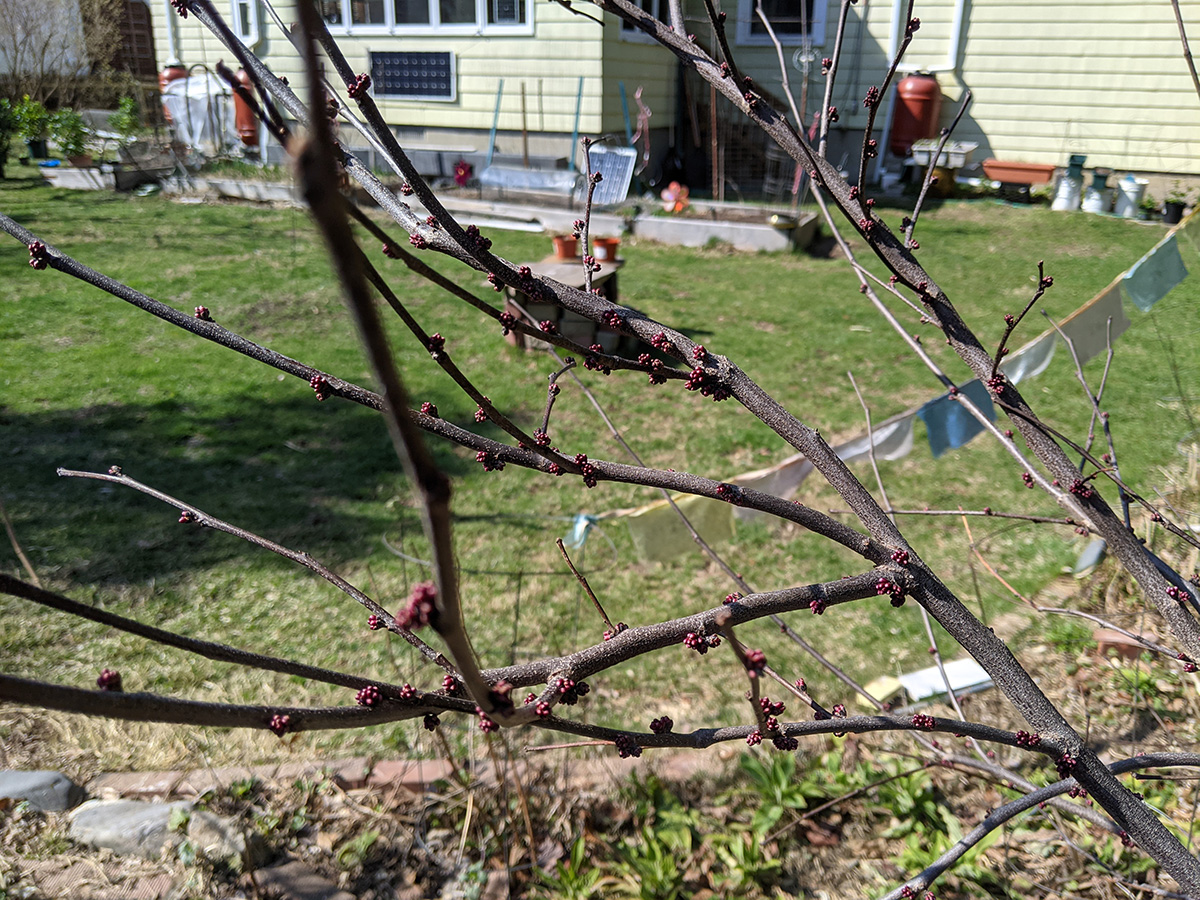 flowering trees were also in short supply. forsythias and a few magnolias. i did find out all those red-colored flower buds i've seen all around town, they're mostly red maples. it makes sense now why they're so common, and why i even saw them at the alewife brook reservation, since red maples love growing near water. while we were leaving we saw some cherry flower buds, "okame" and "yoshino" have yet to open, but there was one "autumnalis" with some flowers. we also saw some witch hazel but it's getting late in the season for those trees.