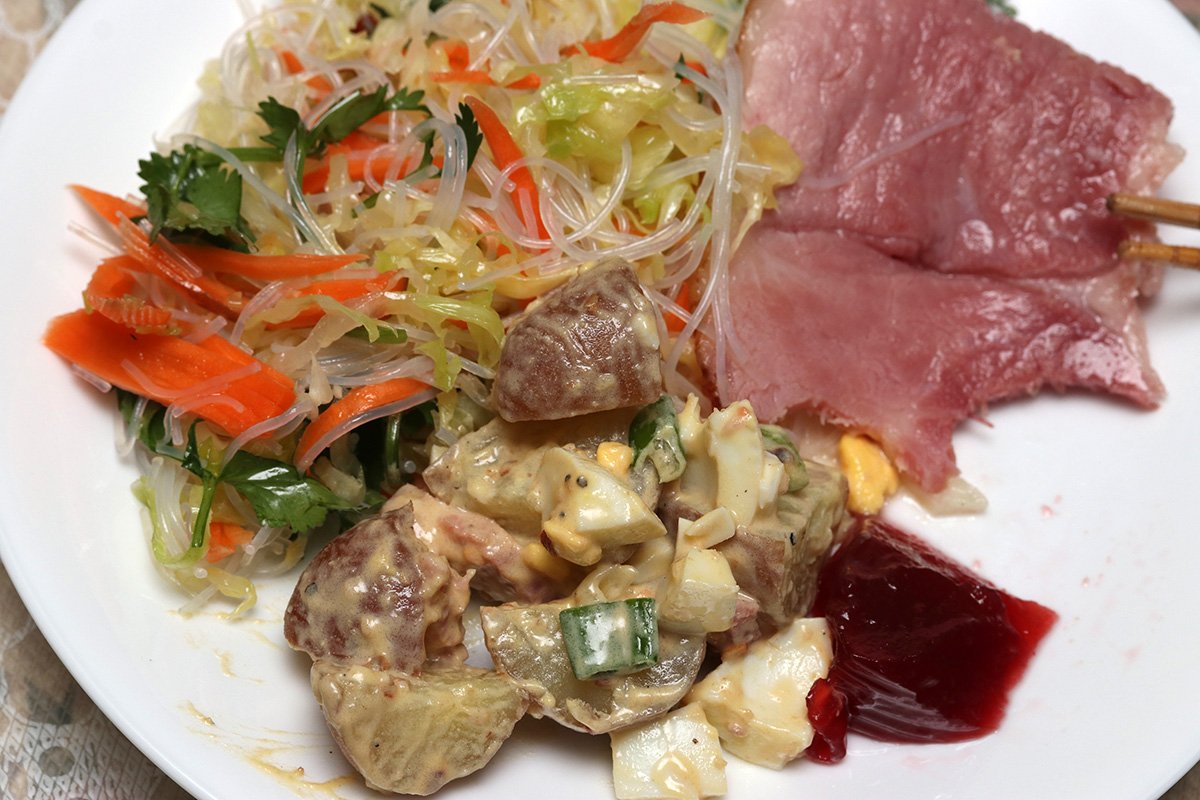 in the evening my sister came back to eat some easter ham. we didn't bake it on the oven this time, just heated up some slices on the toaster oven instead. my sister made an almond-apple cake which was pretty good. i left around 7:30pm.