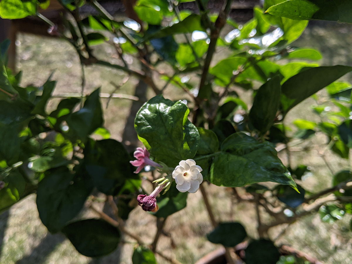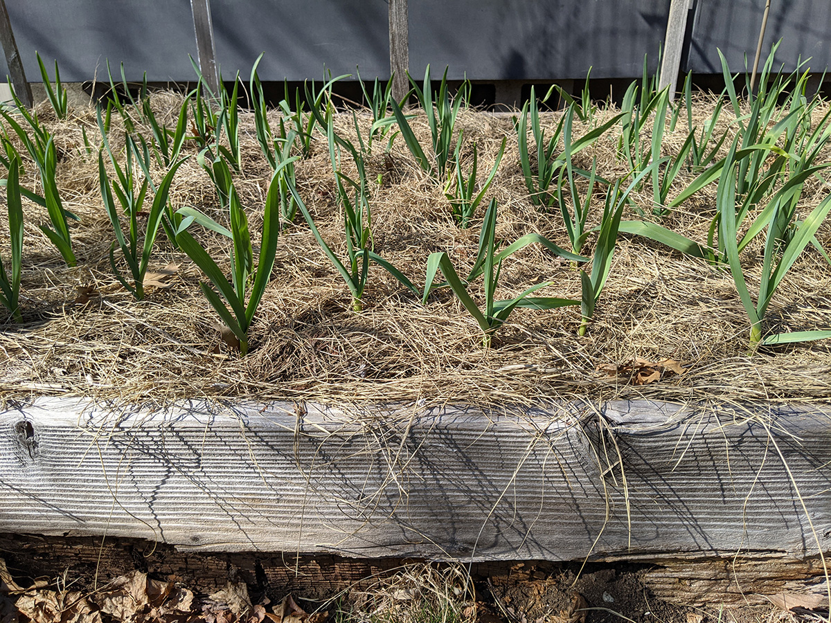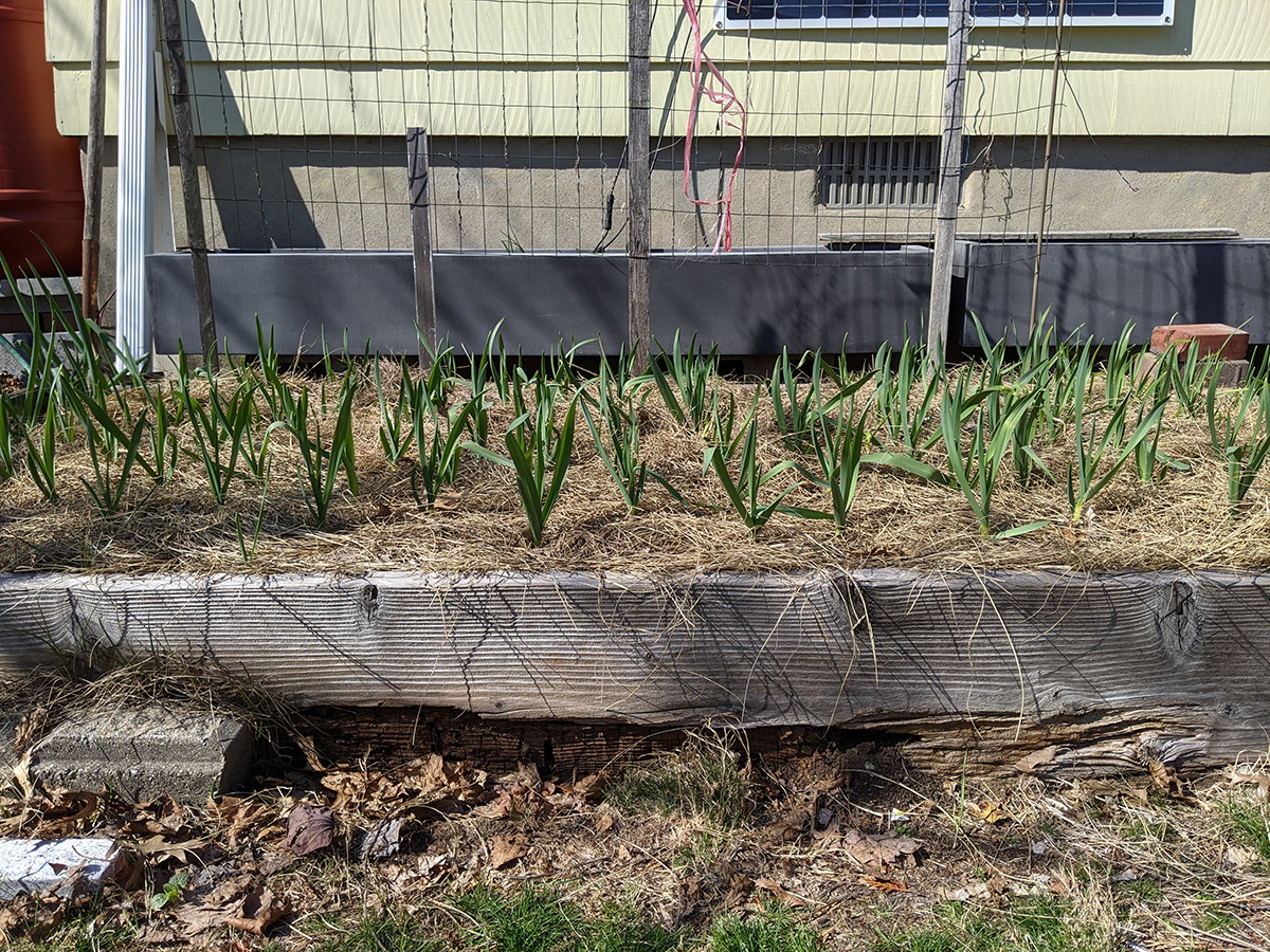 we returned home by 12:30pm, where my mother went out again, this time with my sister to walk hailey somewhere in waltham. since the temperature was above 60 degrees, my father and i moved outside all the jasmines and gardenia from the basement grow room so i could gave them a neem oil spray. my father also set up the remaining rain barrels while my mother and i were out. i wanted to do some maple tree pruning but we never got around to it. i added more chicken manure to the garlic bed. later i went online and ordered some miracle-gro soluble all-purpose fertilizer as well as special acid-loving fertilizer for the gardenia.
