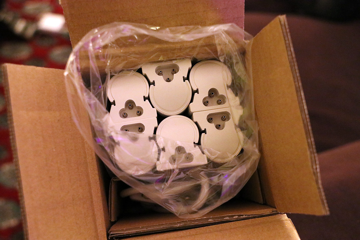 i decided to do 2 strip lights per shelf so i can have 3 shelves of grow space. i'm worried if two strip lights are enough light for the plants. i could always increase the brightness by mounting the lights closer to the seedlings. it came with 3 power cords with toggle switch, although a maximum of 8 2ft lights can be strung together. i have each power cord controlling two strip lights, each cord drawing 38W, which means each strip uses 19W of power. when i had all 6 strip lights on, it used 118W. compare that to the luxauto 1000W equivalent grow light, which used 105W on vegetative mode. there's no veg/flower toggle for these strip lights, but the white color that i got is closer to the blue spectrum, which is better for vegetative growth.