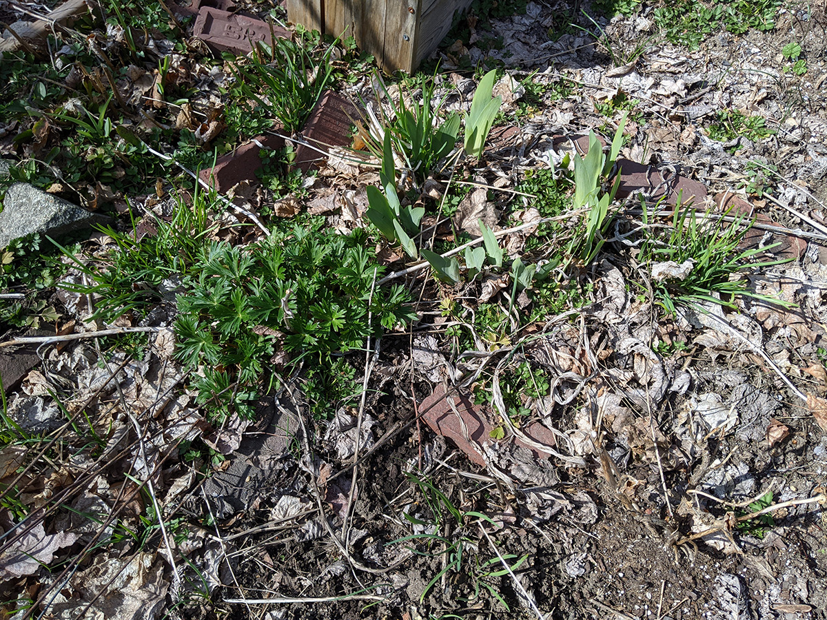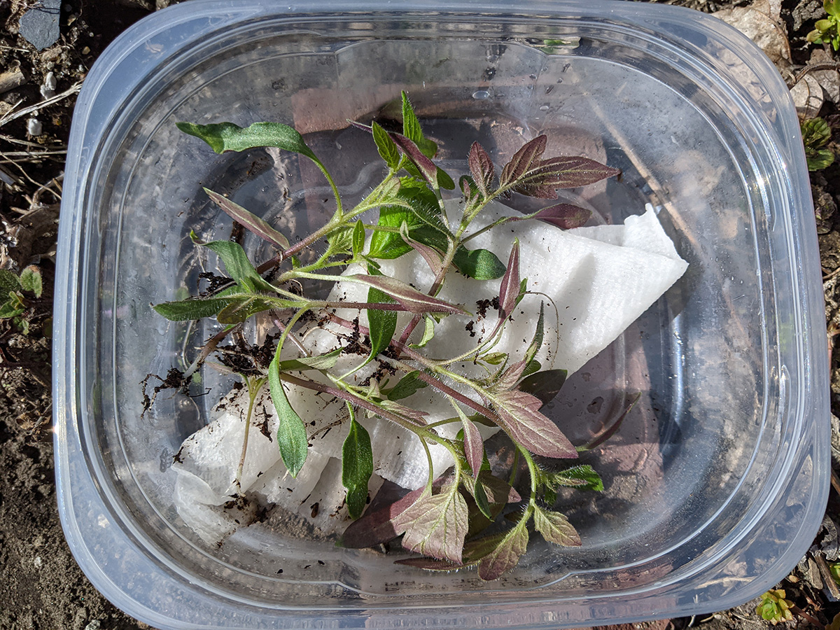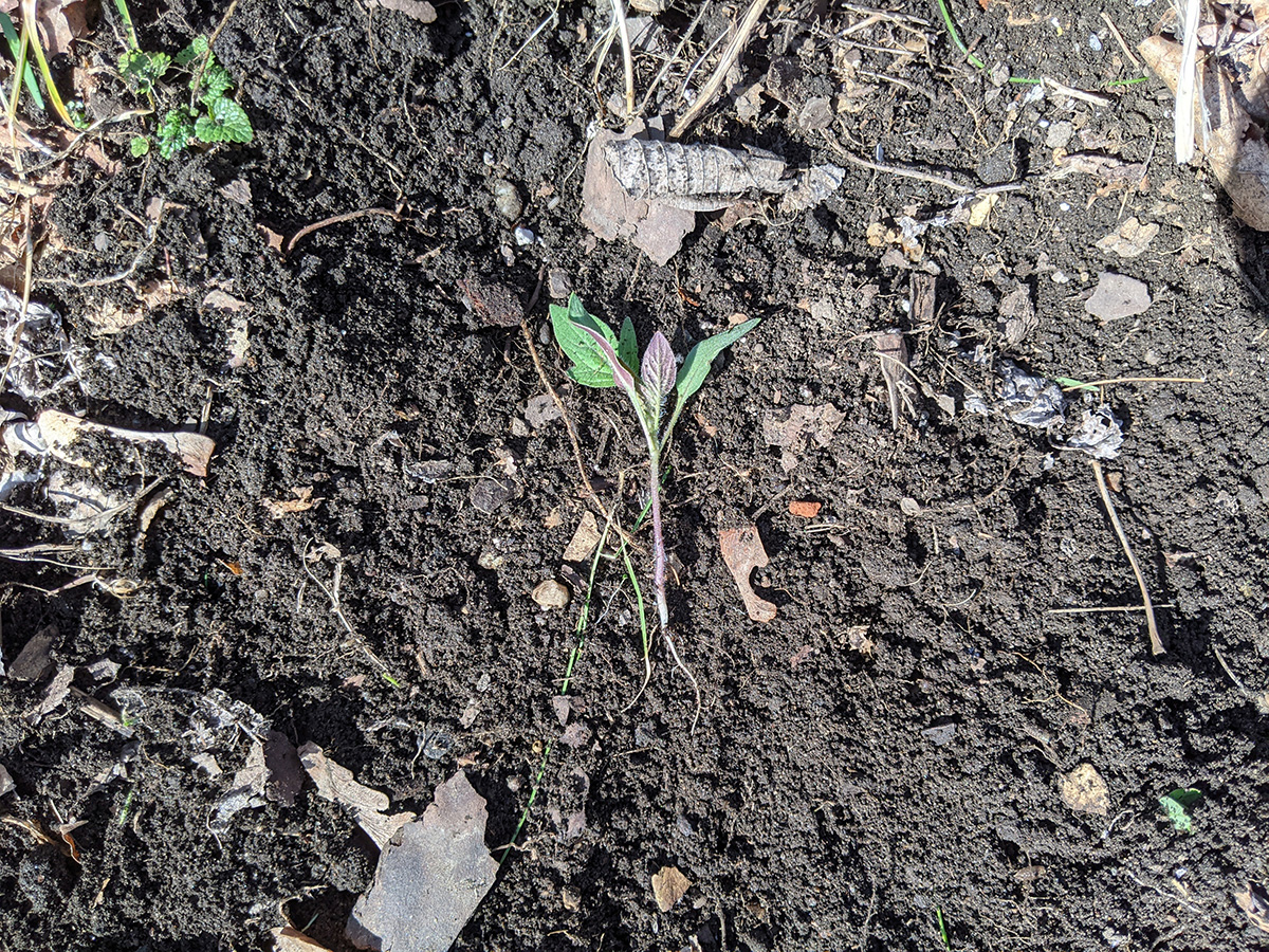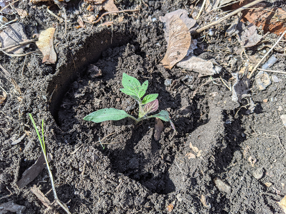 i decided to transplant my spare tomato seedlings directly into my community garden plot. i cut a half gallon milk jug in half so i could have 2 makeshift green houses to protect two of the seedlings. using a heated awl, i melted a few holes. passing by the school, there was a crowd of parents outside waiting for their kids (now that MA has mandated all public elementary schools to open). this was my first time in the community garden this year. nothing much was going on in the garden overall, just some daffodils, some hyacinths. i planted the seedlings but i'm not sure if they'll survive, though a better fate than the trash. i probably have the earliest tomatoes in the garden.