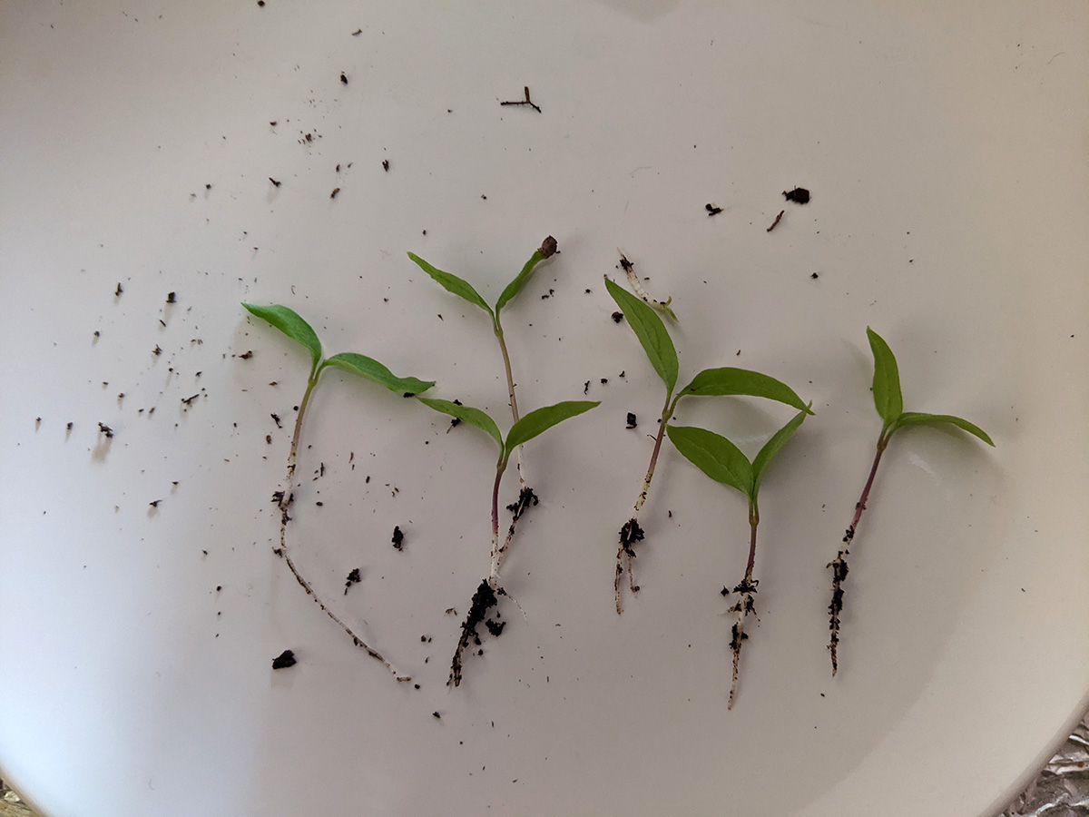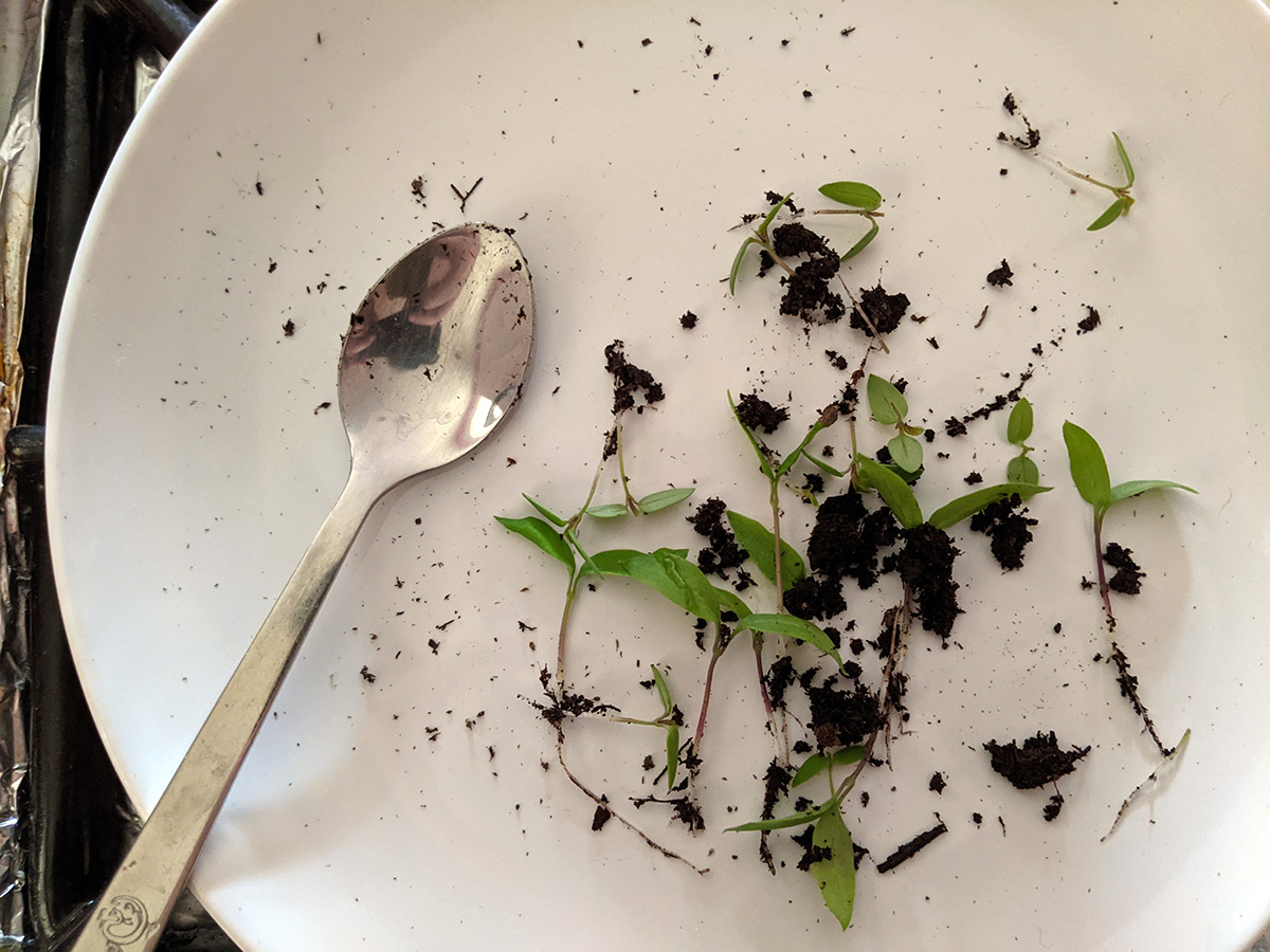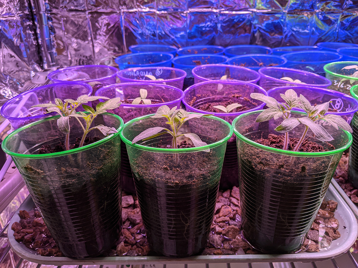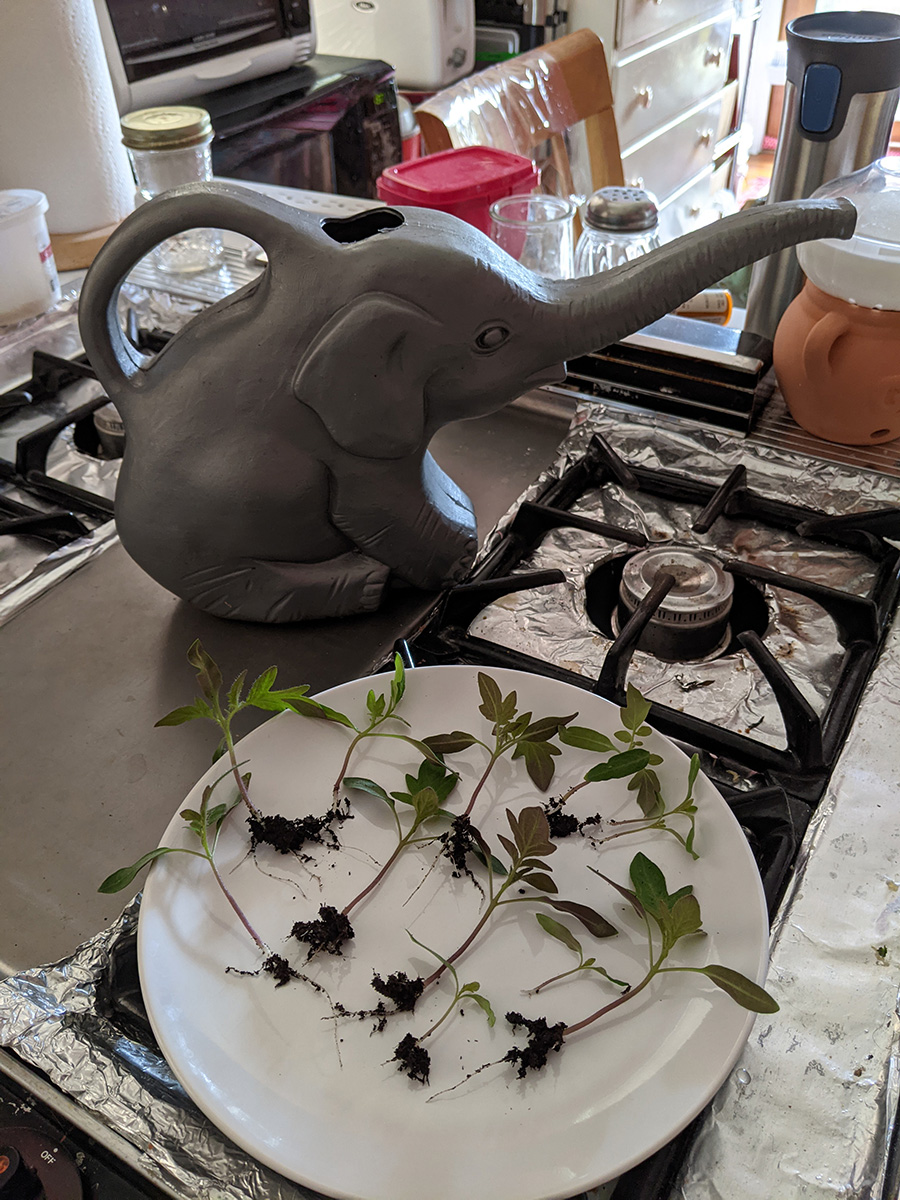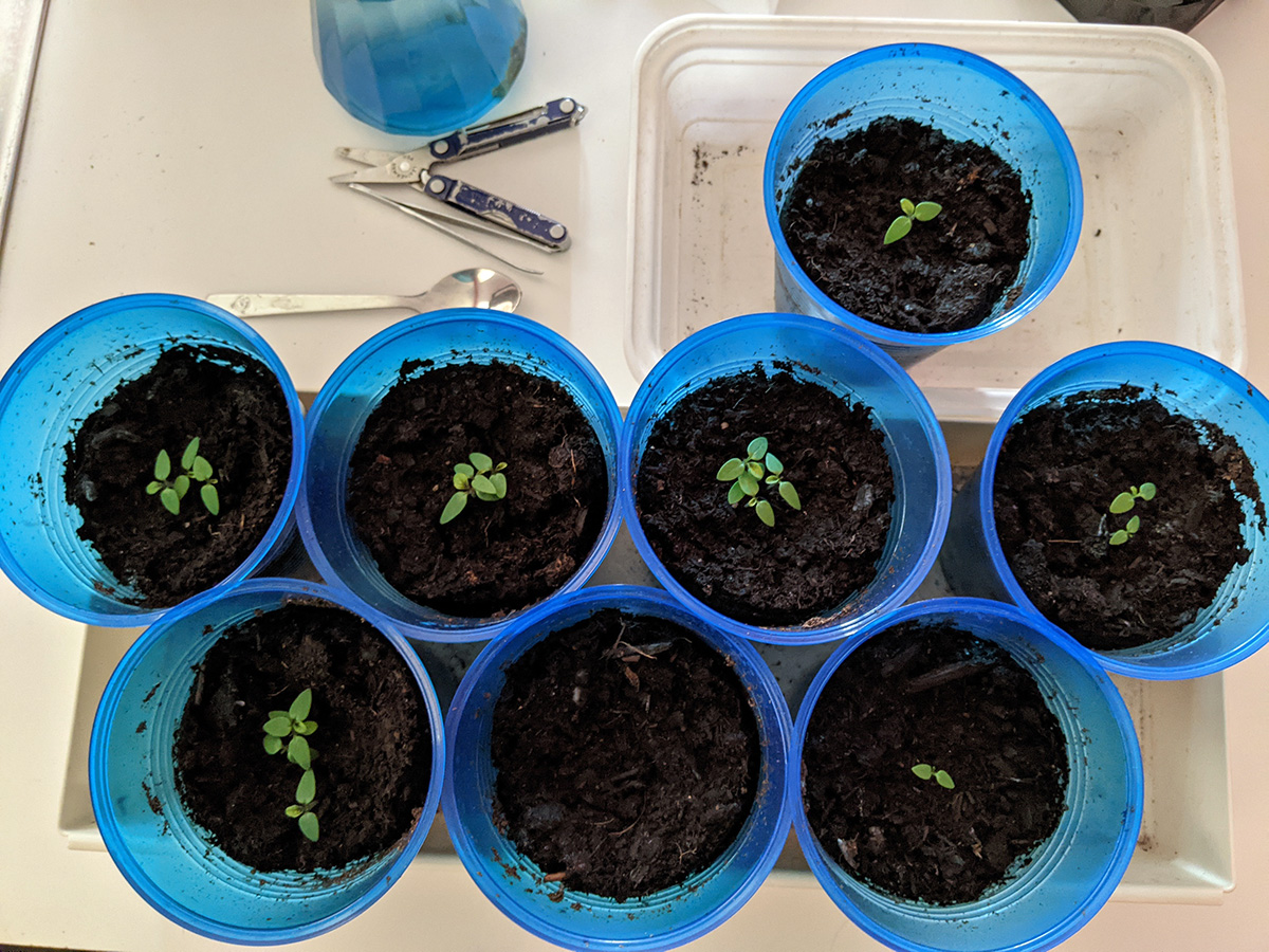 today was also the day i thinned out my seedlings: tomatoes, ground cherries, eggplants. i should've done it weeks ago when the seedlings had just emerged, but i was thinking maybe i could replant some of the additional seedlings. but now that i see i have too many seedlings. if space in my grow closet wasn't any issue i might've tried to save some more seedlings, but i need the space for other plants so i can only grow what i need, no spares. the tomato seedlings were the most developed. instead of tossing them out, i decided to save them. as for the tiny flower seedlings growing in the seed starter cells, i still don't have a strategy for them. some of them are cold hardy (like the stocks) and i feel like i can either grow them outside on the backyard deck or transplant them directly into the garden. i may transplant a few into individual pots.