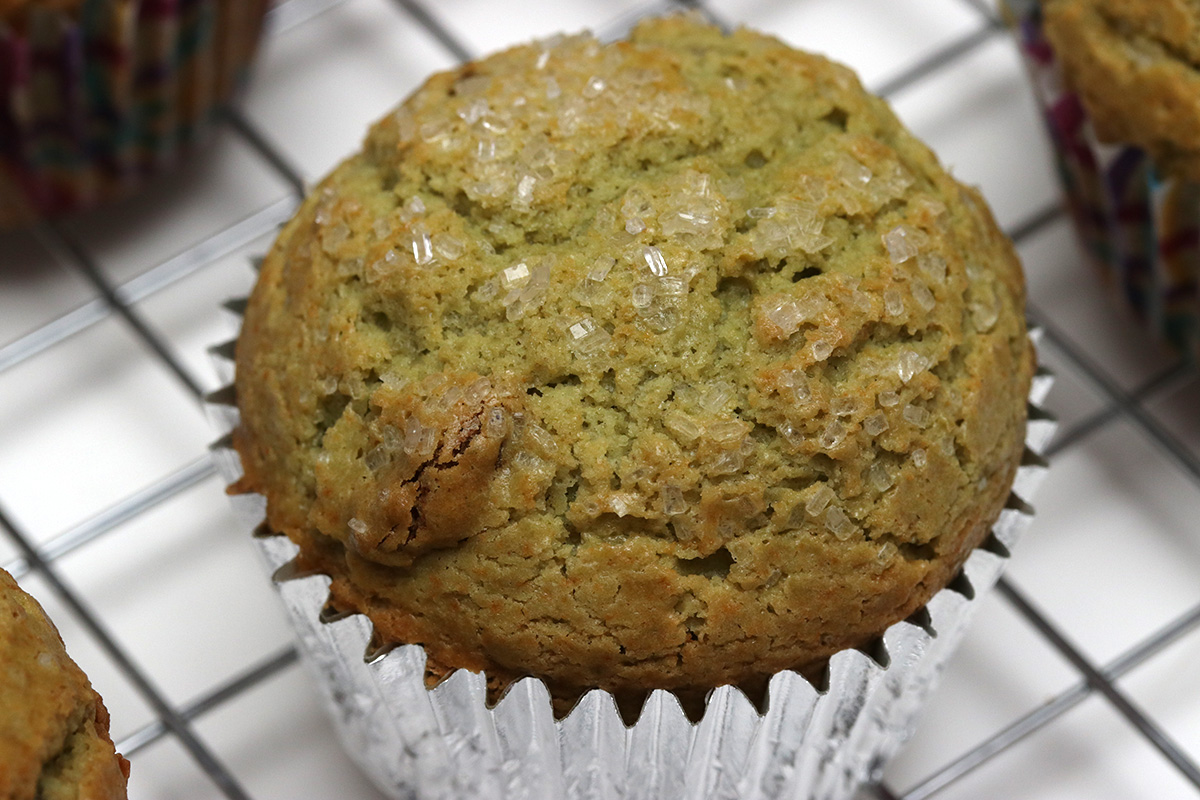 i heated the cupcakes at 425°F for 10 minutes to brown the tops, before lowering the temperature to 375°F for 20 minutes (less than my jumbo muffins since these are smaller). while the outside was brown, inside was matcha green. just a tablespoon of powder was enough to impart a strong matcha flavor. because i used raisins, the inside was a bit dry, compared to when i use frozen blueberries, which add some additional moisture. i also took some time to experiment with the flash and pancake light to get some photos.