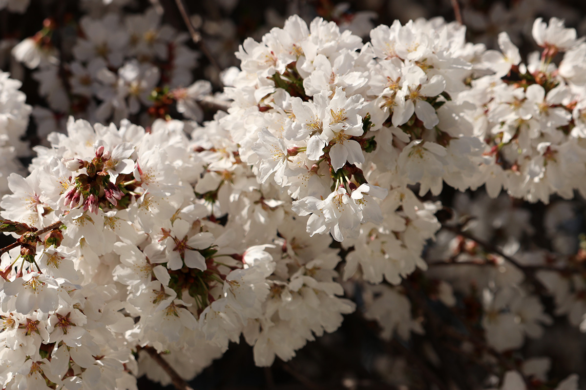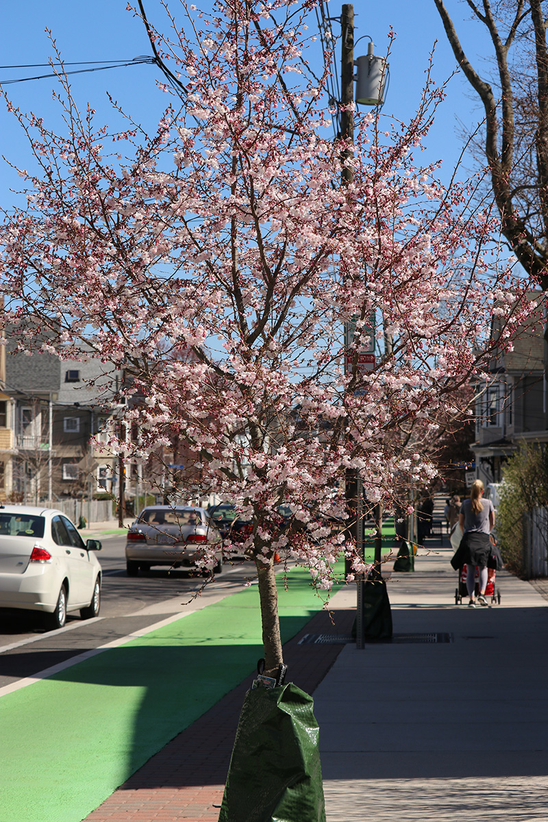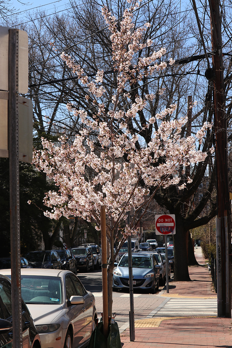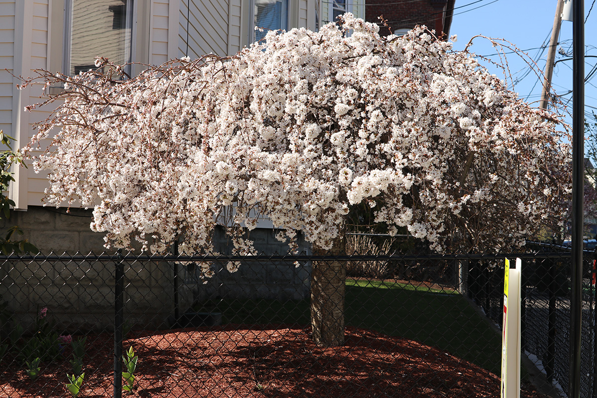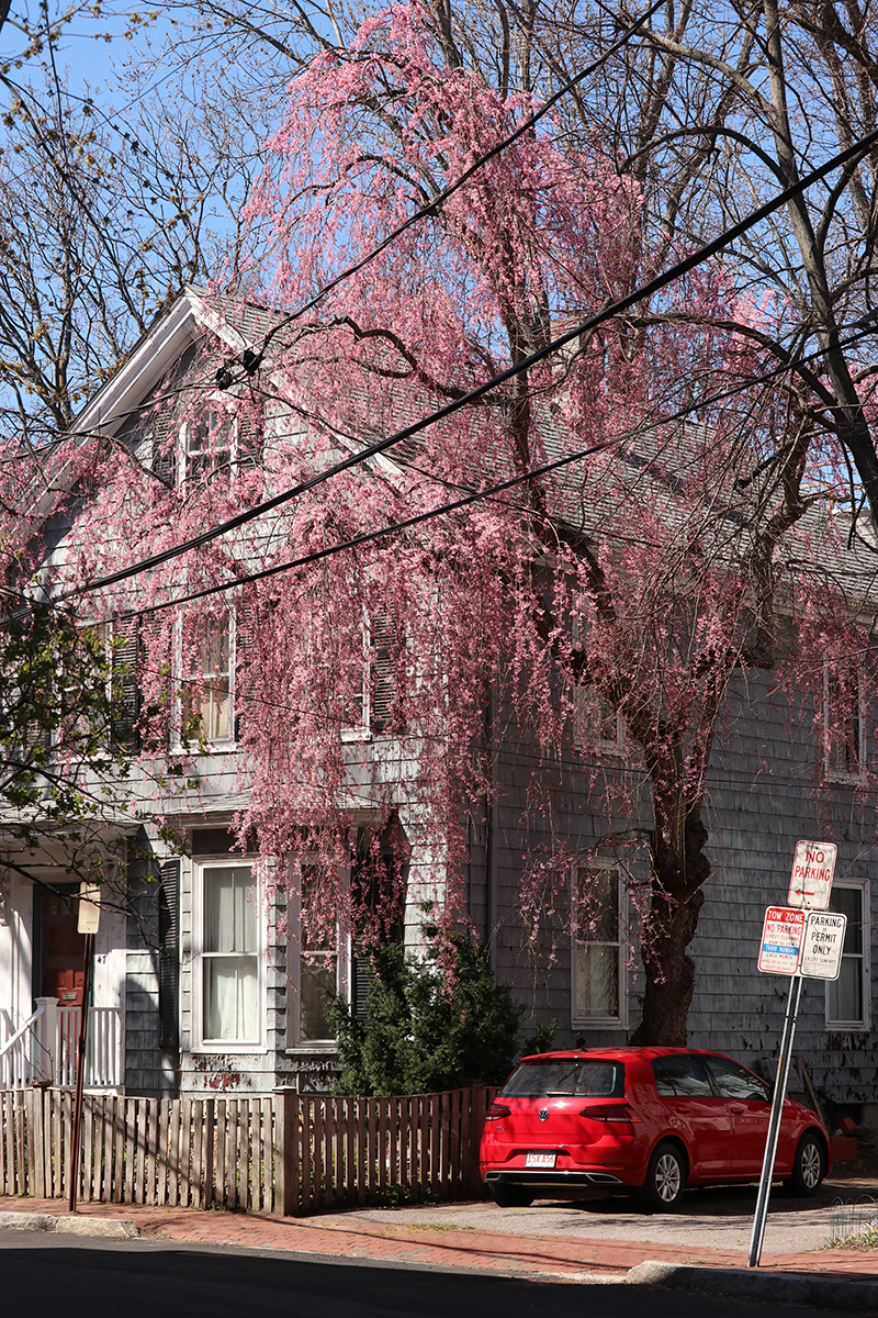 afterwards i went on a walk around the neighborhood looking for flowering trees (namely cherries) to photograph. i spotted a few yesterday from the sky, including a large pink weeping cherry on crescent street. whether a flowering tree blooms profusely or just had a few blossoms seems to be entirely dependent on how much sun it gets. and now that some of the white blossom cherries are coming out, i'm having a hard time distinguishing them (they all look like variations of yoshino cherries to me, i need to go back and study some more cherry blossom references, or maybe another visit to mt.auburn cemetery for a refresher course on flowering cherries).