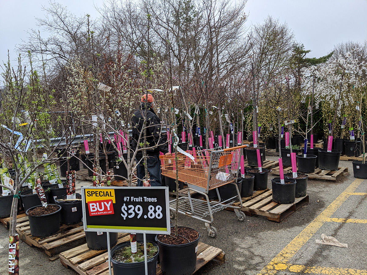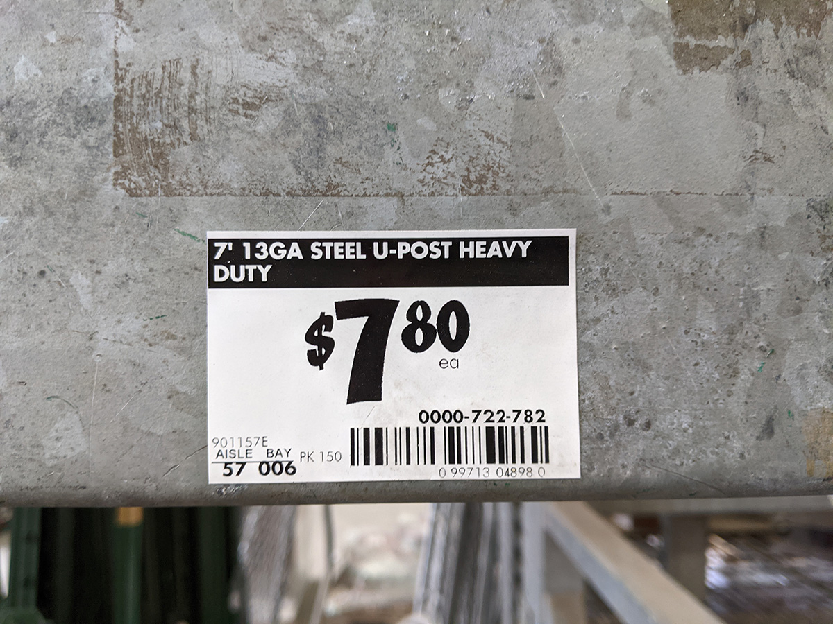 afterwards we went to the waltham home depot, where they had 7ft u-posts for $7.80 each, which was cheaper than all the other nearby home depots that sell them at $9.74, nearly $2 more. unfortunately when we got there the shelves were empty, even though it said online they had 300+ u-posts. we asked a woman working in the garden department for help. she was helpful in that she was trying to find the u-posts for us, but she was so scattered in her approach, i wonder if she was on drugs. she sent me to the other side of the store - in lumber - to ask someone if they knew where the u-posts were, but he had no idea. in the end we decided to just order them online (for pickup or delivery), let them take their time to find the missing inventory. instead we left with 4 cinder blocks (to be used as rain barrel bases).