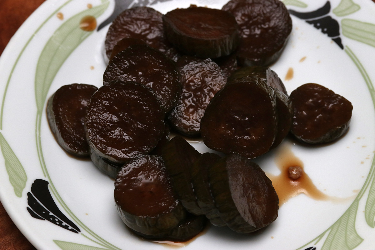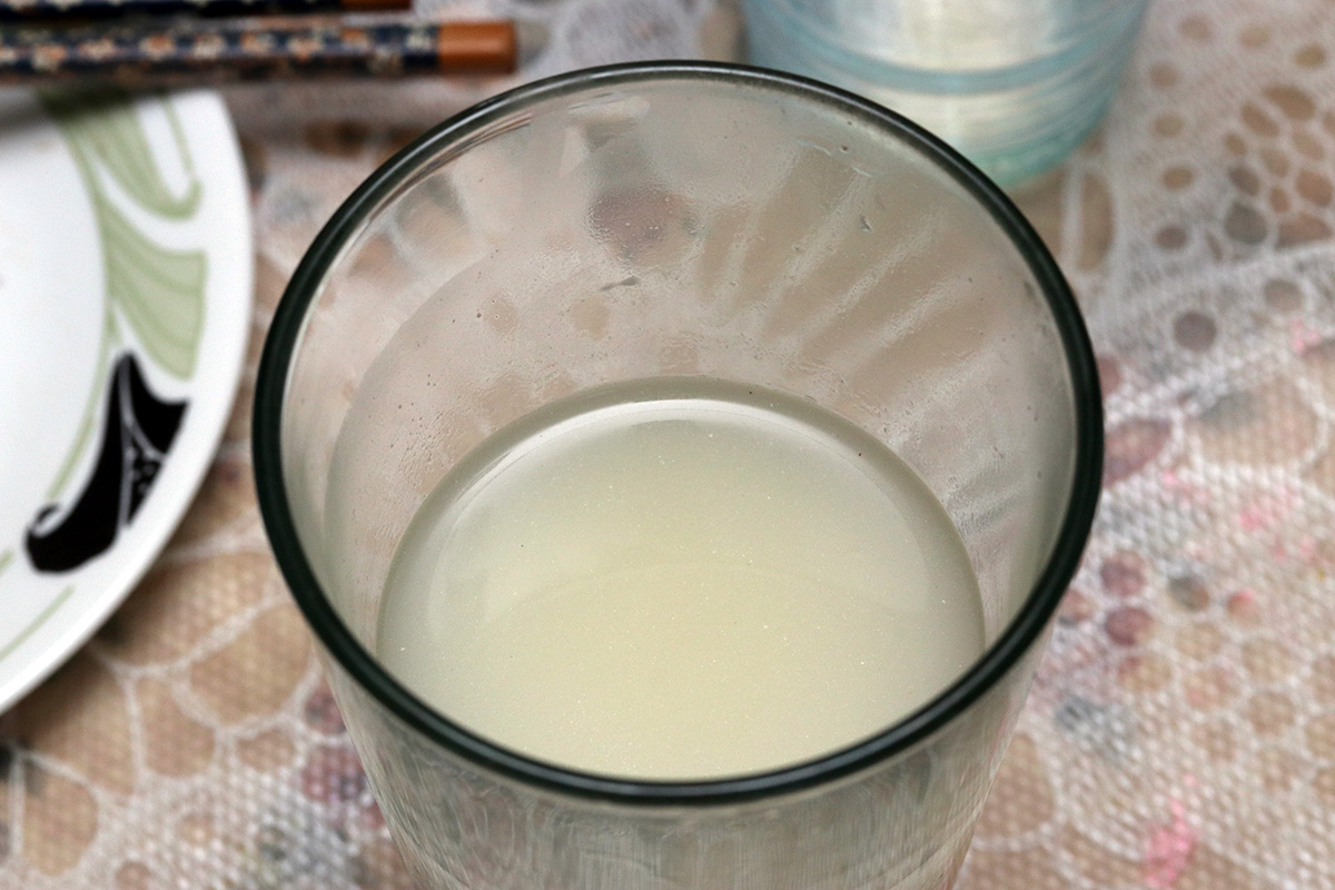 my father was drinking the jiuniang wine. from the two jars of ultra-fermented long grain glutinous rice, he managed to squeeze out about 2 cups of rice wine. it has the consistency of skim milk and smelled strongly of alcohol. it wasn't that sweet, but that just means a lot of the sugar had been converted to alcohol. my father guessed it was probably around 12% alcohol.