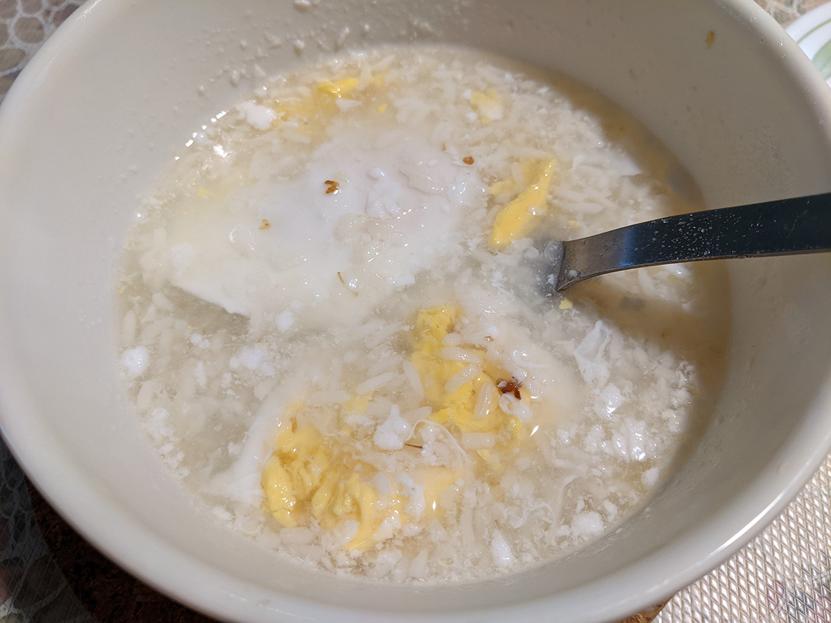 when i got to my parents' place my father made jiuniang for lunch. he added some osmanthus syrup which made it even more delicious. all that was missing was some glutinous rice balls.
